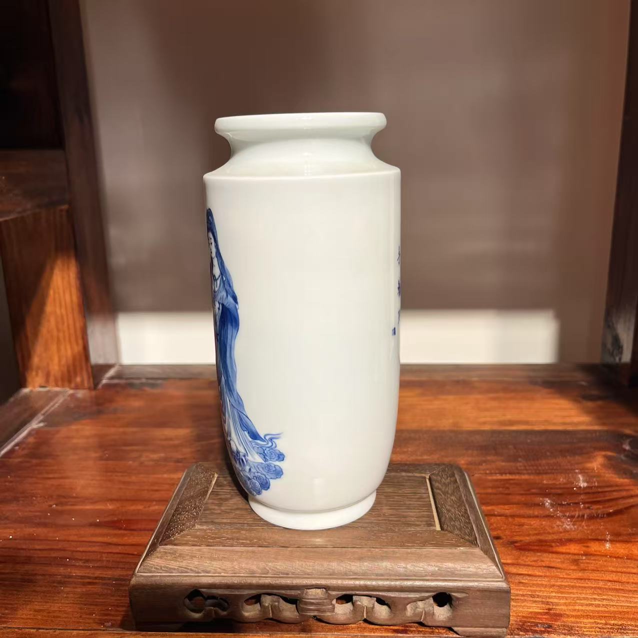 首页 / 艺术陈设瓷 / 花瓶系列 / 青花观音像花瓶(高:8cm)
