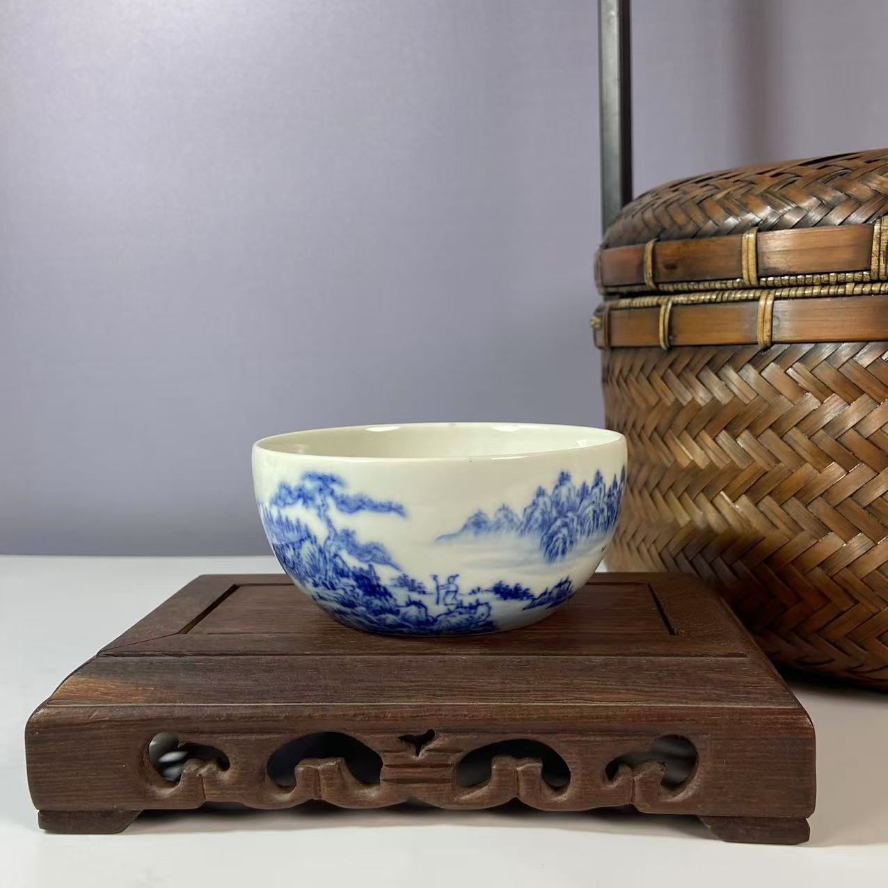 首页 / 茶器 / 主人杯系列 / 青花山水杯(口:8.6cm高:5.1cm容量: 150cc)