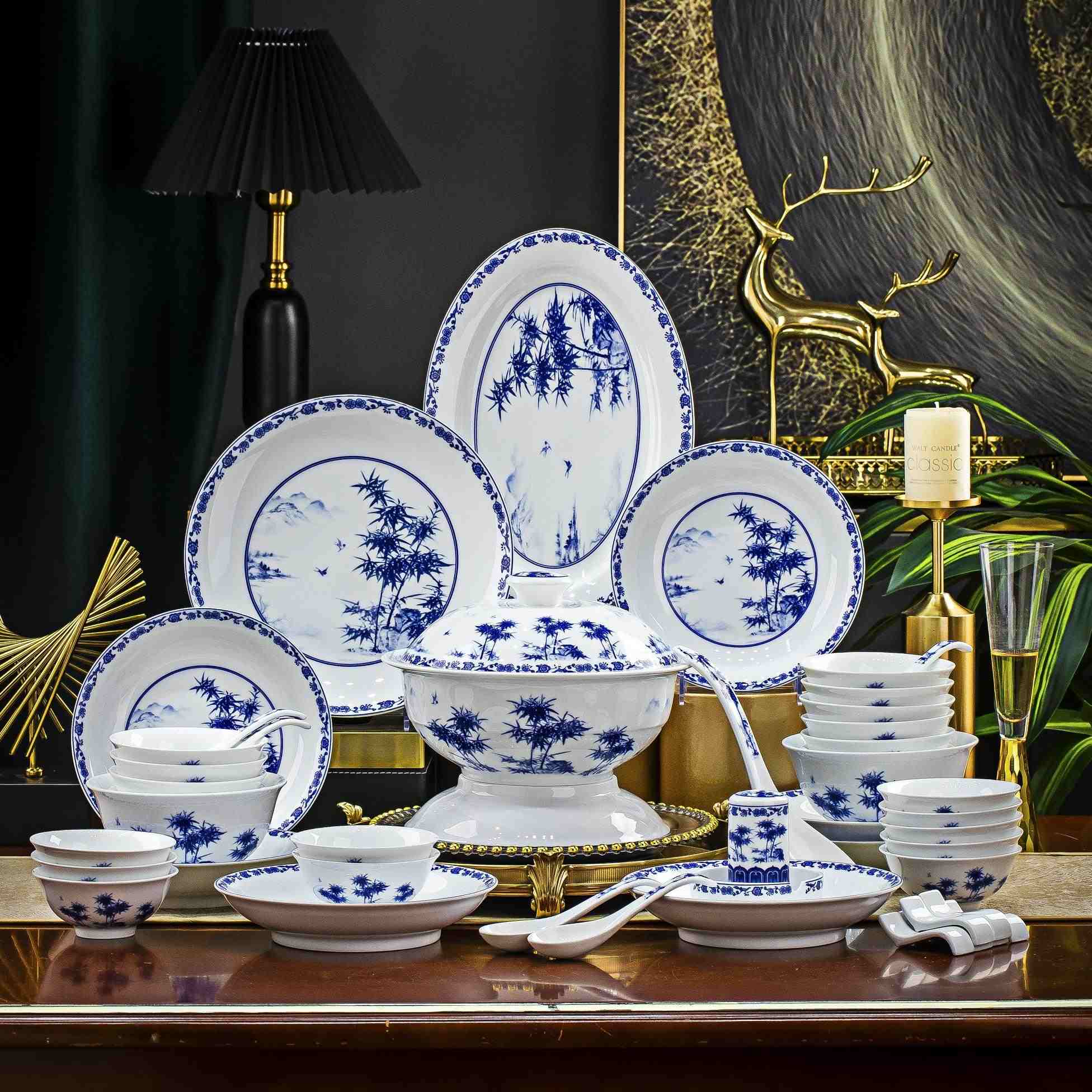 首页 / 餐具 / 套组餐具 / 56头 竹报平安餐具套组