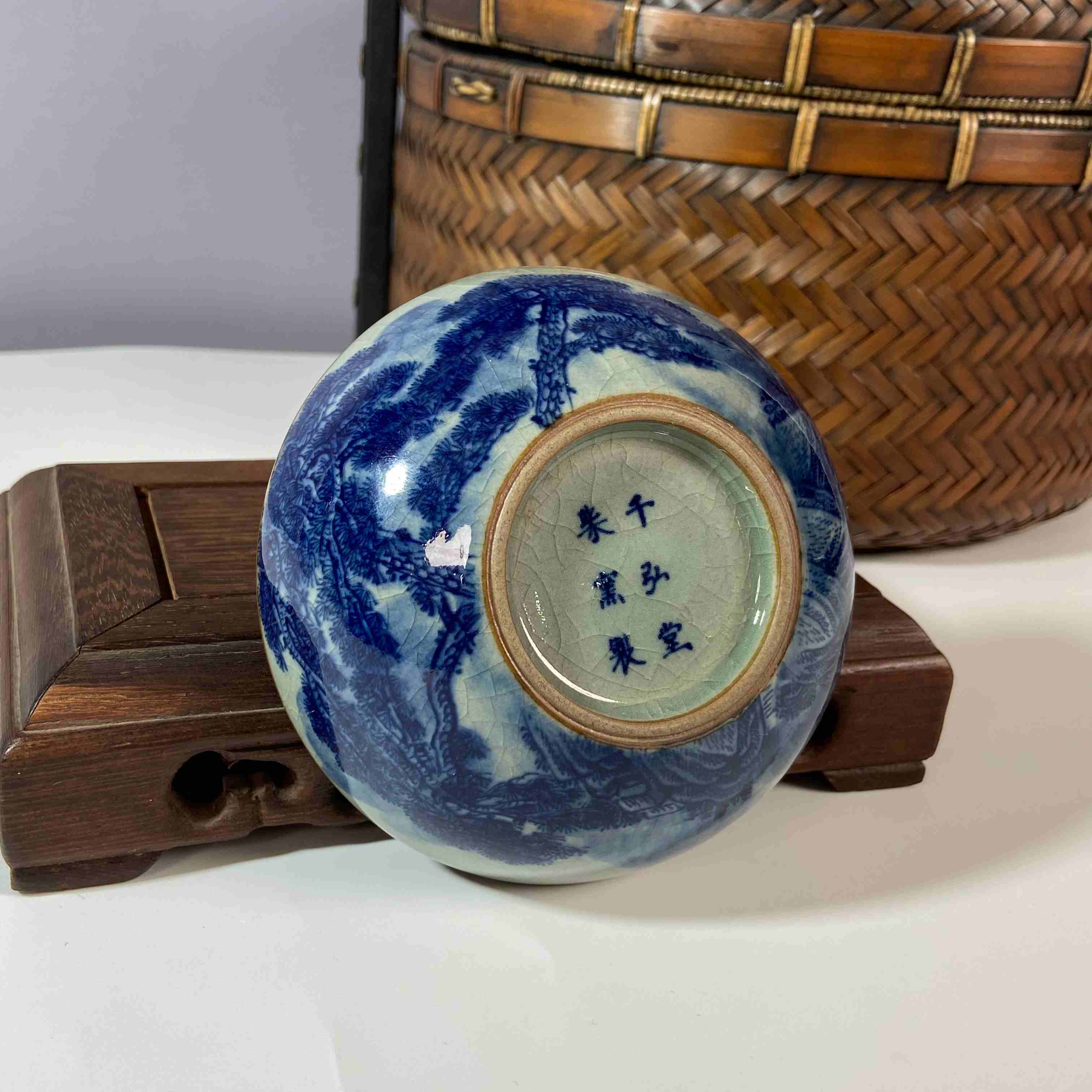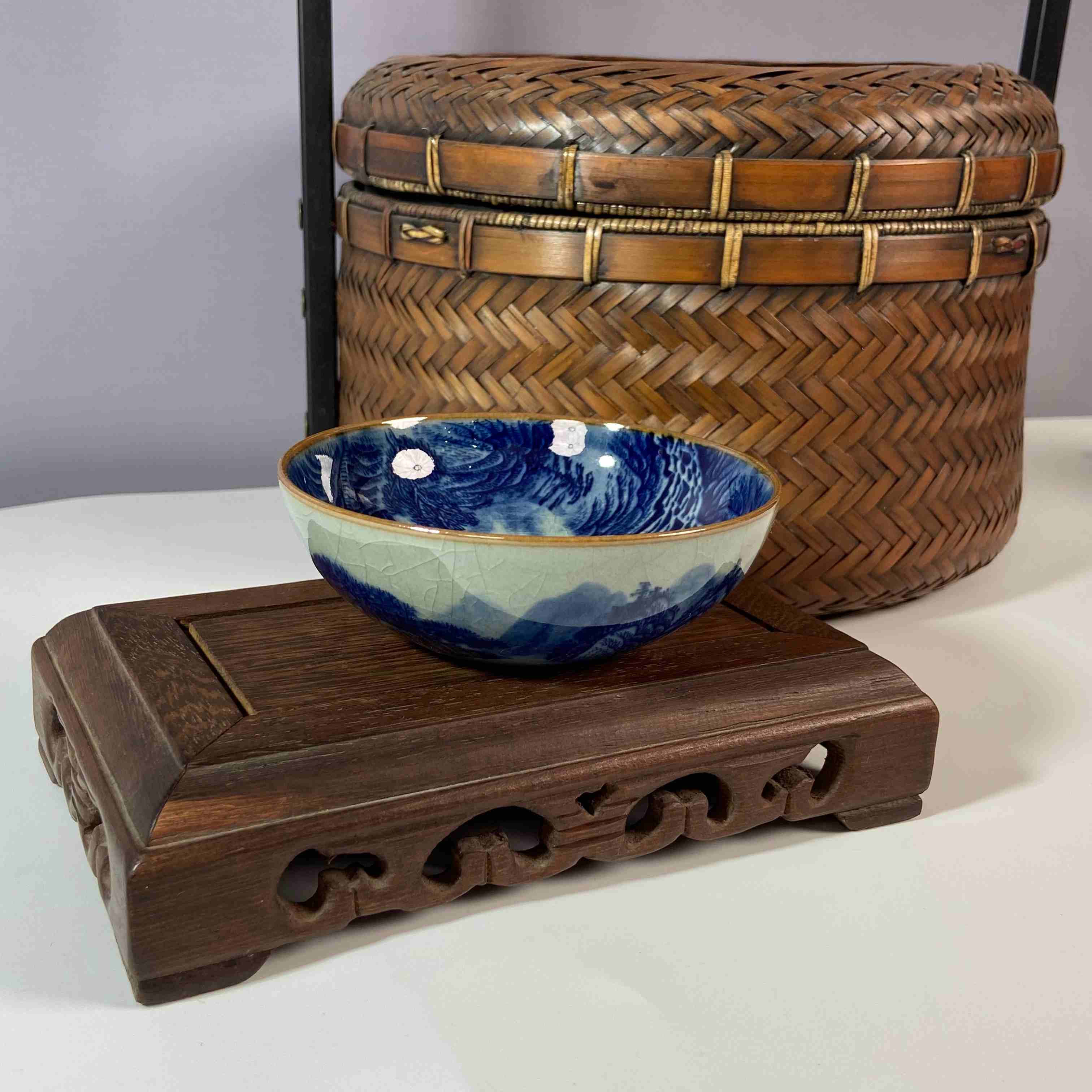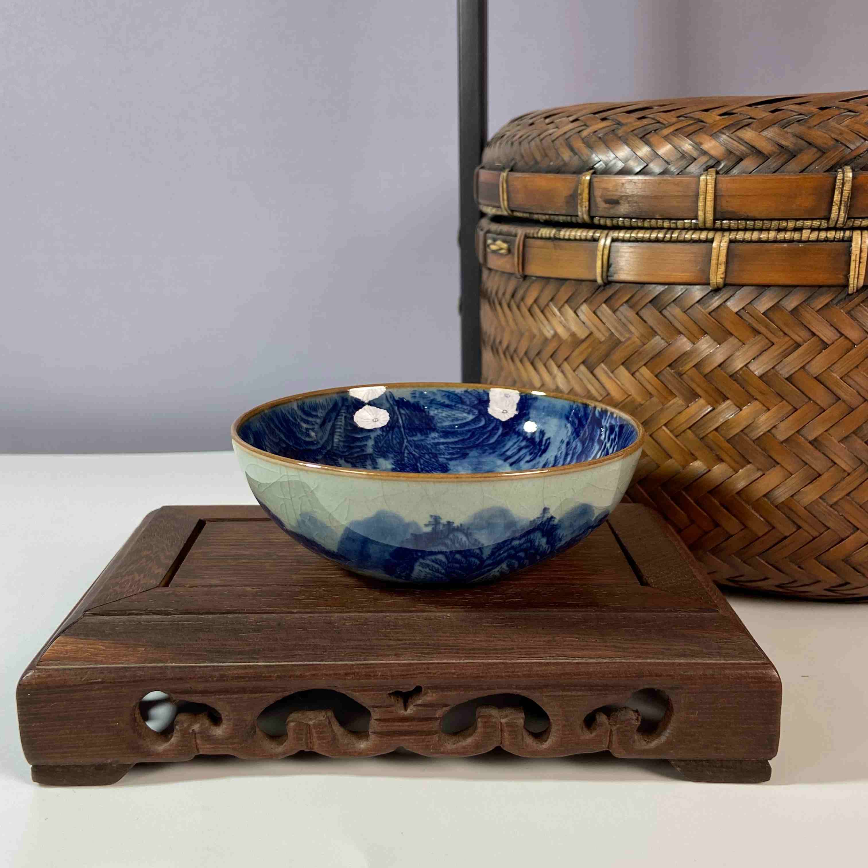 开片效果:除了青花图案,杯身还带有开片效果,细微的裂纹纵横交错,增添了古朴沧桑之感,随着使用,茶汤会逐渐渗入开片缝隙,形成独特的纹路,使杯子更具个性与韵味。