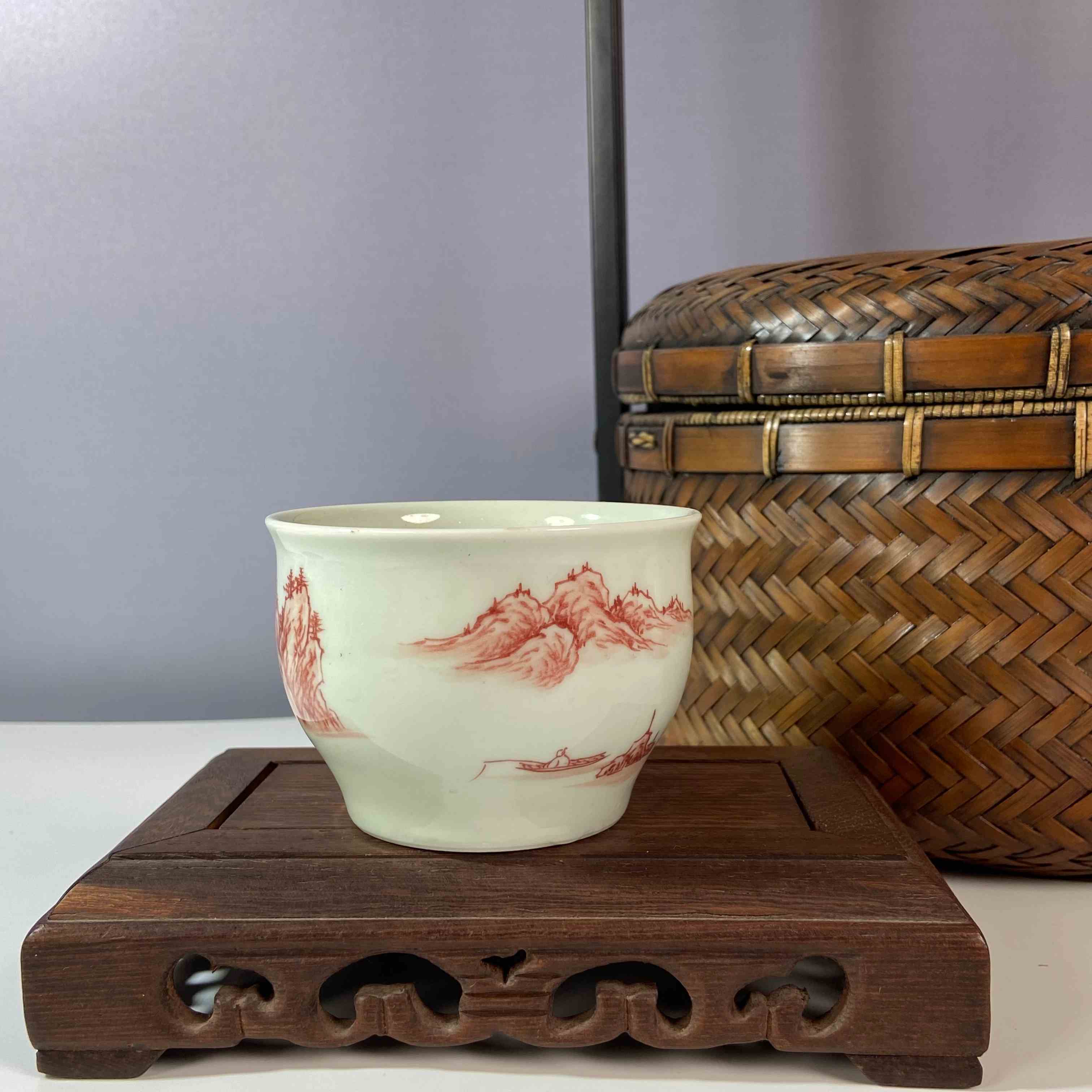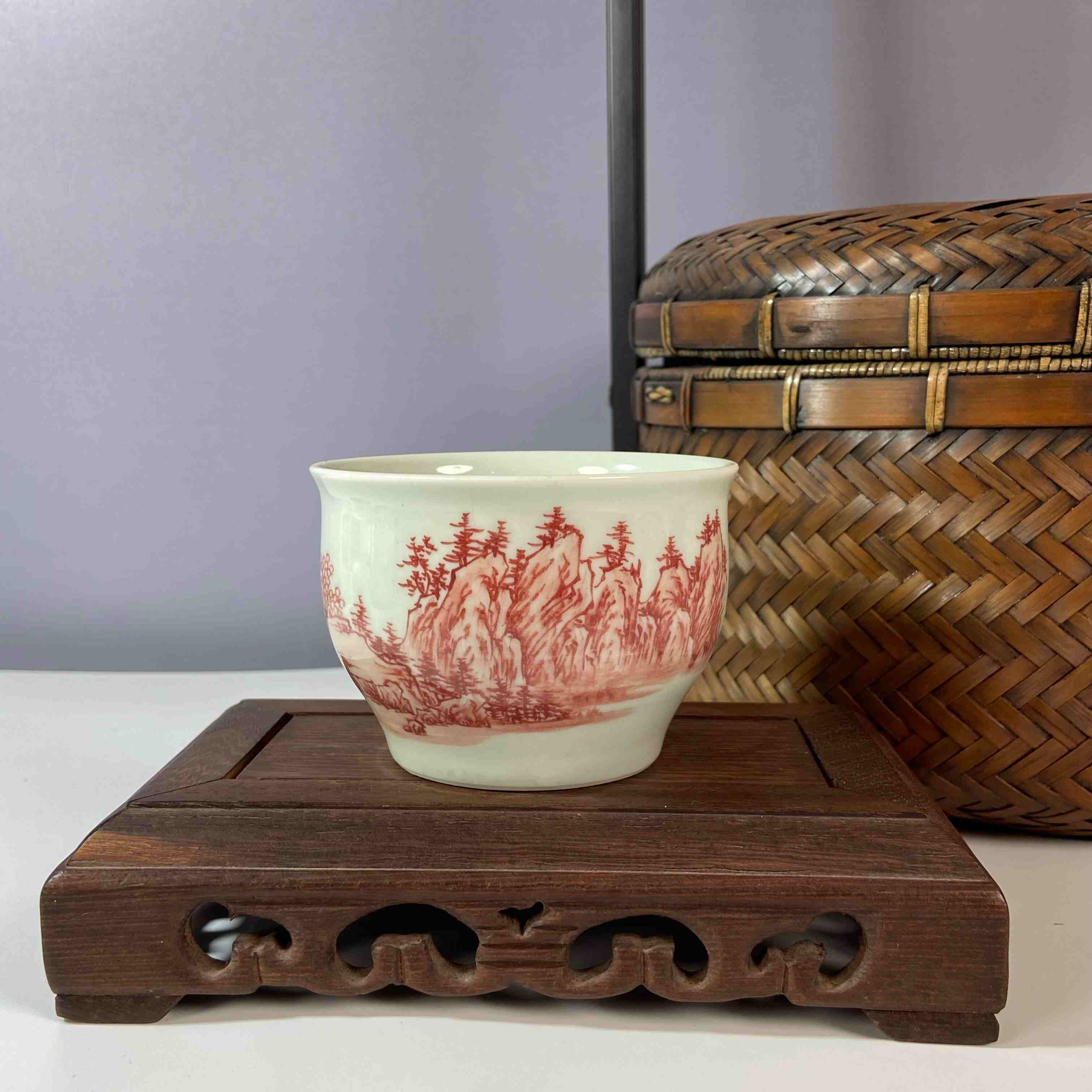 首页 / 茶器 / 主人杯系列 / 手绘红山水杯(口:8cm高:5.6 cm容量:168cc)