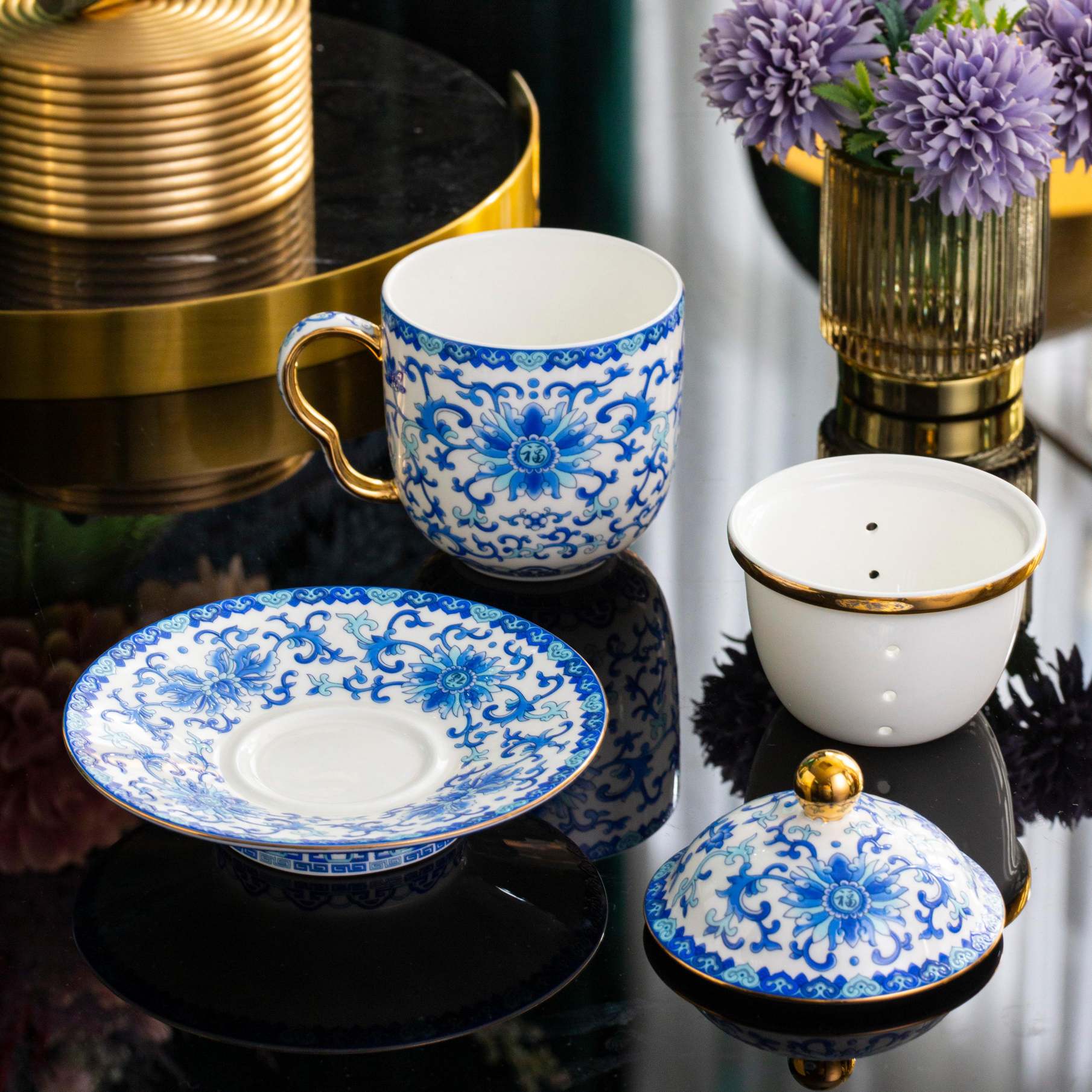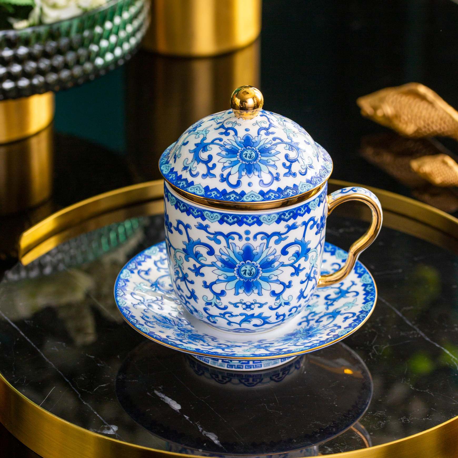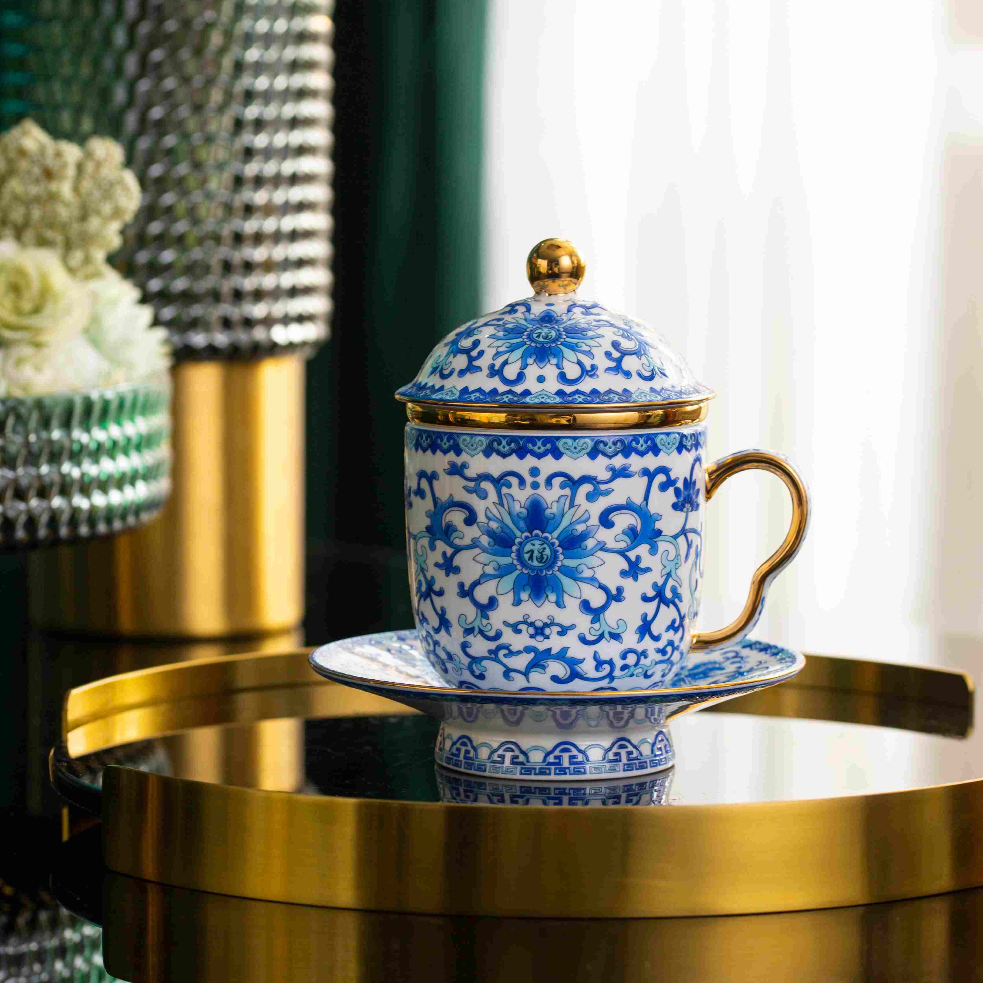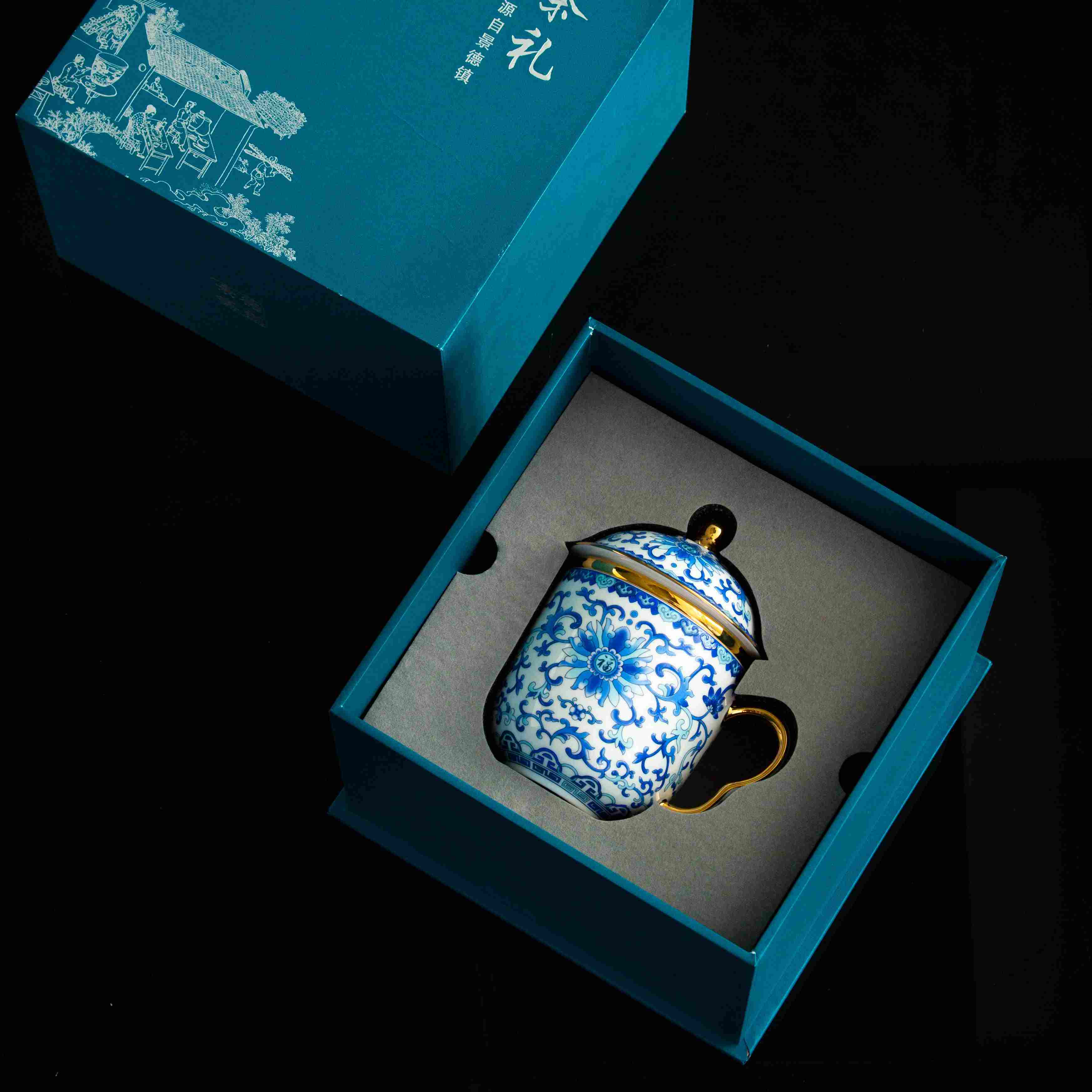 首页 / 办公用瓷 / 办公杯 / 珐琅彩杯蓝.四件套