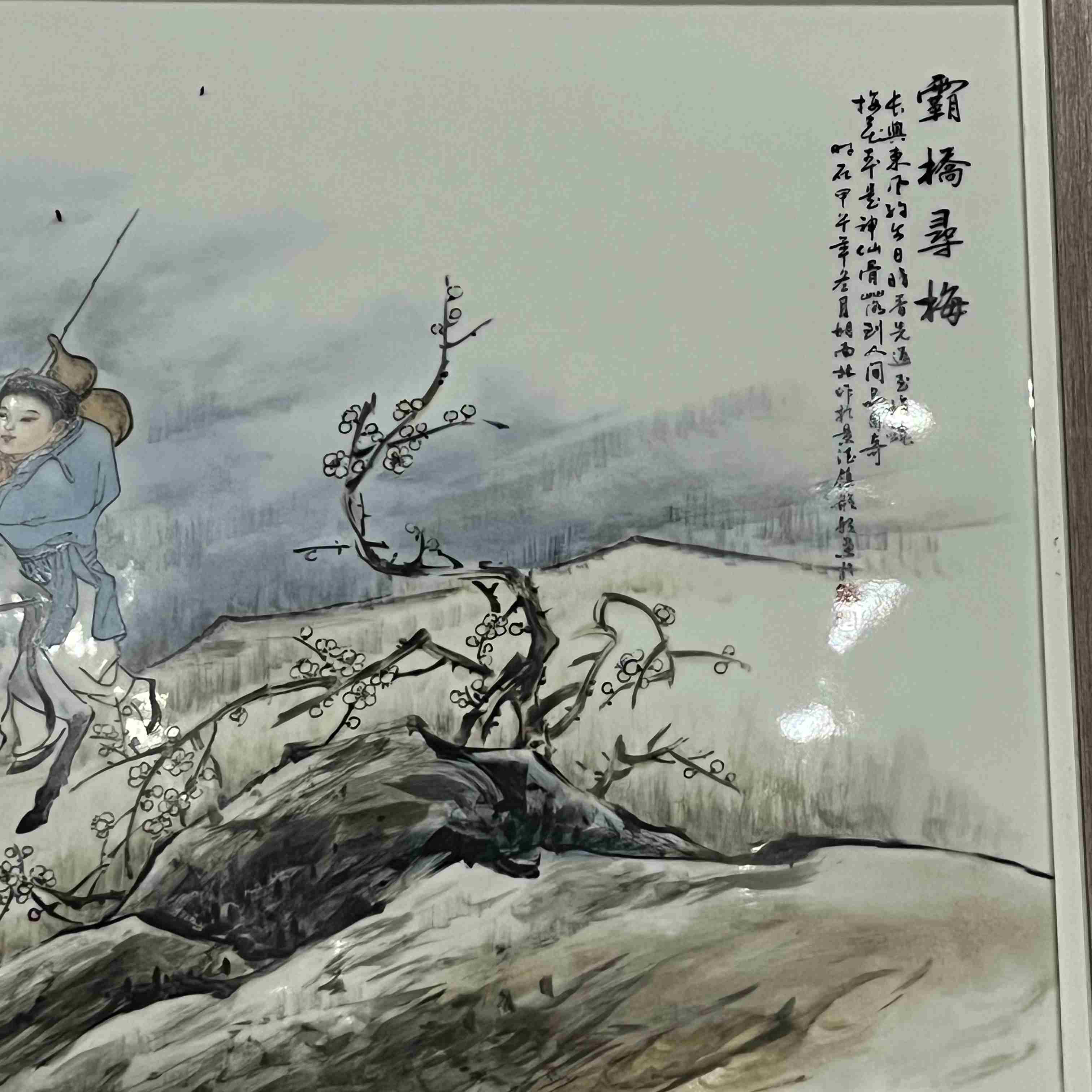 采用了瓷绘工艺,通过颜料在瓷板上绘制出细腻的画面,经过烧制后色彩稳定且具有光泽,呈现出细腻且富有层次感的视觉效果。