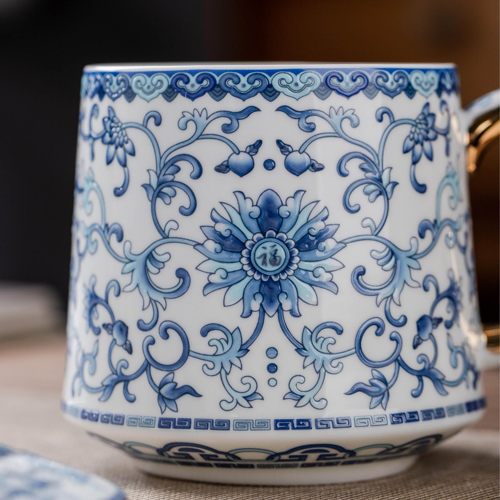首页 / 办公用瓷 / 办公杯 / 珐琅彩青花杯.三件套