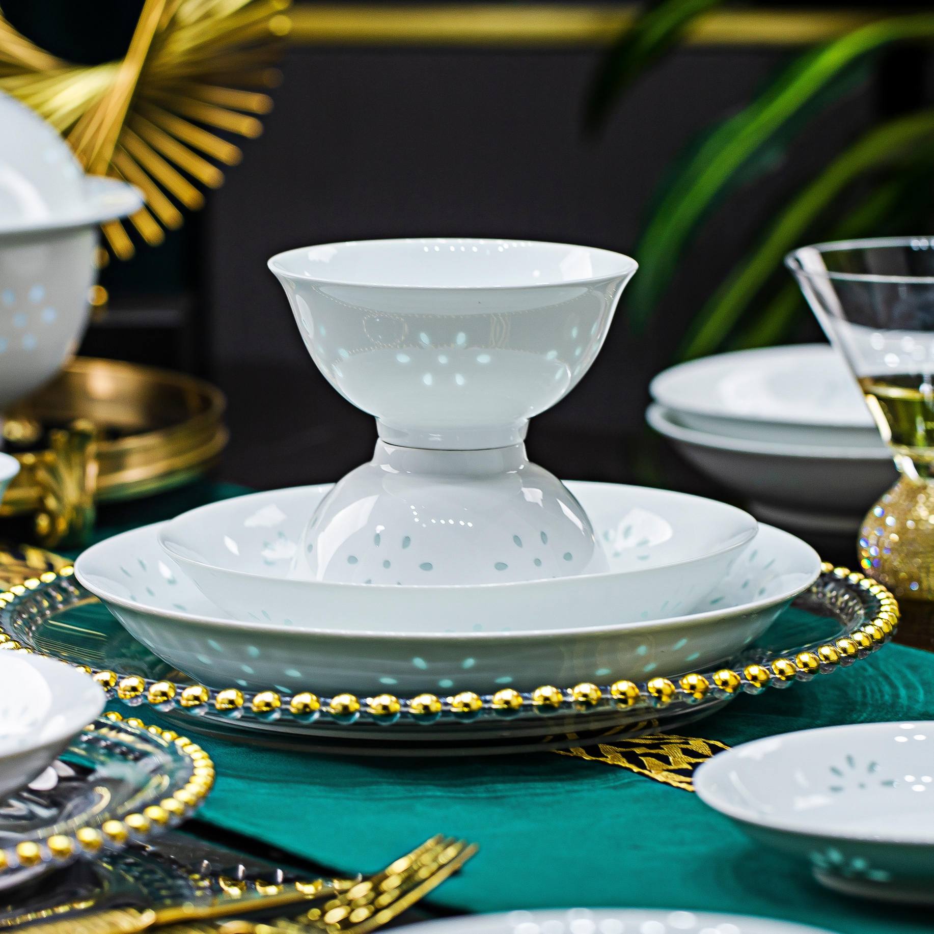 首页 / 餐具 / 套组餐具 / 58头 米粒纯色玲珑餐具套组