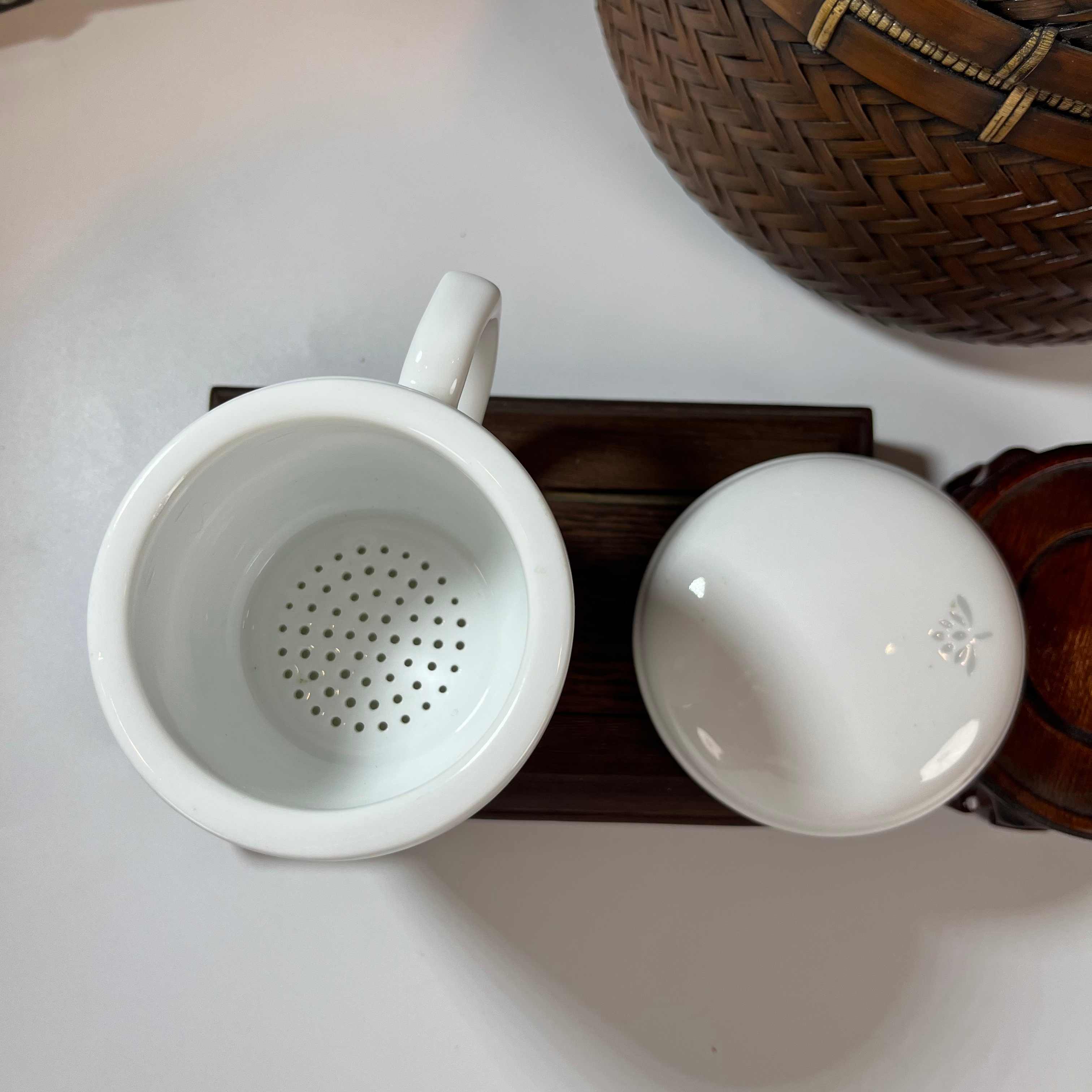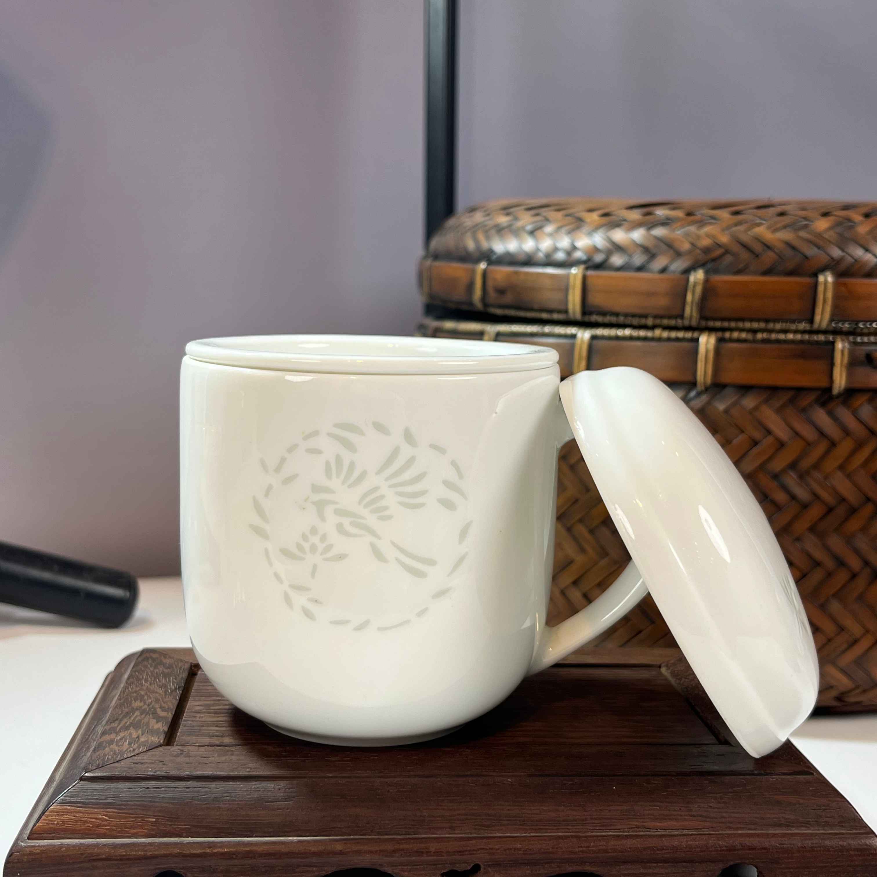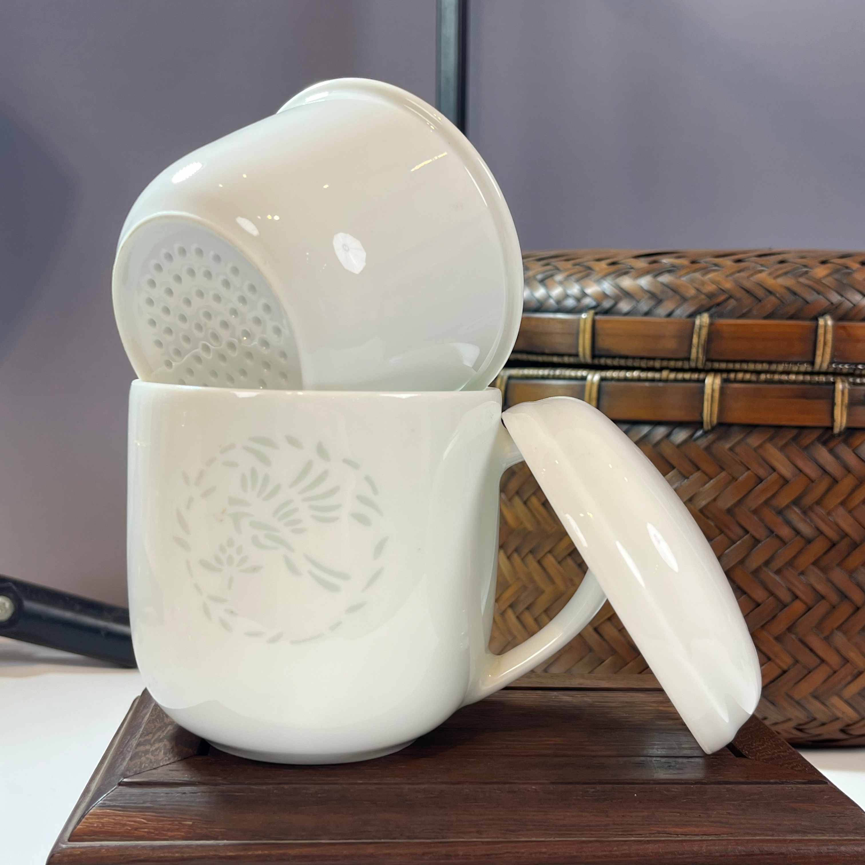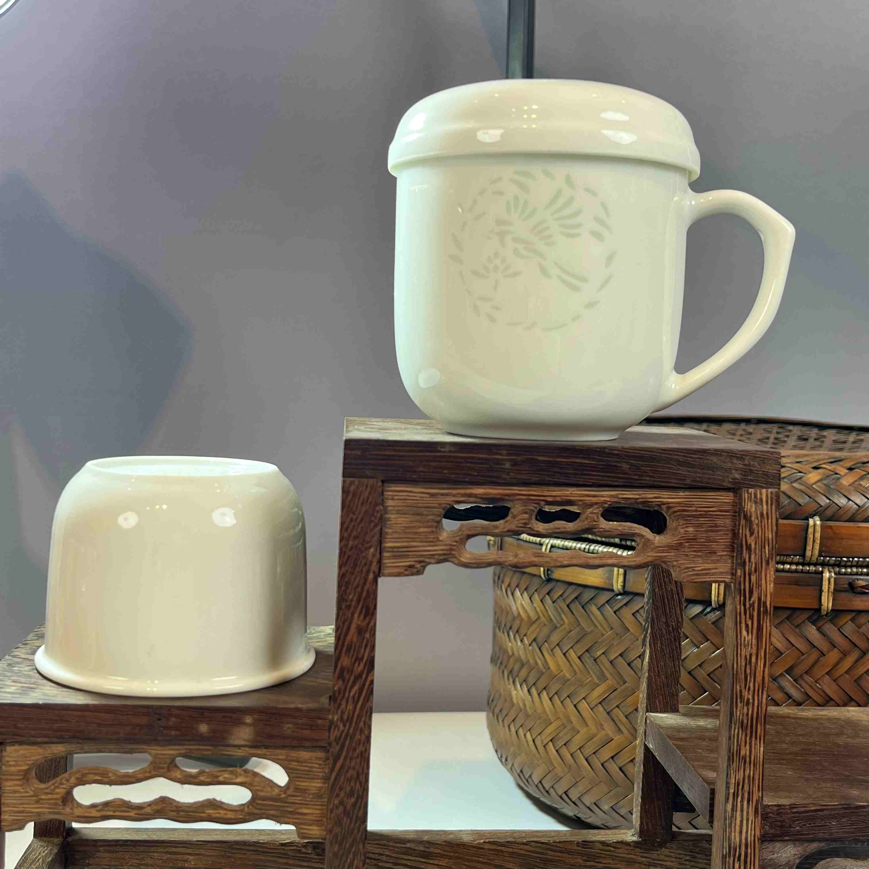 它带有茶漏,方便过滤茶叶,喝茶更方便。杯身的图案精致,像图里的花鸟图案,给杯子增添了雅致的气息。在办公时用它泡茶,既能享受喝茶的乐趣,又能感受传统文化的韵味,而且白色的瓷身看起来干净素雅,很适合办公环境使用。无论是自己日常使用,还是送给朋友,都是很有格调的选择。