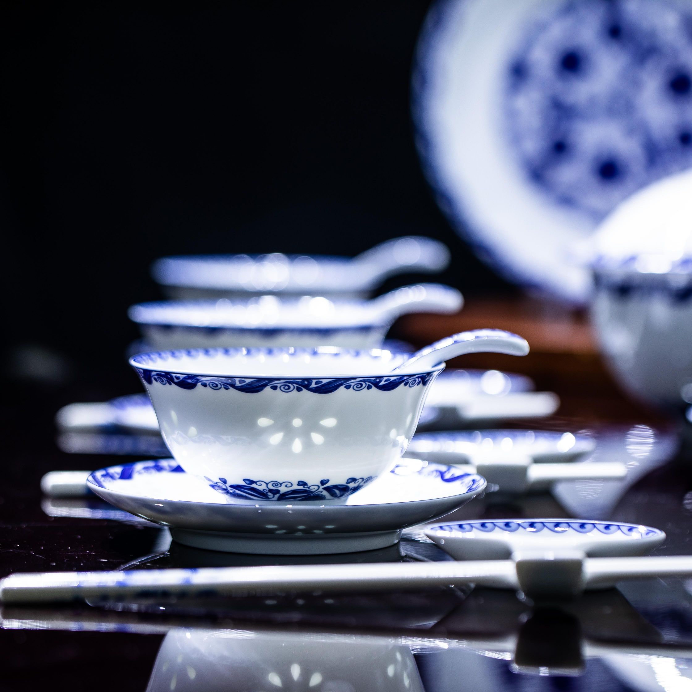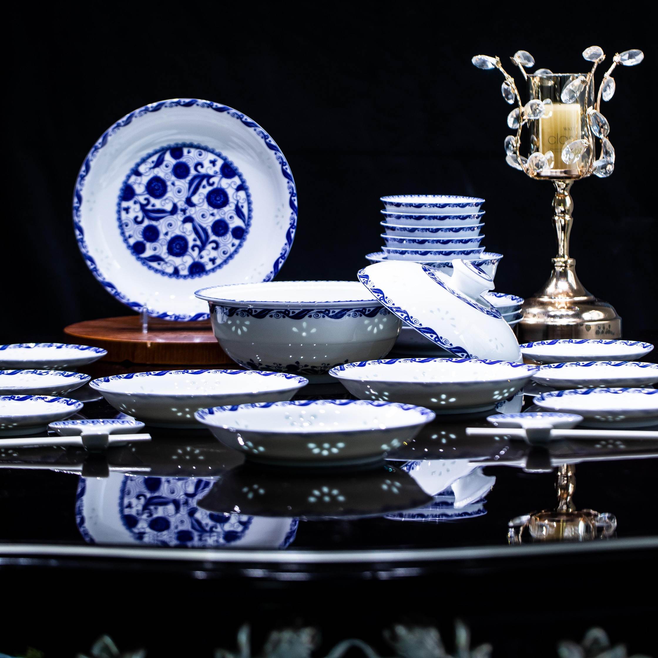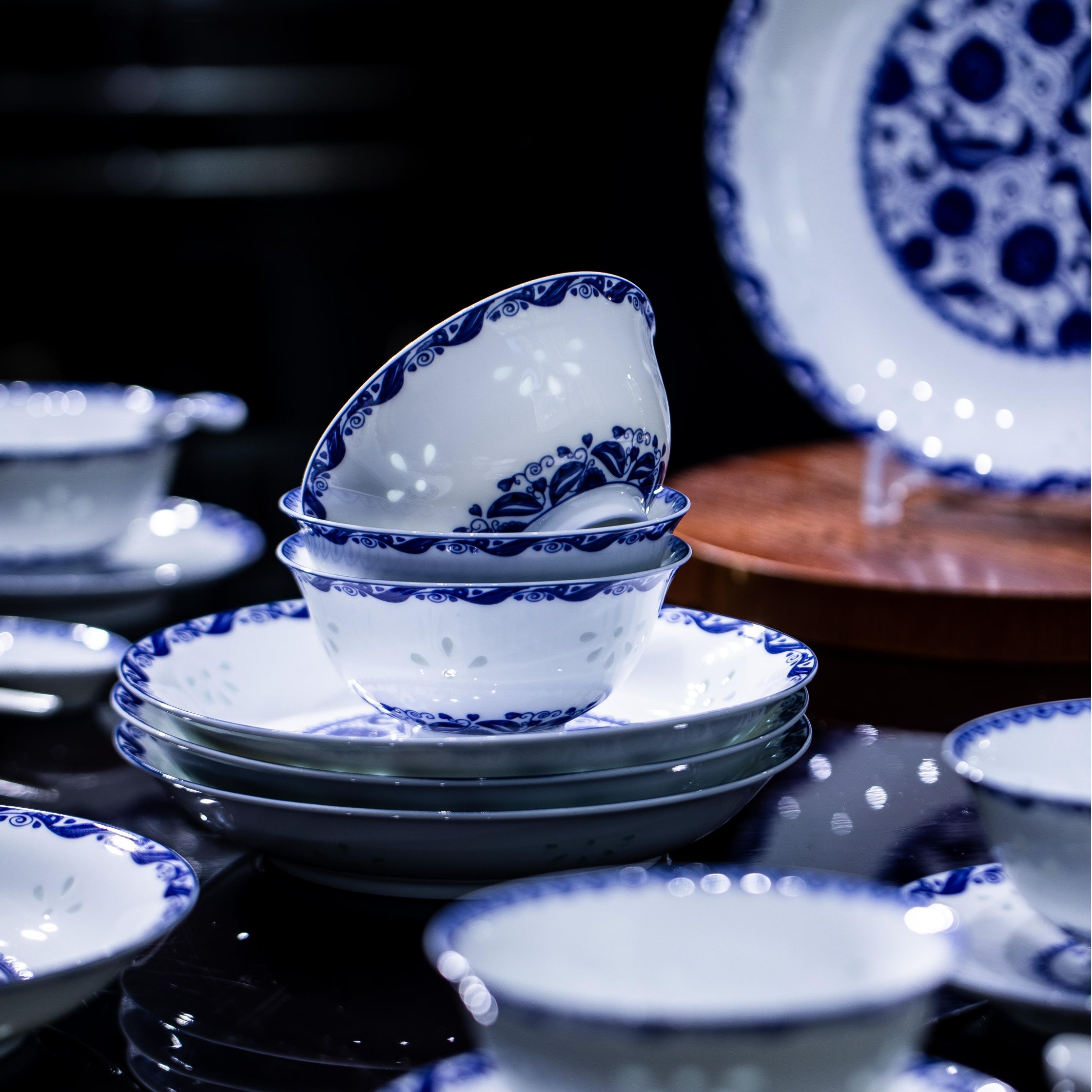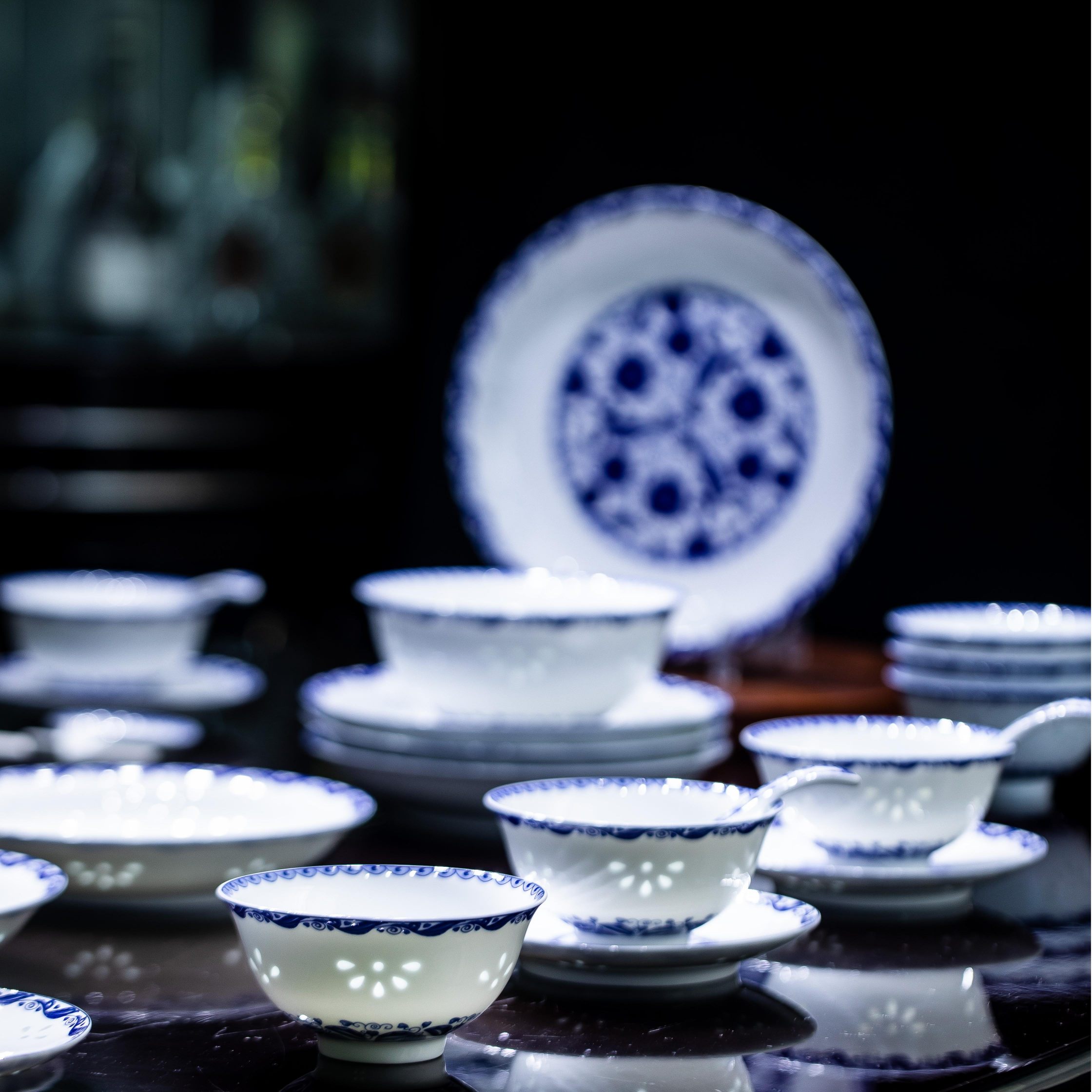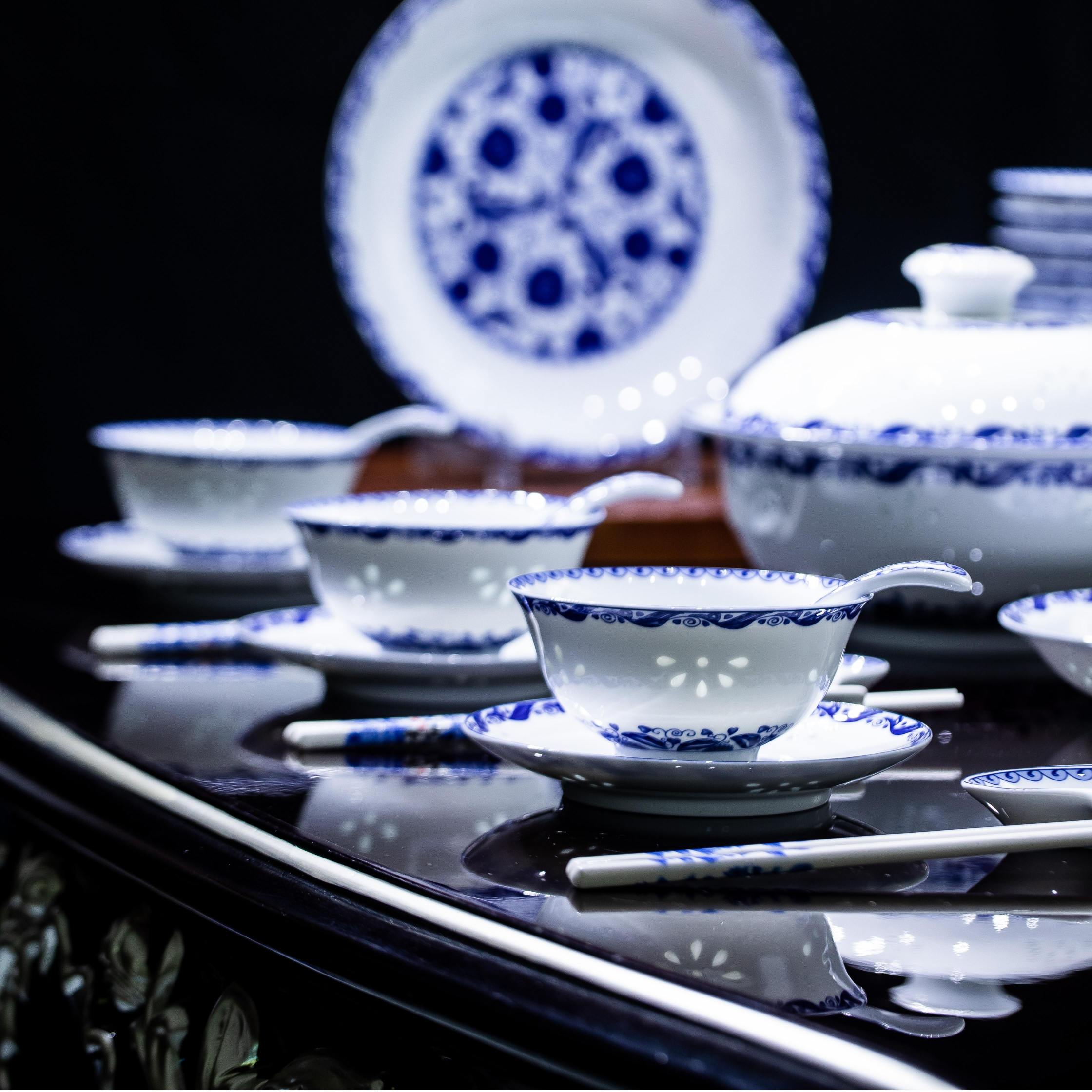 首页 / 餐具 / 套组餐具 / 68头蓝色情怀.玲珑瓷餐具套组