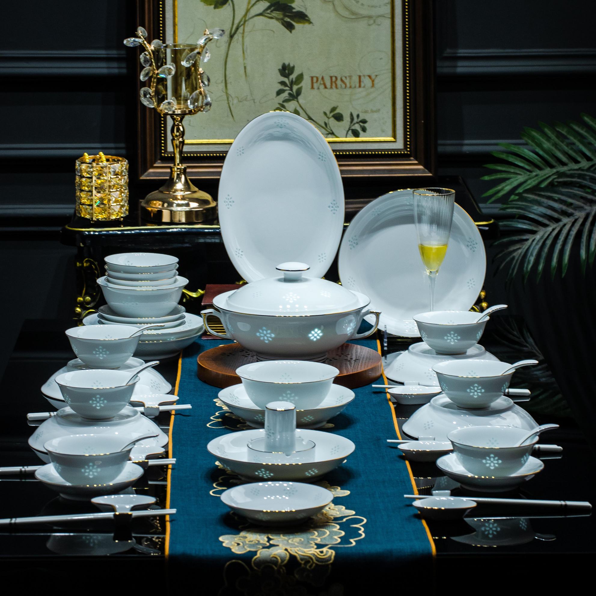 首页 / 餐具 / 套组餐具 / 68头星光灿烂玲珑餐具套组