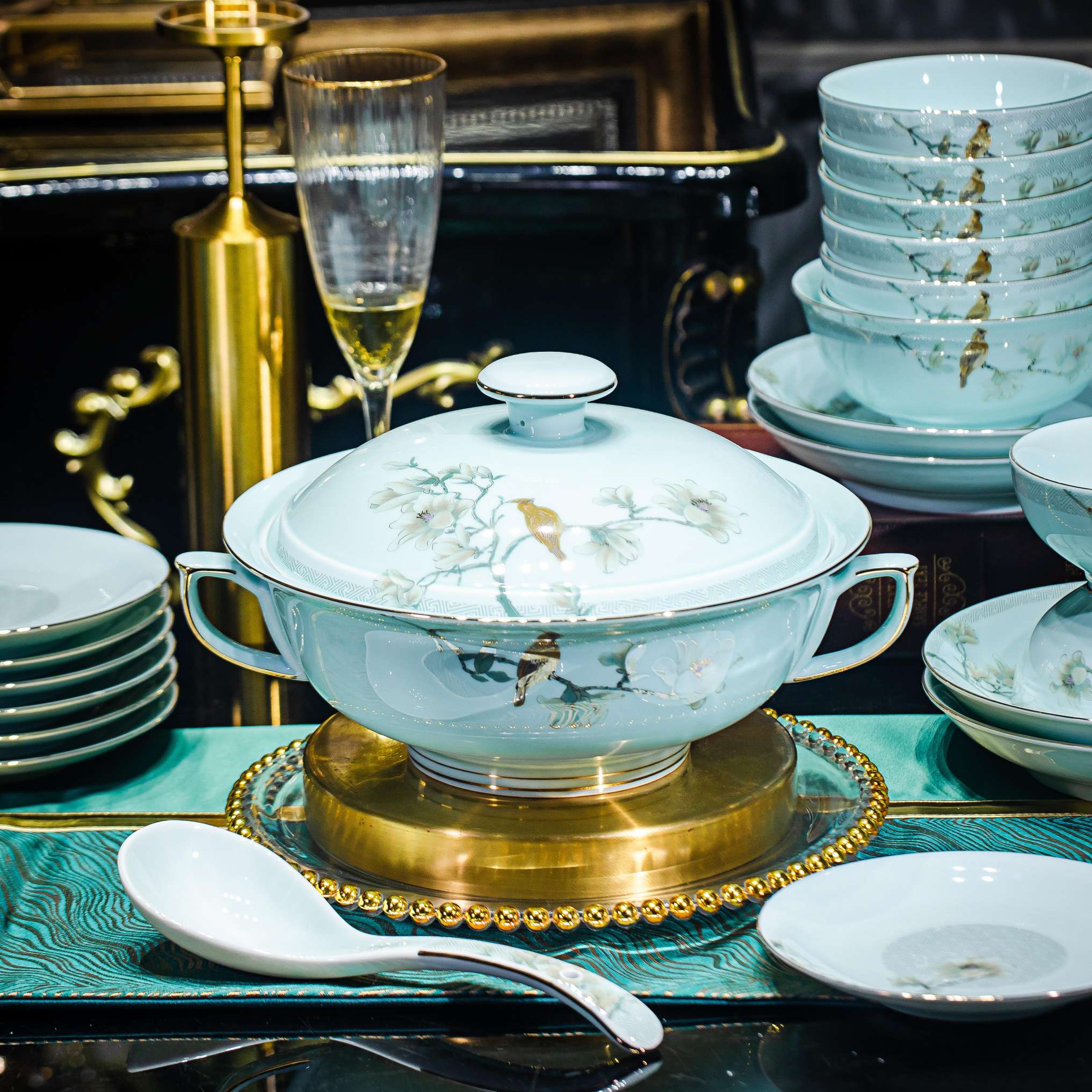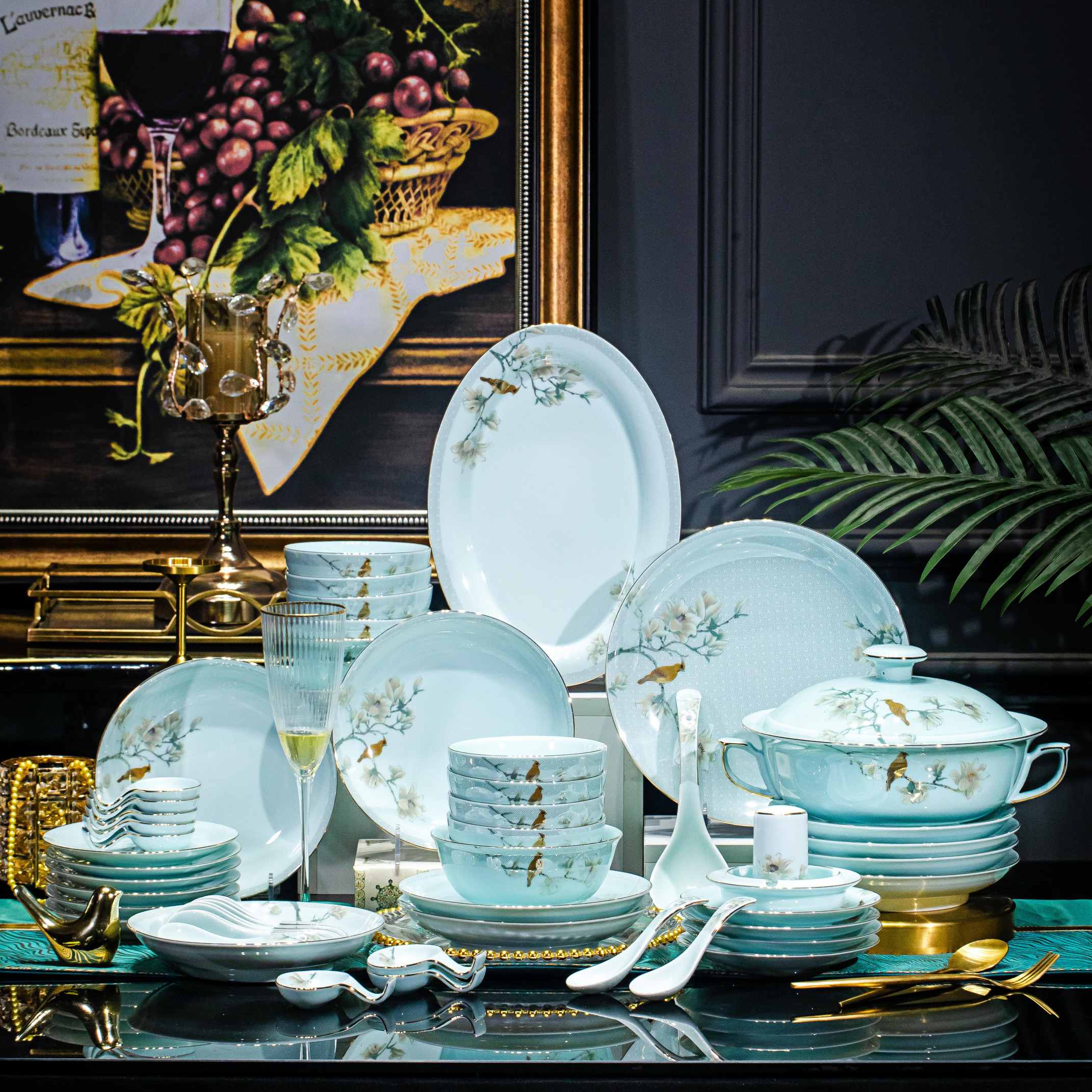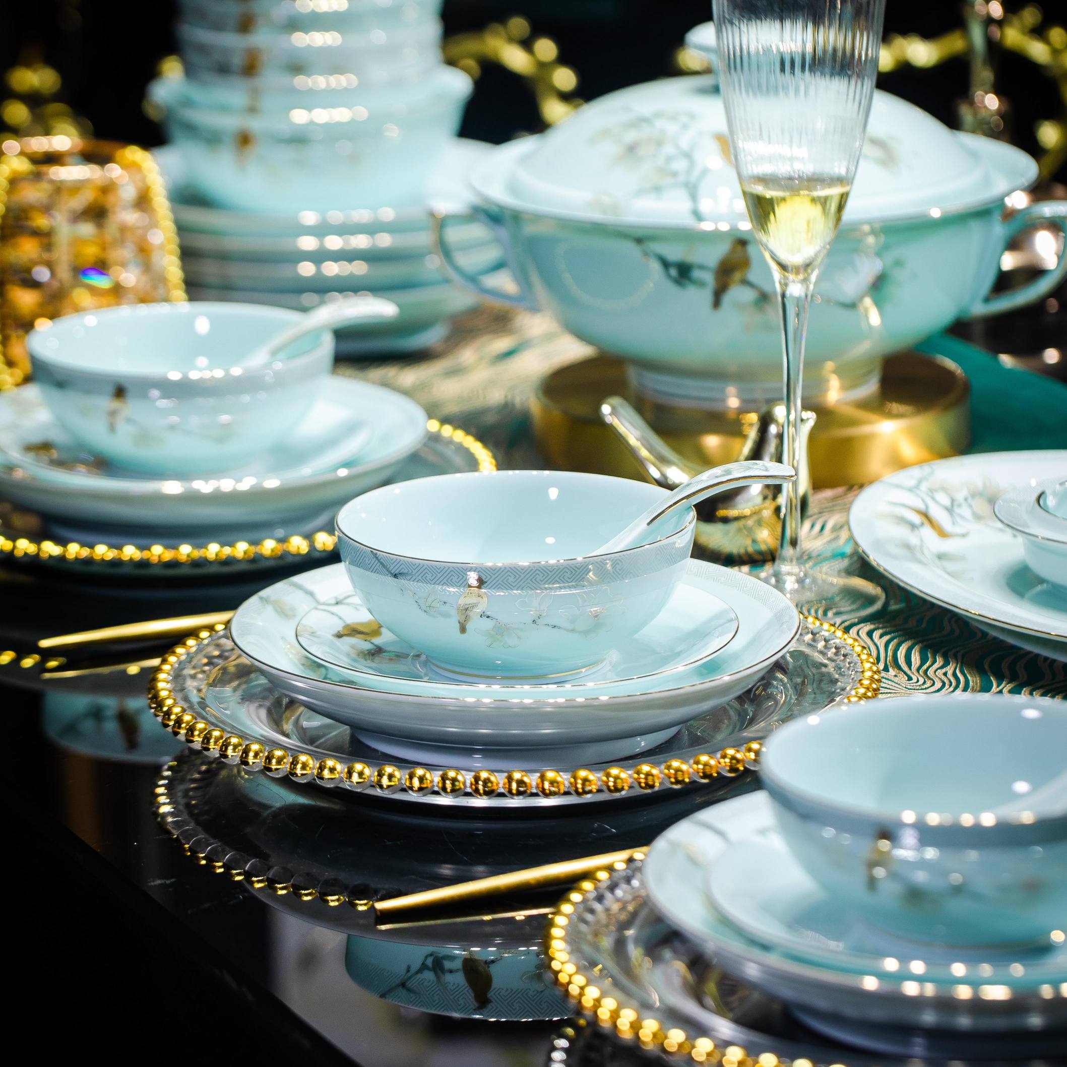 58头蓝庭满园餐具套组