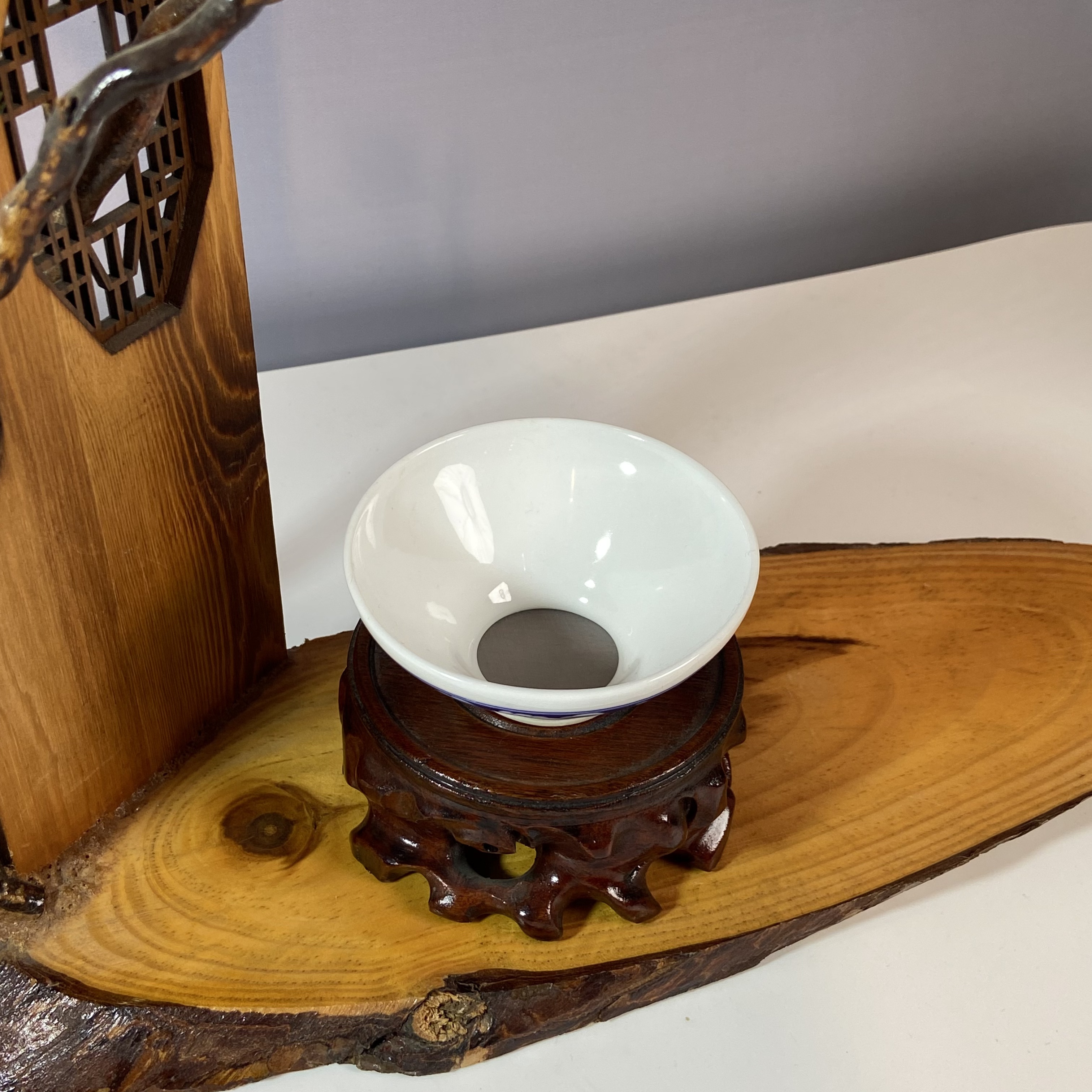 工艺:采用传统青花瓷制作工艺,先在瓷胎上用氧化钴颜料精心绘制图案,再施以透明釉,经高温烧制而成。烧制后的青花图案牢固地附着在瓷器表面,不易褪色,保证了茶漏的美观与耐用性。