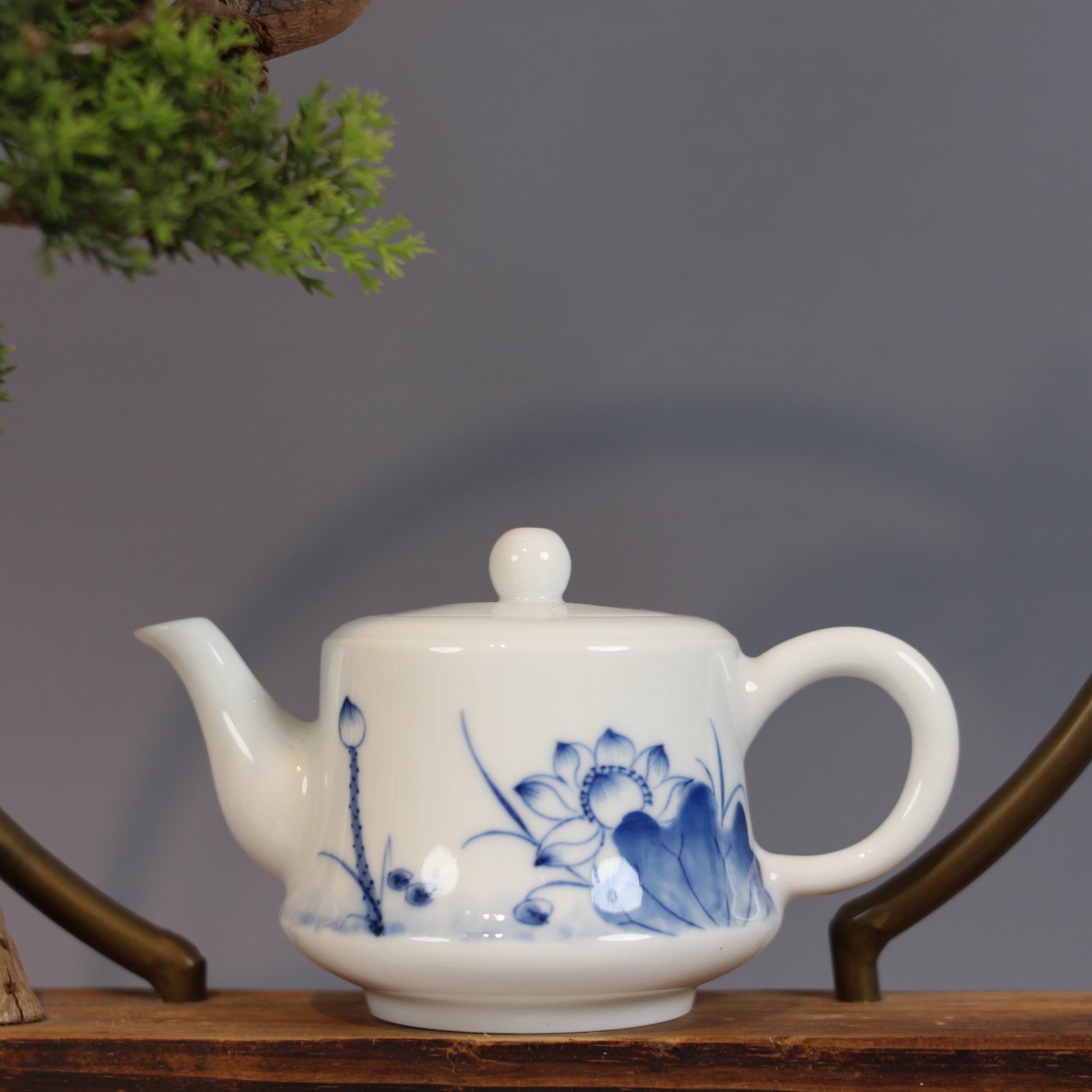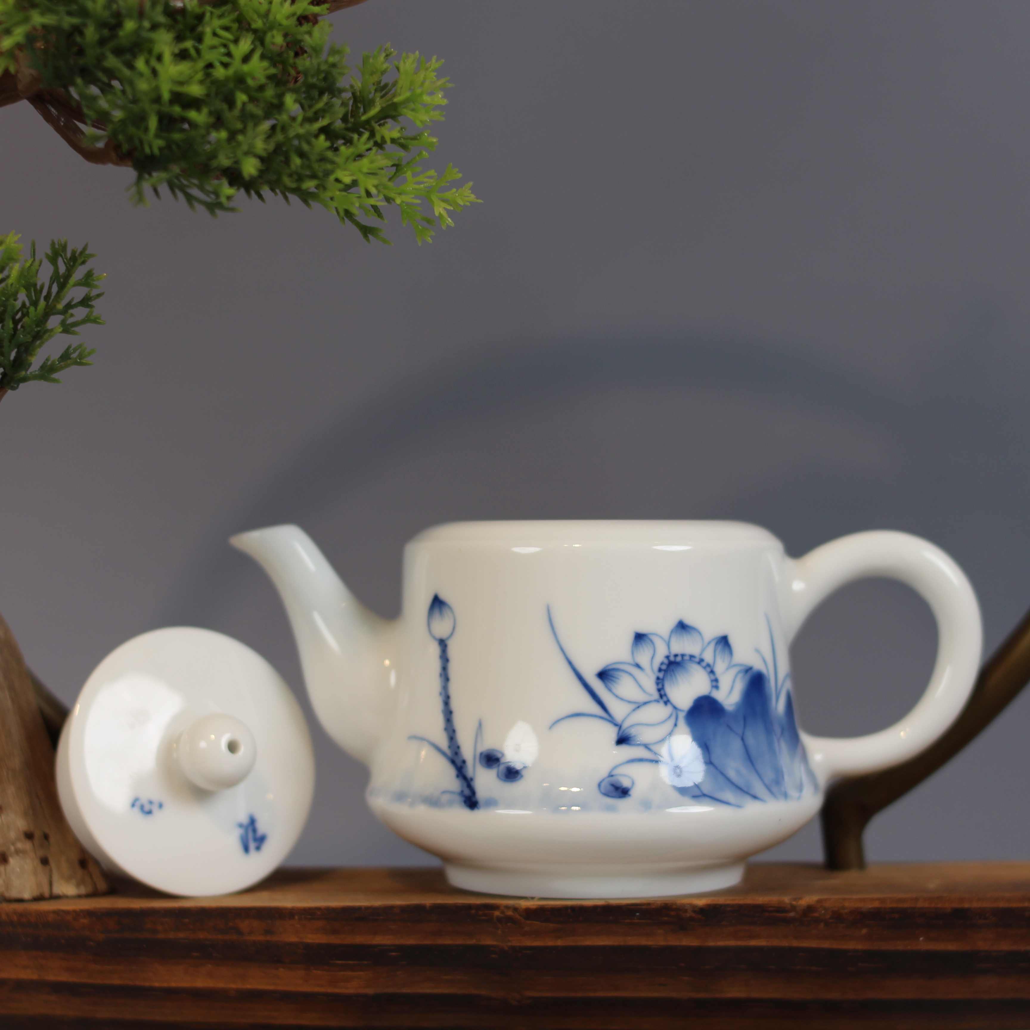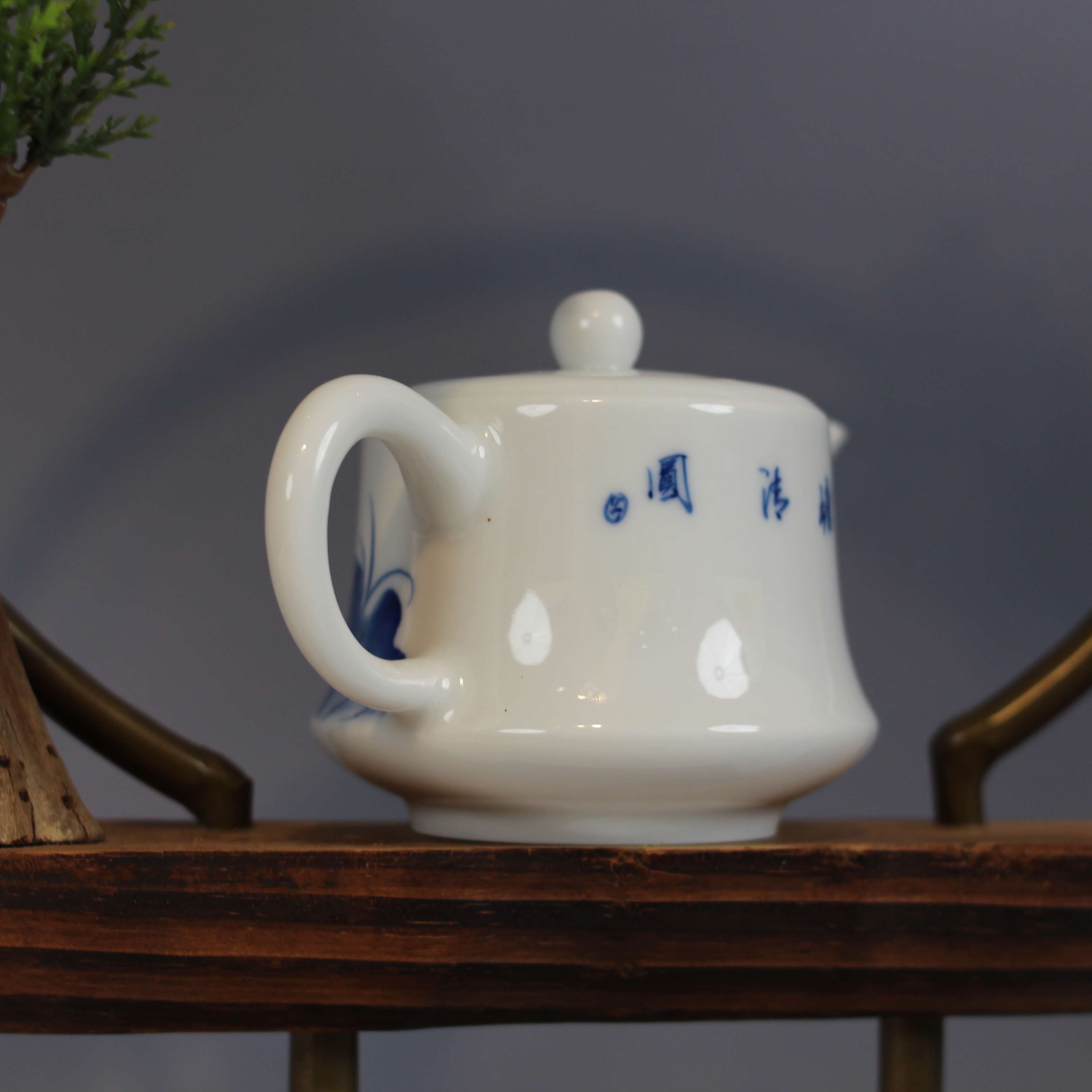 整体比例协调,既符合功夫茶 “旋冲旋饮” 的实用需求,又以 “简约轮廓 + 青花雅韵” 适配新中式家居风格,摆于茶席或案头皆显格调。