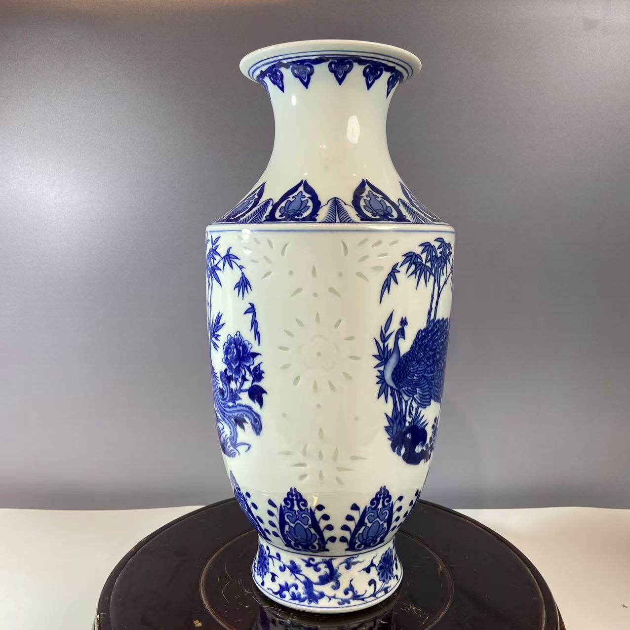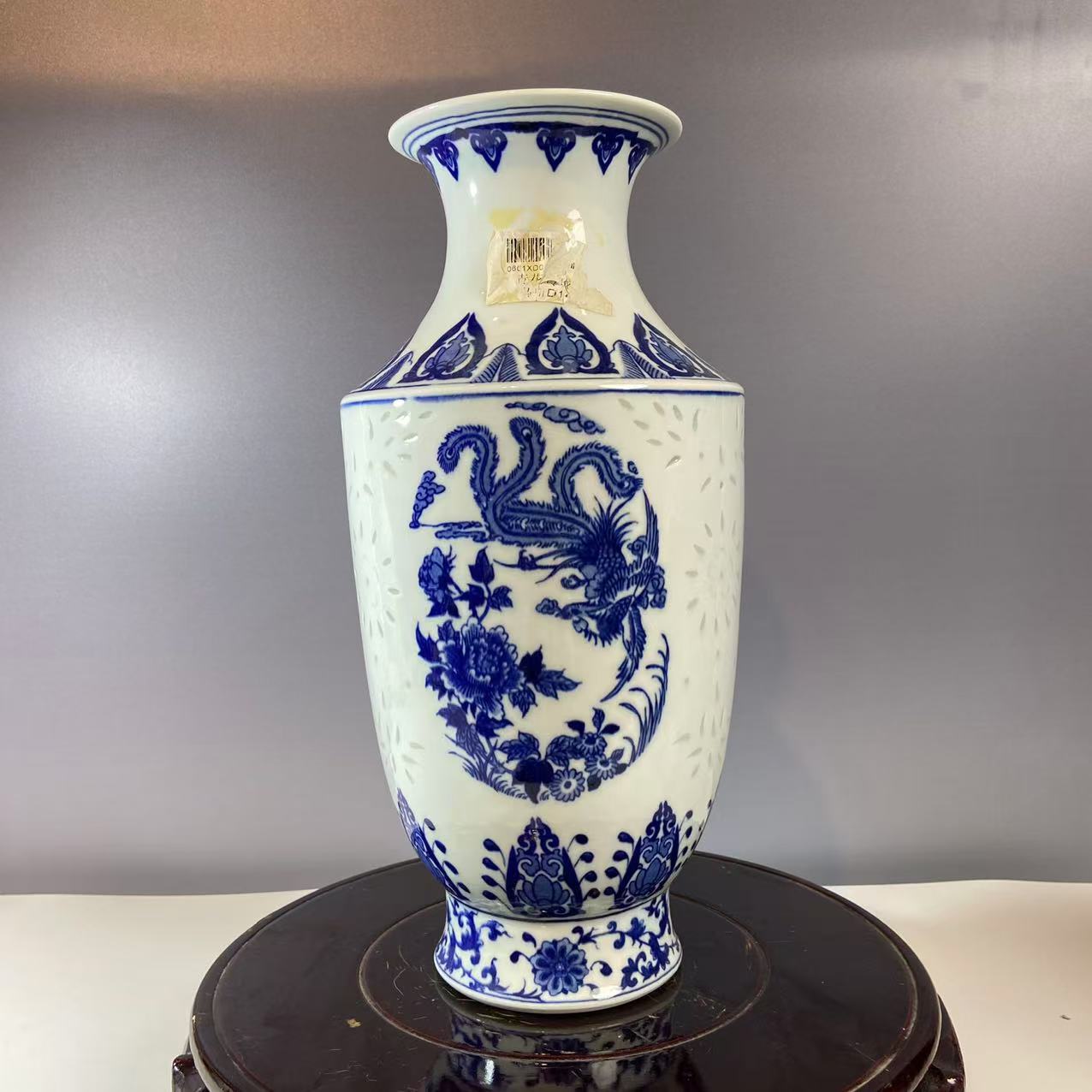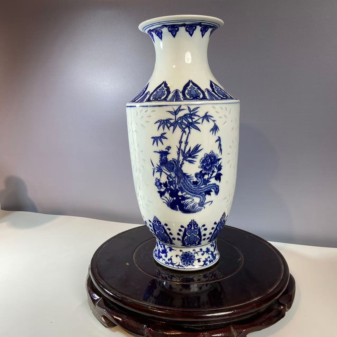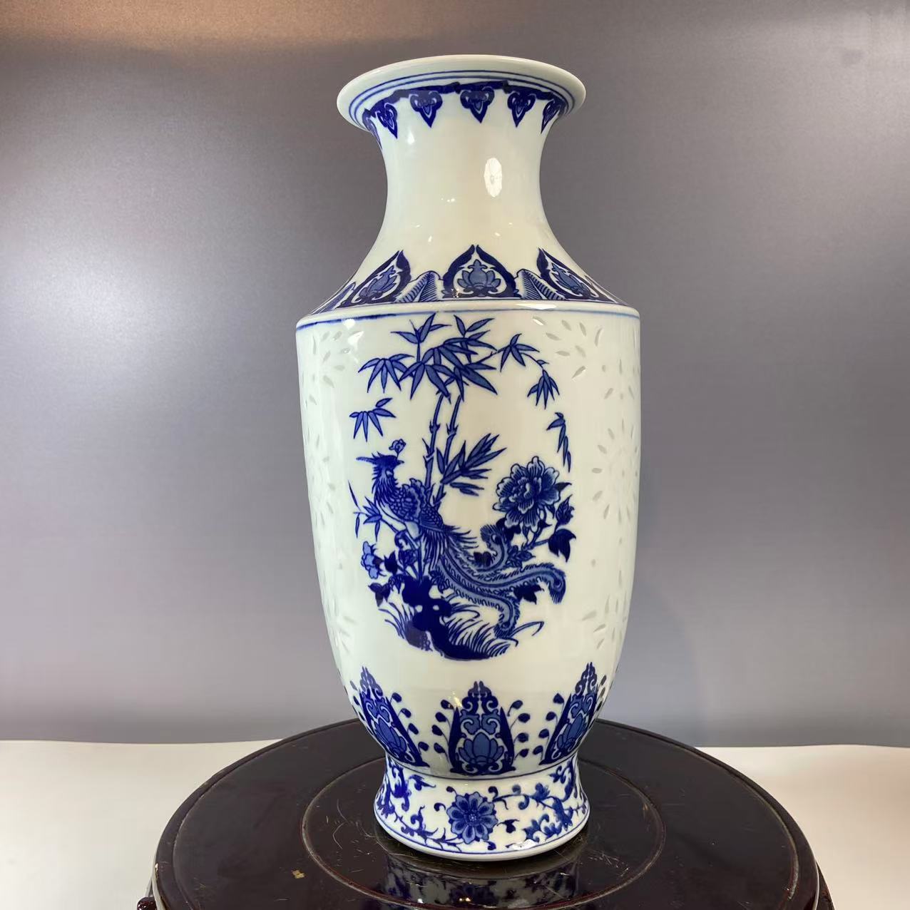 首页 / 艺术陈设瓷 / 花瓶系列 / 玲珑凤陶瓷花瓶(高:36cm 肚:16cm)