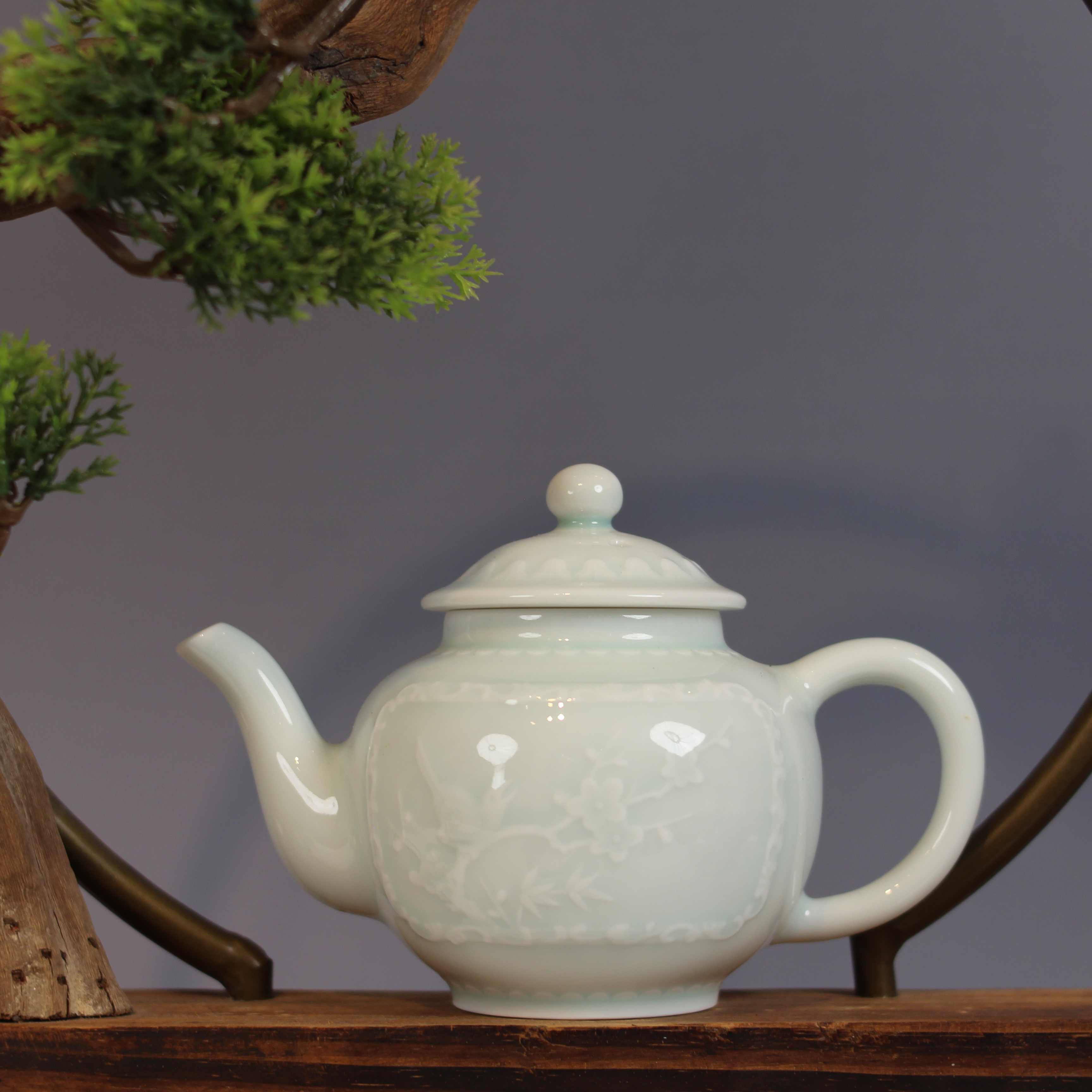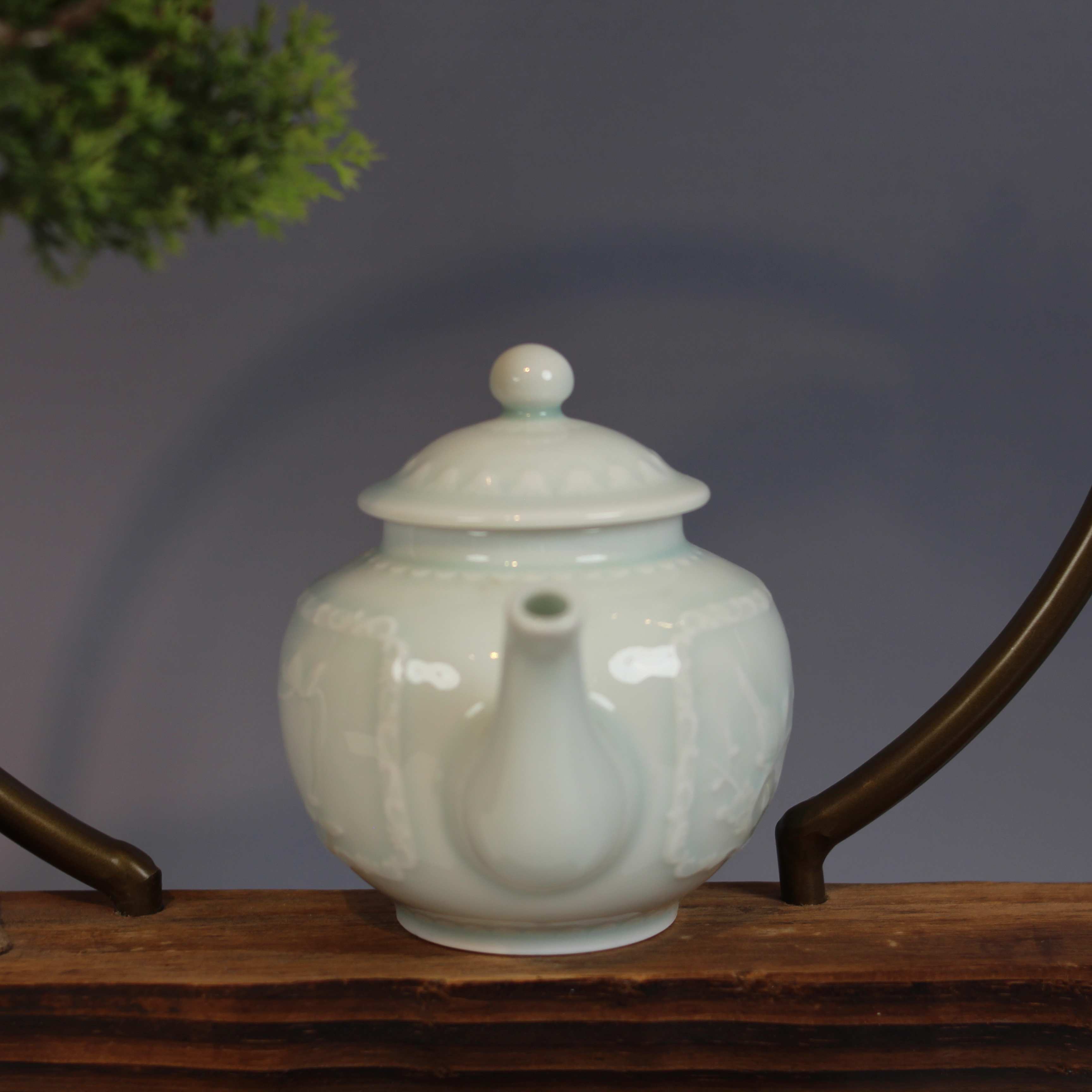 30元3串陶瓷吊坠雕刻工艺与装饰美学 1. 雕刻技法: 壶身采用浮雕/暗刻工艺,纹饰(如花鸟、山水)需在半干的瓷坯上手工雕刻,再施影青釉高温烧制。雕刻线条深浅有致,釉色流动时在纹饰处形成“青影交错”的层次感——凸起处釉薄显白,凹陷处釉厚透青,光影下纹饰若隐若现,尽显“素肌玉骨”的含蓄之美。 2. 纹样寓意: 壶身雕刻多为吉祥题材(如花鸟、莲纹、山水),既呼应宋代“天人合一”的审美(将自然意趣凝于器身),又传递传统寓意(如花鸟象征生机、莲纹寓意洁净)。 器型设计与实用功能 经典壶型: 壶身饱满圆润,壶流(嘴)修长流畅,壶把与壶身比例协调,盖钮小巧精致(便于捏取)。整体造型承袭宋代“注子”(酒器/茶器)的优雅线条,兼顾视觉平衡与握持舒适度。 文化意境与当代价值 : 1.影青雕刻壶的淡雅釉色、含蓄纹饰,延续了宋代文人“雅、静、简”的审美追求。泡茶时,可观釉色之温润、赏雕刻之灵动,让饮茶从“解渴”升华为“精神栖居”。 2.传统与现代的融合: 它并非完全复刻古器,而是在形制上融入现代审美(如更圆润的线条、更简洁的纹饰),既适配中式茶席的古朴氛围,也能融入现代家居的简约风格,成为“日用即艺术”的生活载体。 这款影青雕刻壶,既是对千年陶瓷工艺的致敬,也是当代茶人“以器载道”的生活选择——在青白釉色的温润光影中,可品茶之真味,亦可赏器之雅韵。