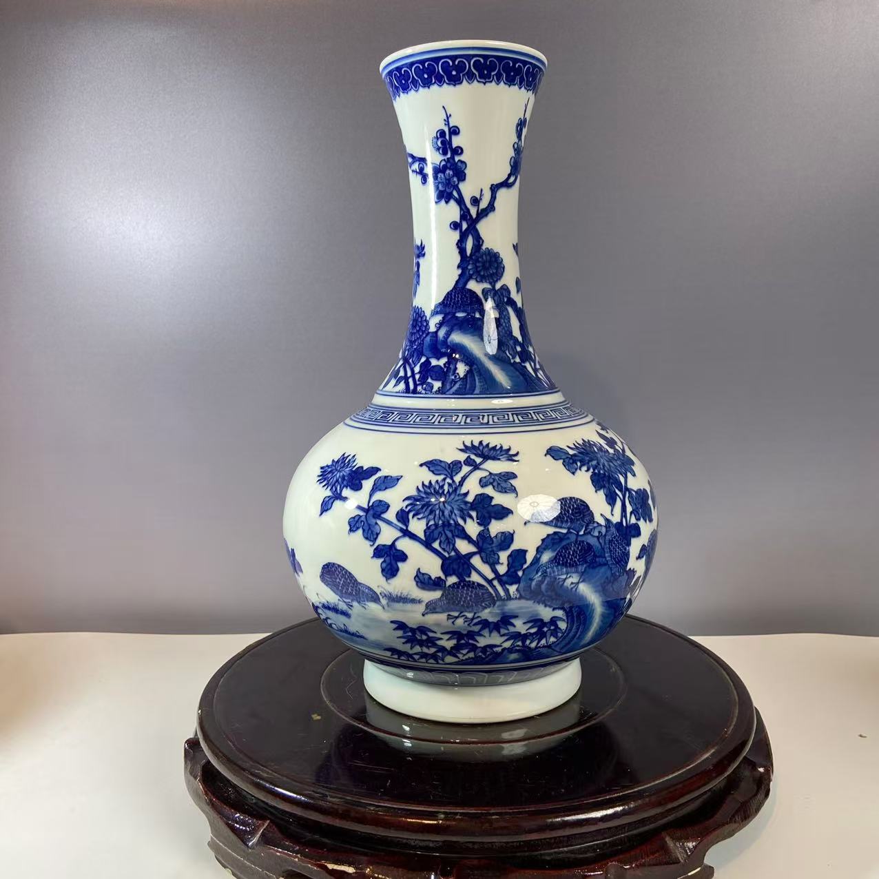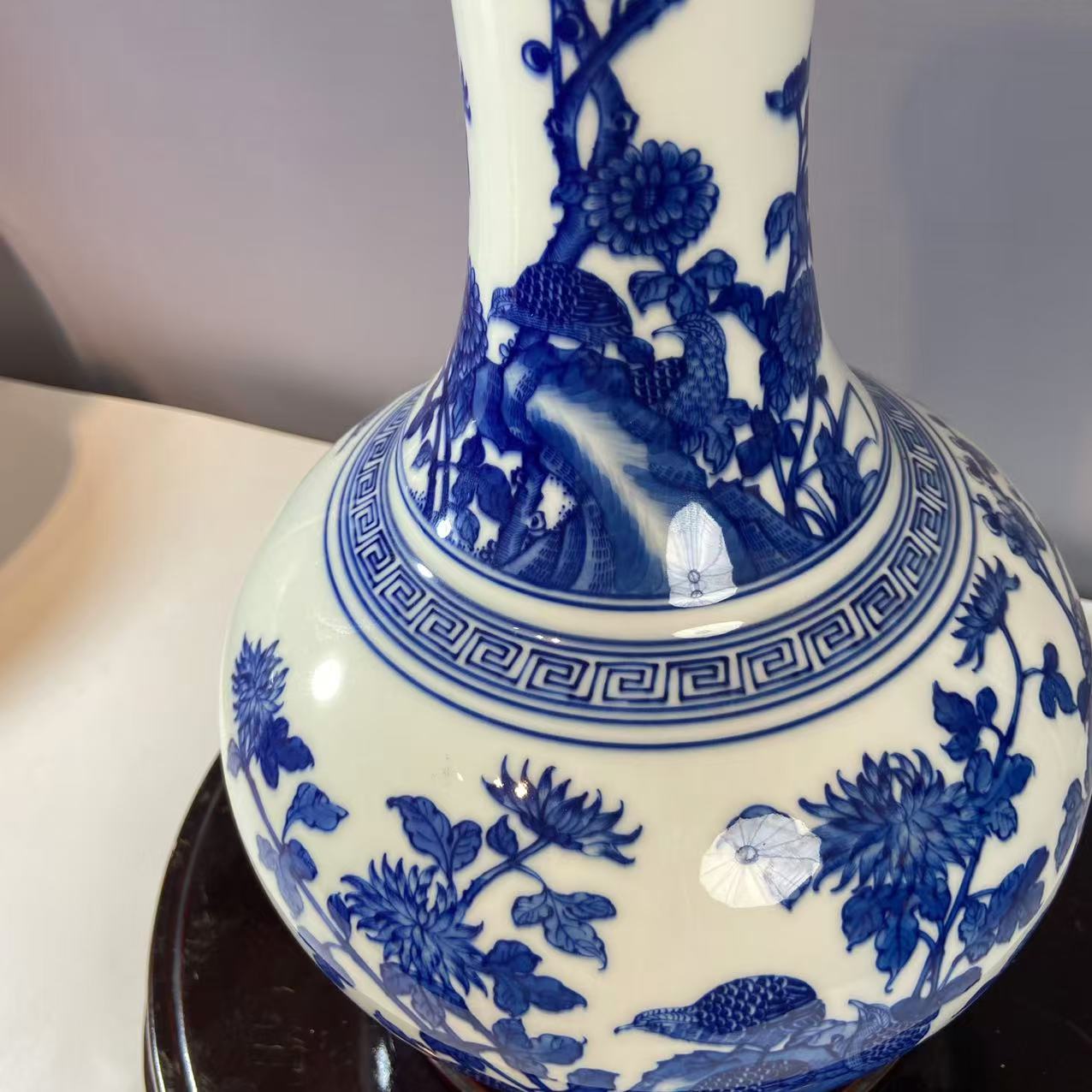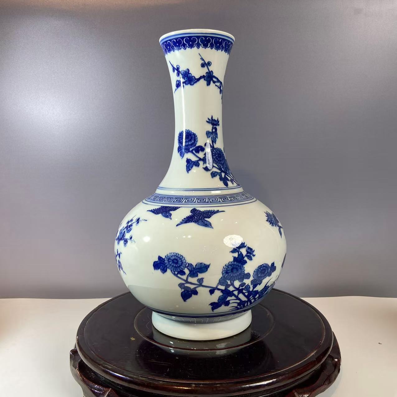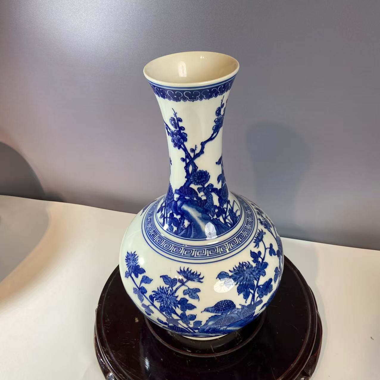 首页 / 艺术陈设瓷 / 花瓶系列 / 花鸟青花瓶(高:35cm 肚:23cm)
