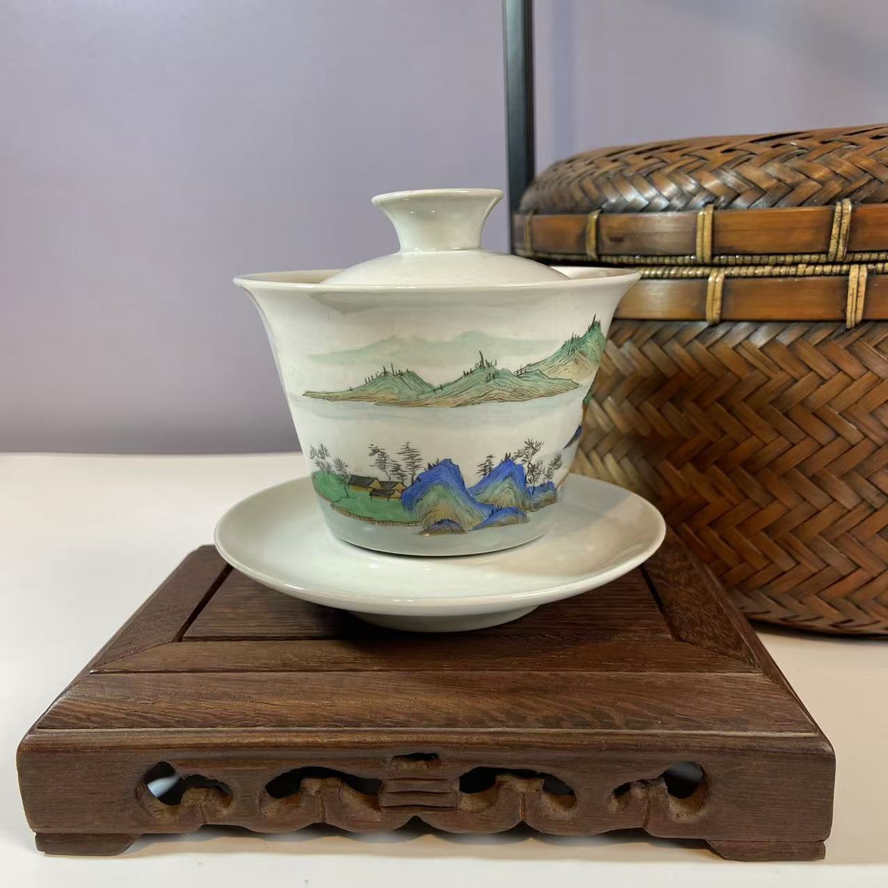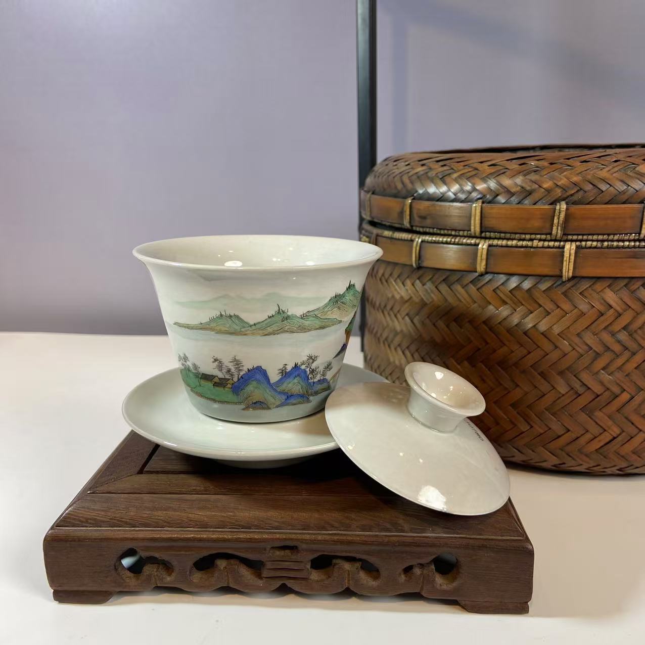 首页 / 茶器 / 盖碗系列 / 江山三才盖碗(高:11.8cm 容量:175ml)
