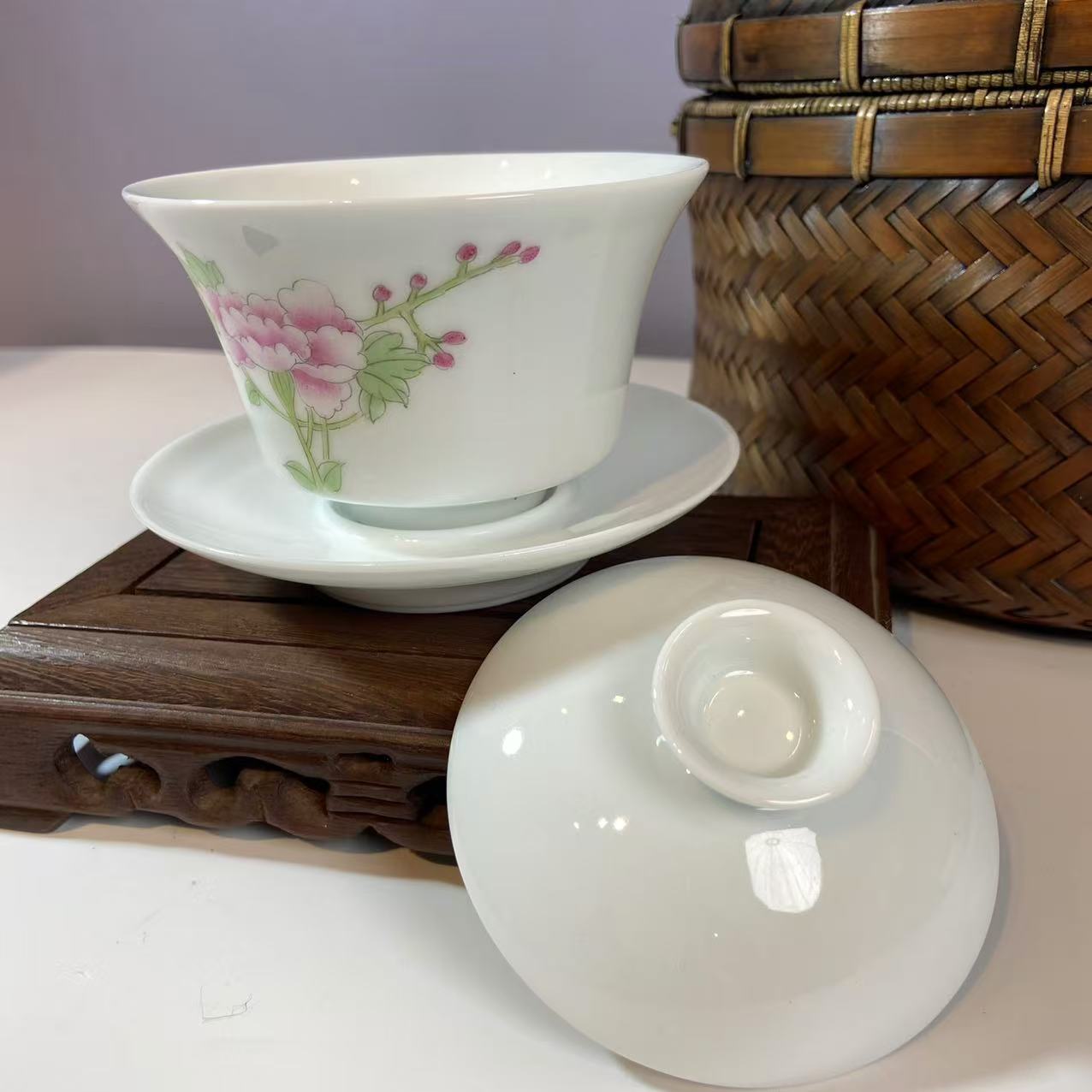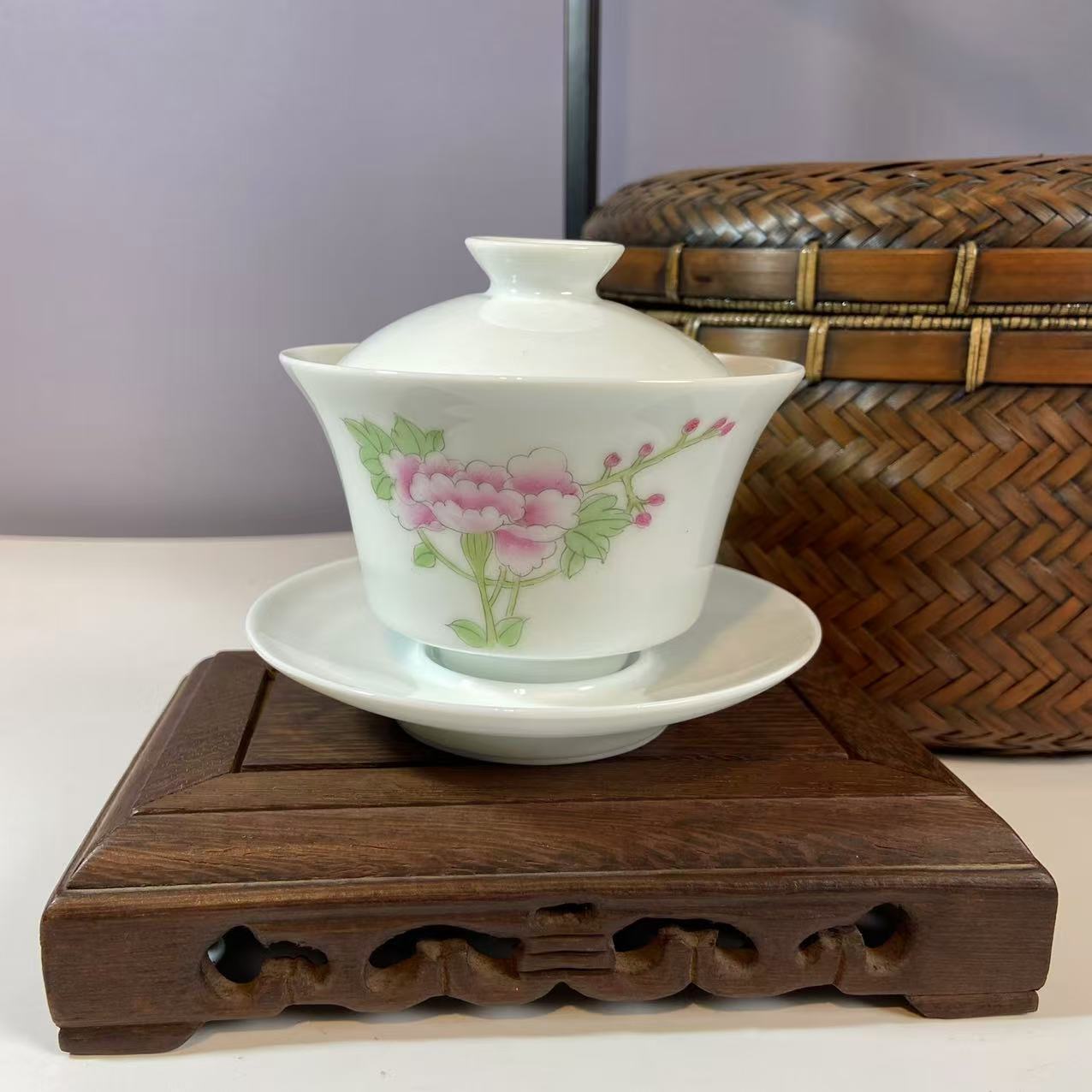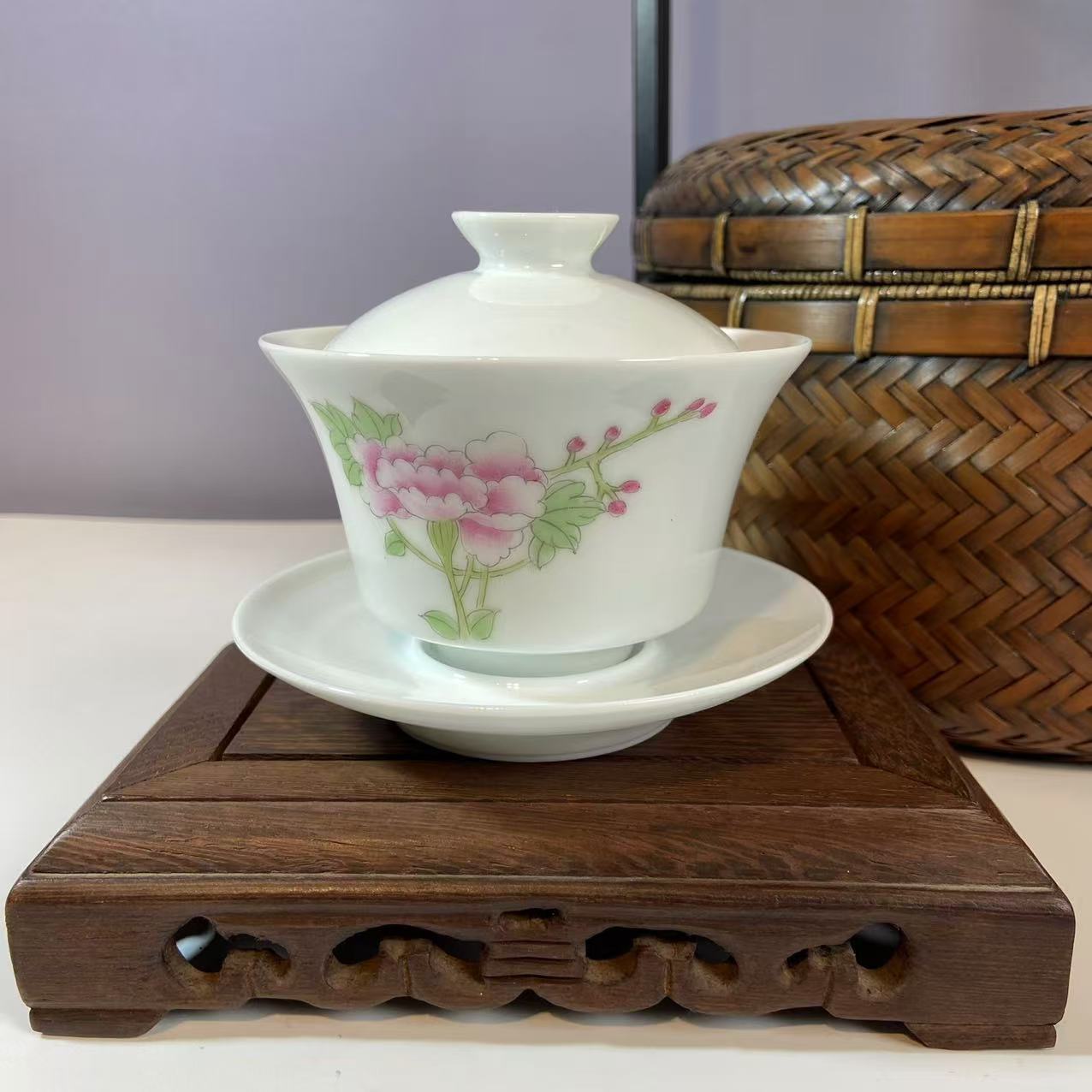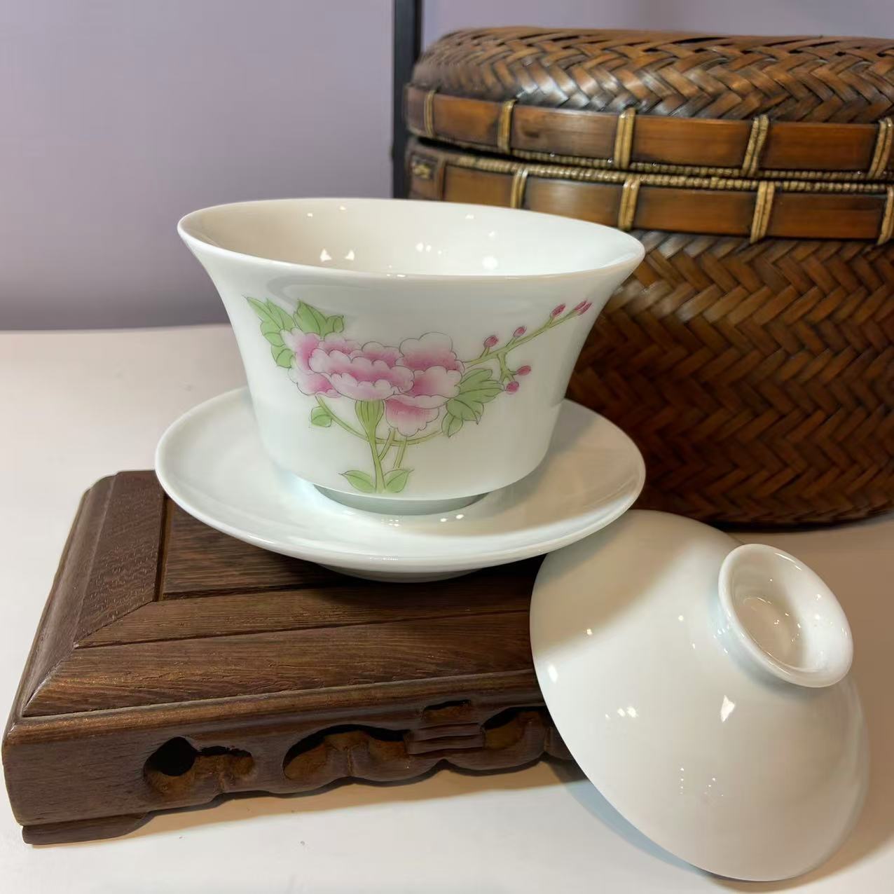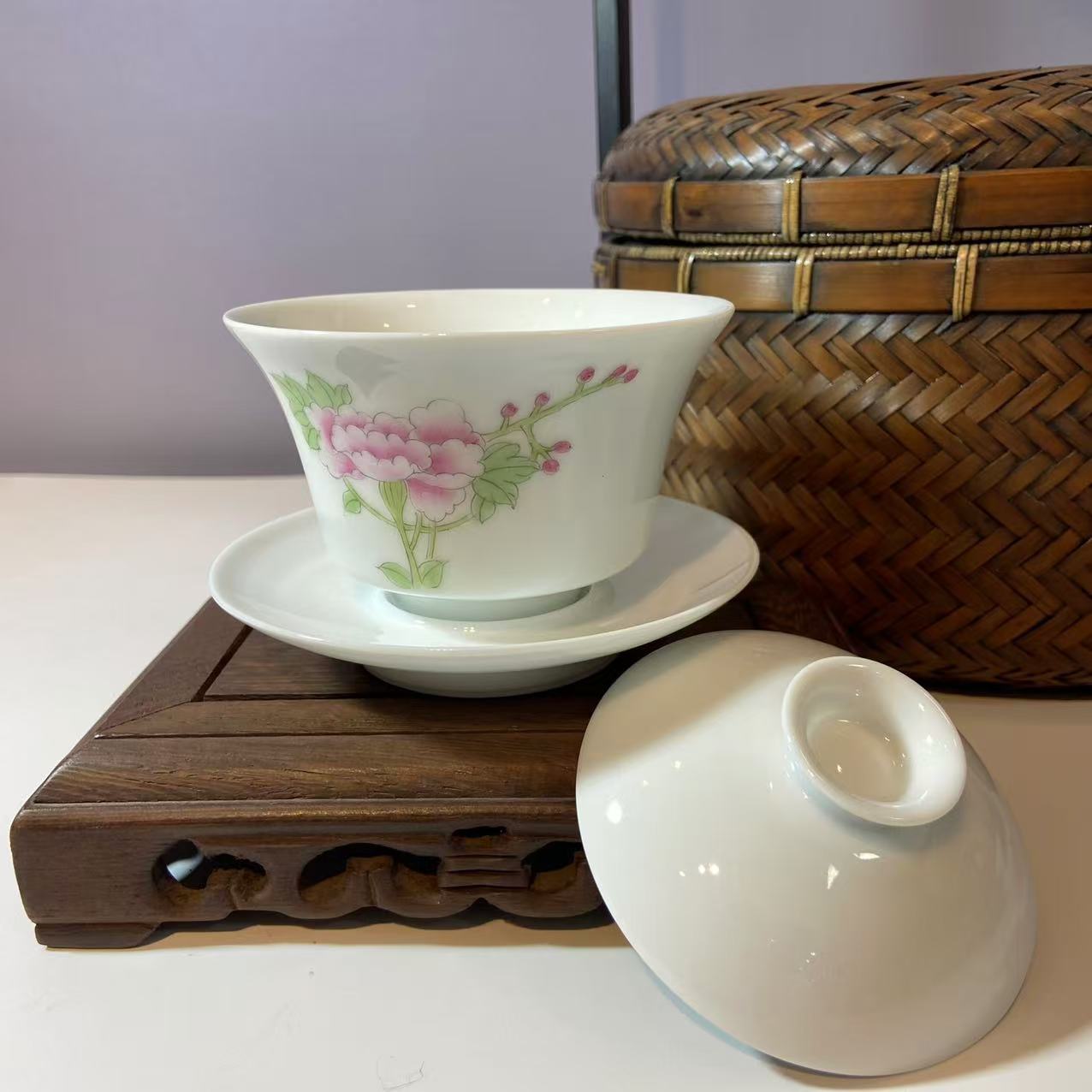 首页 / 茶器 / 盖碗系列 / 花卉三才盖碗(高:10.6cm 容量:220ml)