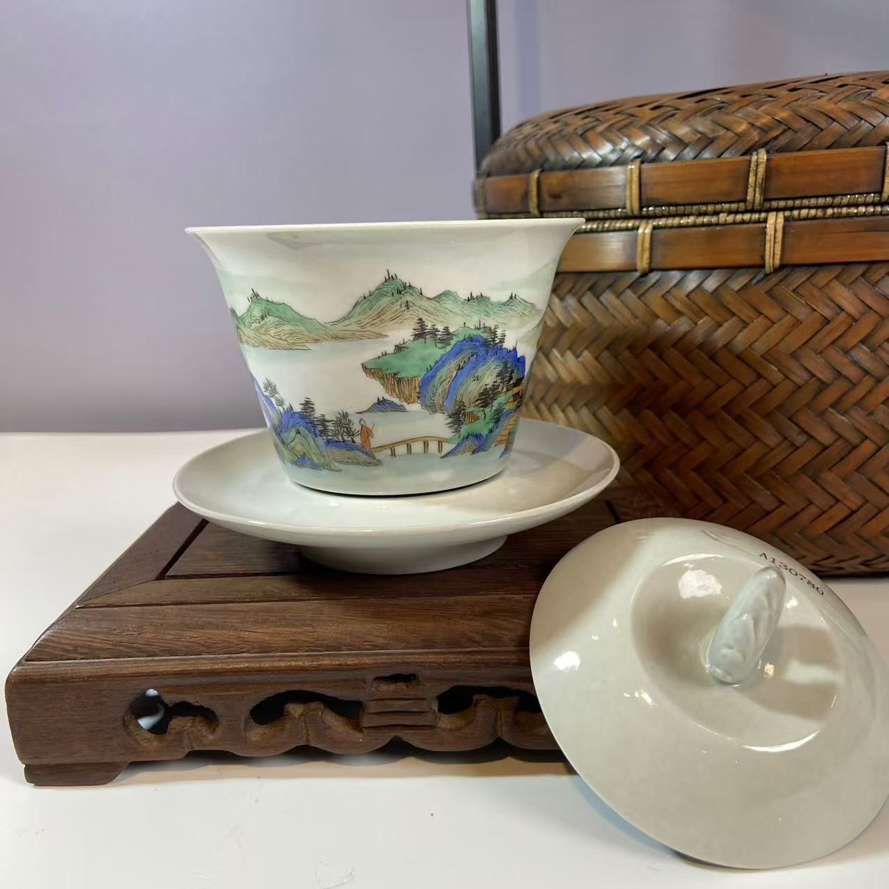 首页 / 茶器 / 盖碗系列 / 江山三才盖碗(高11.8cm 容量:175ml)