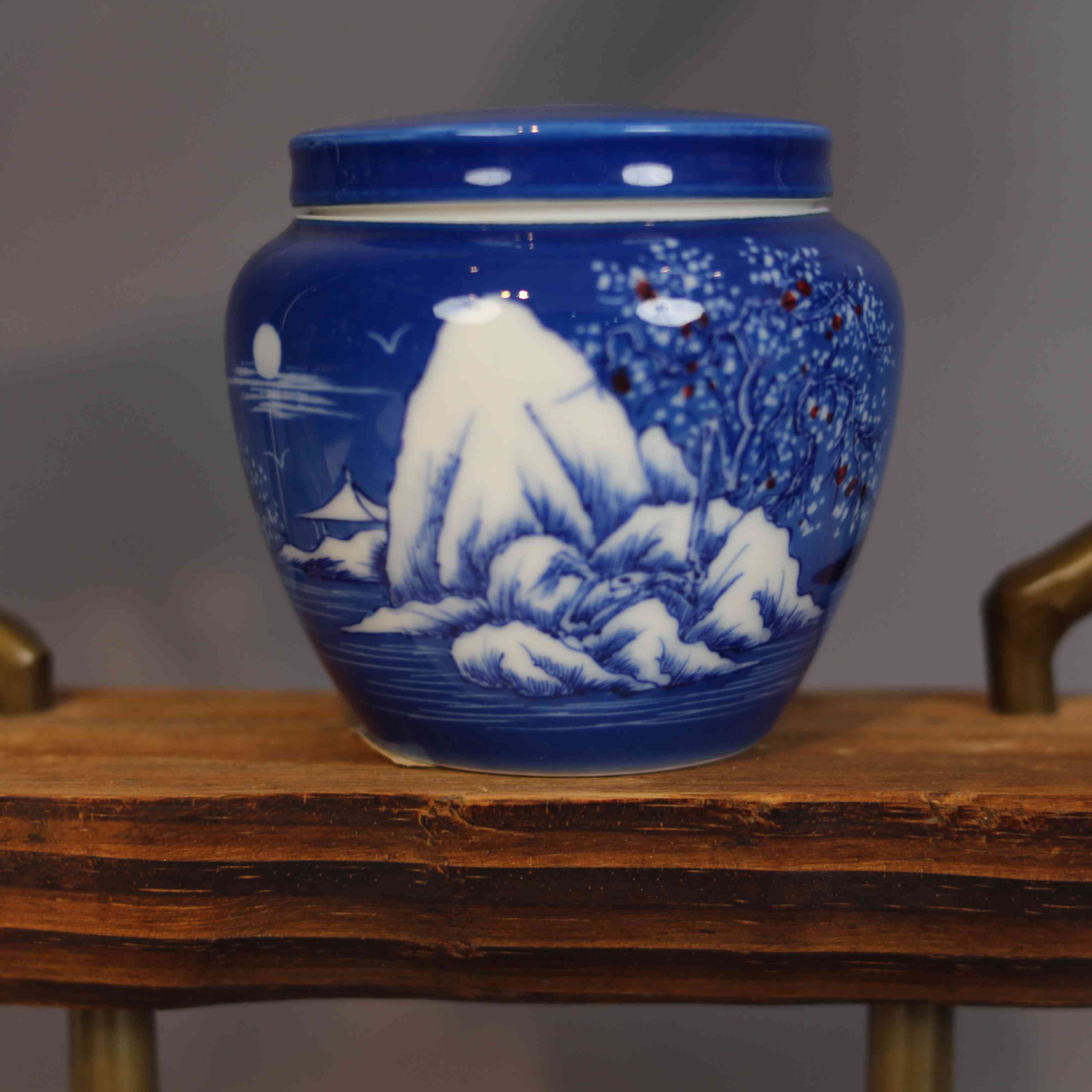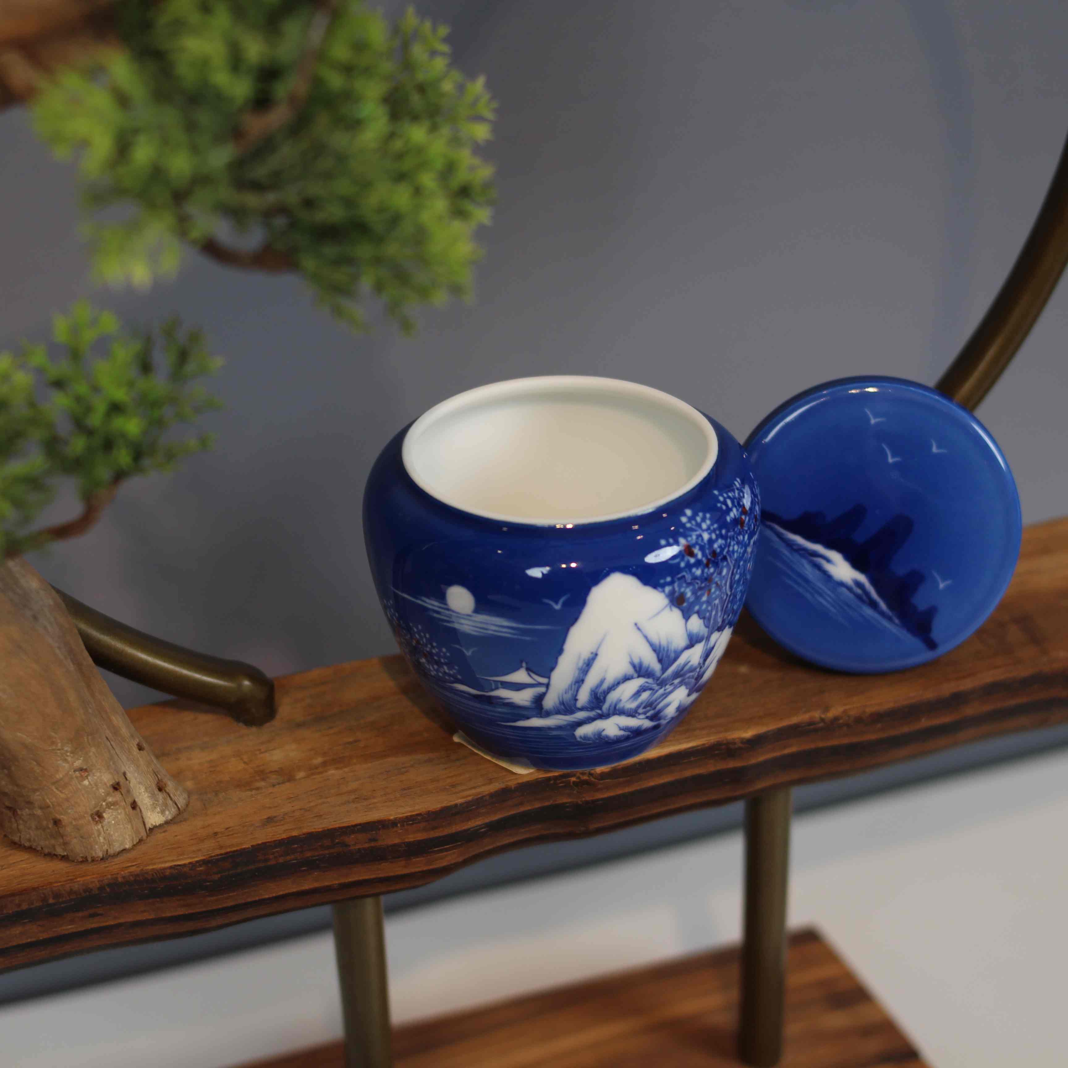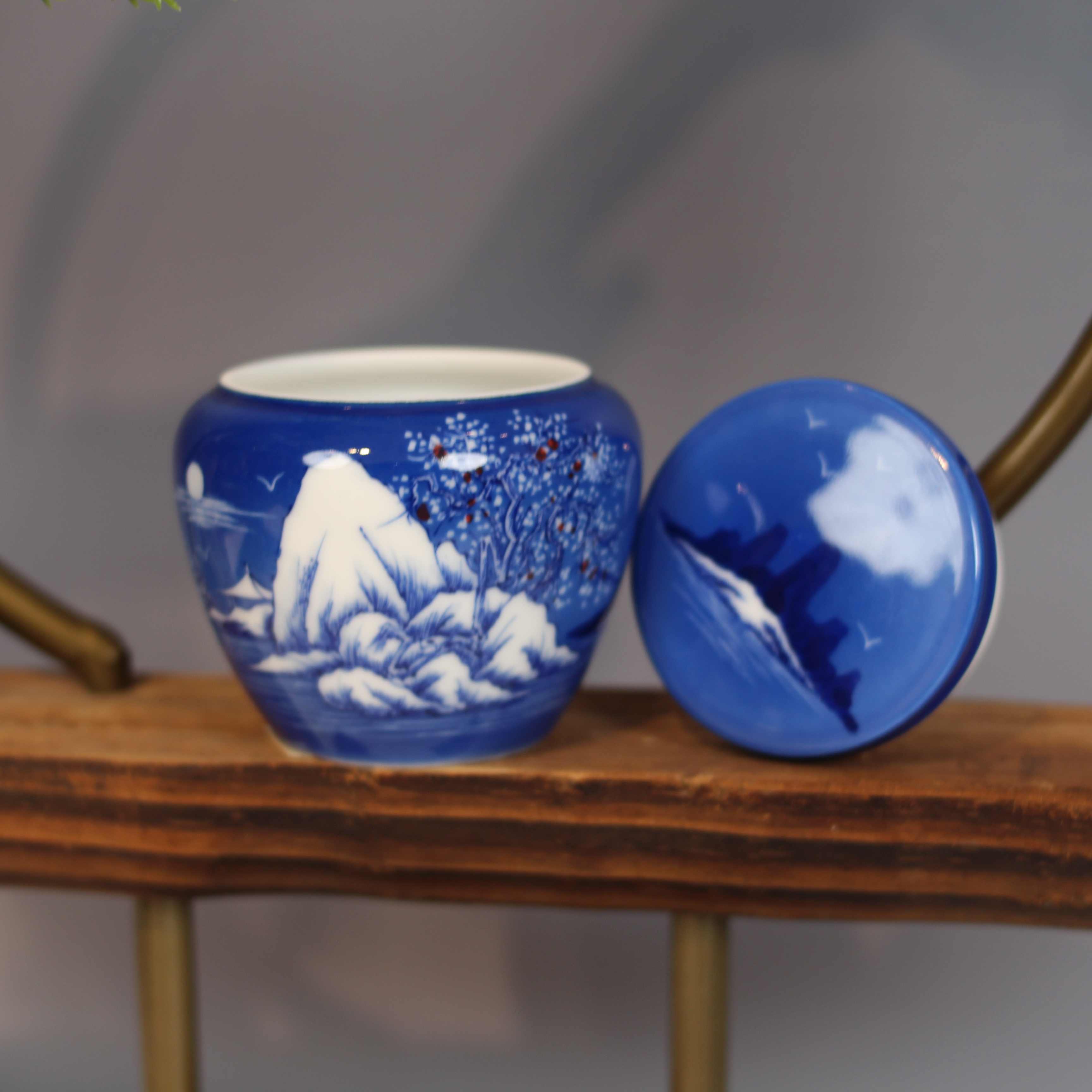 首页 / 茶器 / 茶配系列 / 青花混水雪景茶叶罐