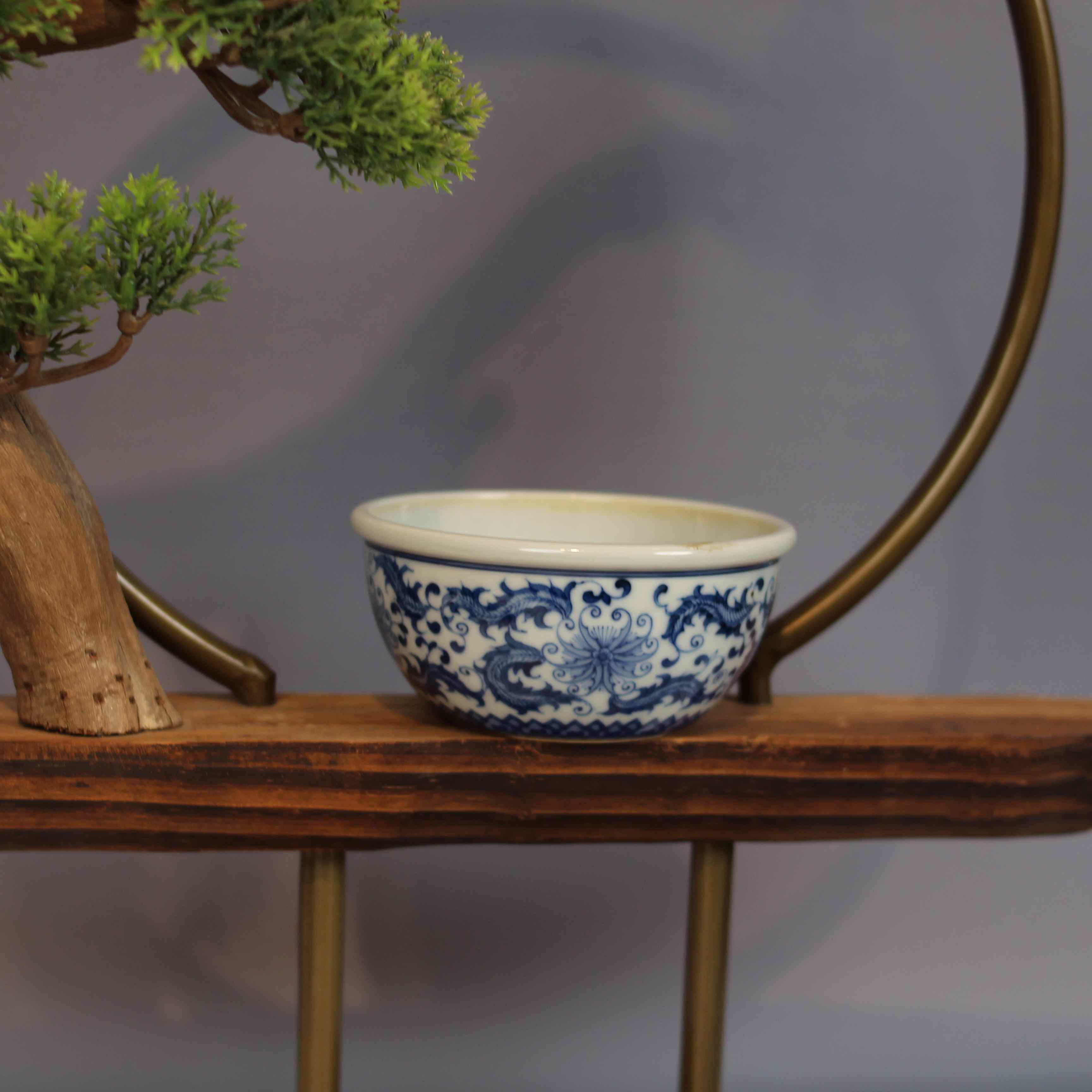 30元3串陶瓷吊坠这款凤尾杯是青花瓷制品,在设计与工艺上展现出独特魅力: 外观造型:杯口圆润,杯身较为敦实,整体线条流畅。其高度适中,方便持握和饮用 。 纹饰图案:杯身外壁以经典的蓝白配色绘制图案,主体纹饰是两条栩栩如生的龙,龙身矫健,姿态灵动,周围辅以卷曲的花纹和花卉图案,充满了传统中式美学韵味 。靠近杯底部分还有类似凤尾形状的几何纹饰,这可能也是其被称为“凤尾杯”的原因之一,纹饰层次丰富,布局合理,具有很强的装饰性。 材质工艺:选用了细腻的瓷土作为原料,经过高温烧制后,瓷质坚硬且致密,表面的白釉温润如玉,青花图案发色纯正,说明在烧制工艺上达到了较高的水准,绘画工艺精湛,线条流畅自然。 使用场景与文化寓意:作为茶具,适合用来品茗各类茶品,为饮茶过程增添一份典雅的氛围。在中国传统文化中,龙是祥瑞的象征,代表着权威、尊贵与吉祥,所以这款杯子不仅具有实用价值,还蕴含着美好的祝福,无论是自用还是作为礼品馈赠他人,都十分合适。