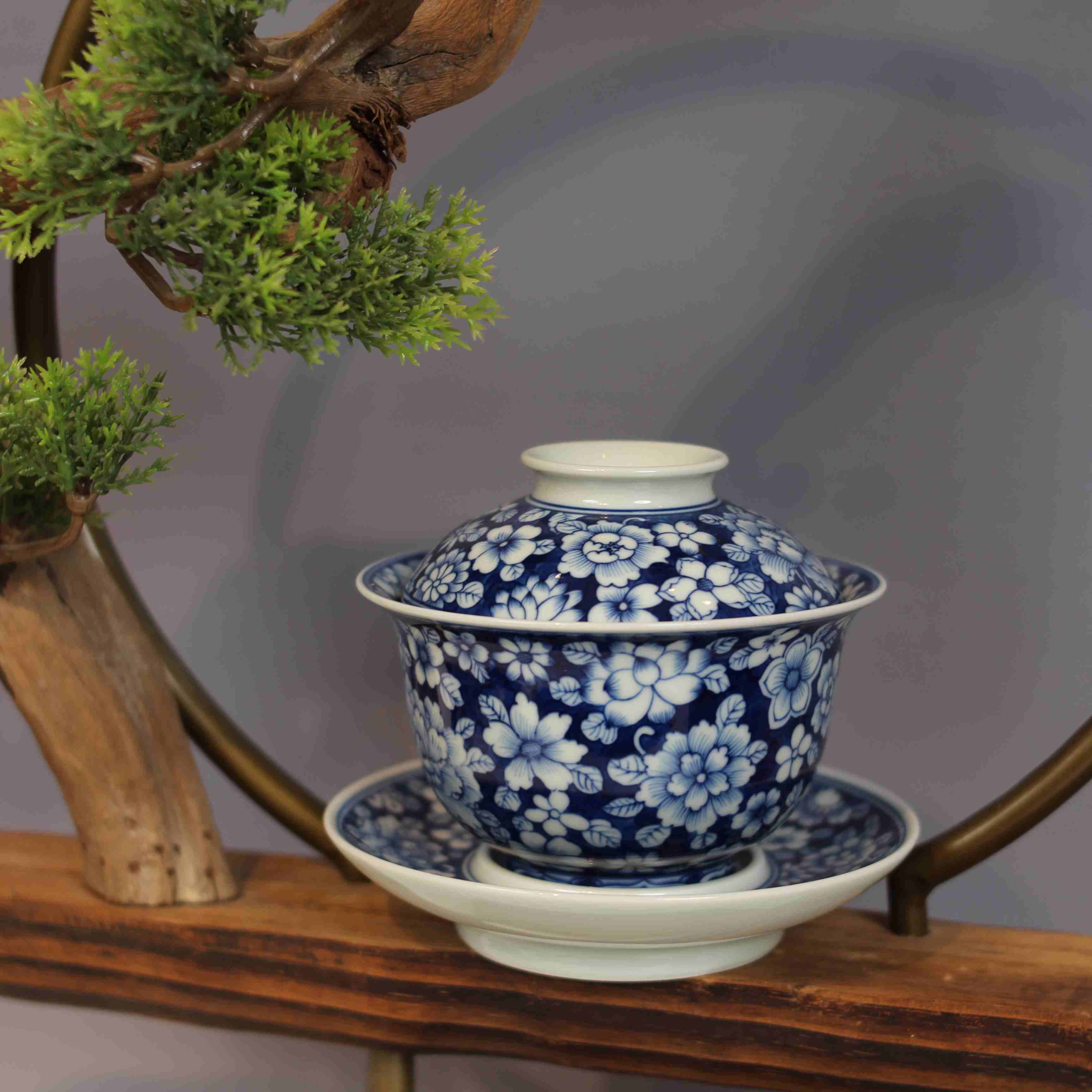 30元3串陶瓷吊坠造型设计 整体构造:由碗身、碗盖和碗托三部分组成,这是盖碗经典的构造形式。碗口开阔,碗身线条流畅,微微内收,便于持握;碗盖大小适中,能很好地覆盖在碗口之上,起到保温、防尘以及调节茶汤浓度的作用 ;碗托底部平稳,可稳稳托住碗身,避免烫手,使用起来安全又便捷。 尺寸比例:各部分尺寸协调,整体造型端庄大方,比例恰到好处,既符合人体工程学原理,方便操作,又在视觉上给人以和谐优美的感受。 装饰图案 主题纹饰:盖碗通体布满了丰富多样的花卉图案,包含牡丹、芍药、菊花等多种花卉,构成了“万花”的主题。这些花卉形态各异,栩栩如生,有的含苞待放,有的肆意盛开,相互映衬,营造出繁花似锦、热闹喜庆的氛围。 色彩搭配:以深蓝色的青花为底色,白色的花卉图案在其上显得格外醒目,蓝白两色对比鲜明却又和谐统一,展现出青花瓷独特的艺术魅力,给人一种清新雅致又不失华丽的美感。 材质与工艺 材质:选用上乘的瓷土,经过精细加工和高温烧制,瓷质细腻坚硬,胎体轻薄且均匀。碗身、碗盖和碗托内外都施有洁白莹润的釉料,釉面光滑平整,呈现出柔和的光泽,质感极佳。 工艺:采用精湛的青花绘画工艺,画师凭借高超的技艺,用细腻流畅的笔触勾勒出每一朵花、每一片叶的轮廓,再通过青花料的浓淡变化表现出花卉的立体感和层次感。烧制过程严格把控温度和时间,使得青花图案发色稳定,色彩鲜艳,经久不褪色,彰显出高超的制瓷水准。 文化寓意与使用场景 文化寓意:在中国传统文化中,花卉象征着美好与吉祥,多种花卉组合的“万花”图案寓意着繁荣昌盛、幸福美满,表达了人们对美好生活的向往和祝福。使用这款万花盖碗品茶,不仅是一种物质享受,更能感受到传统文化的深厚内涵。 使用场景:适用于多种场合,如个人闲暇时光独自品味茶香,享受宁静惬意的时刻;也适合在茶友聚会、商务洽谈等社交活动中使用,展现主人的高雅品味;同时,它也是一份极具特色的礼品,可赠送给喜爱茶文化或对传统文化感兴趣的亲朋好友。