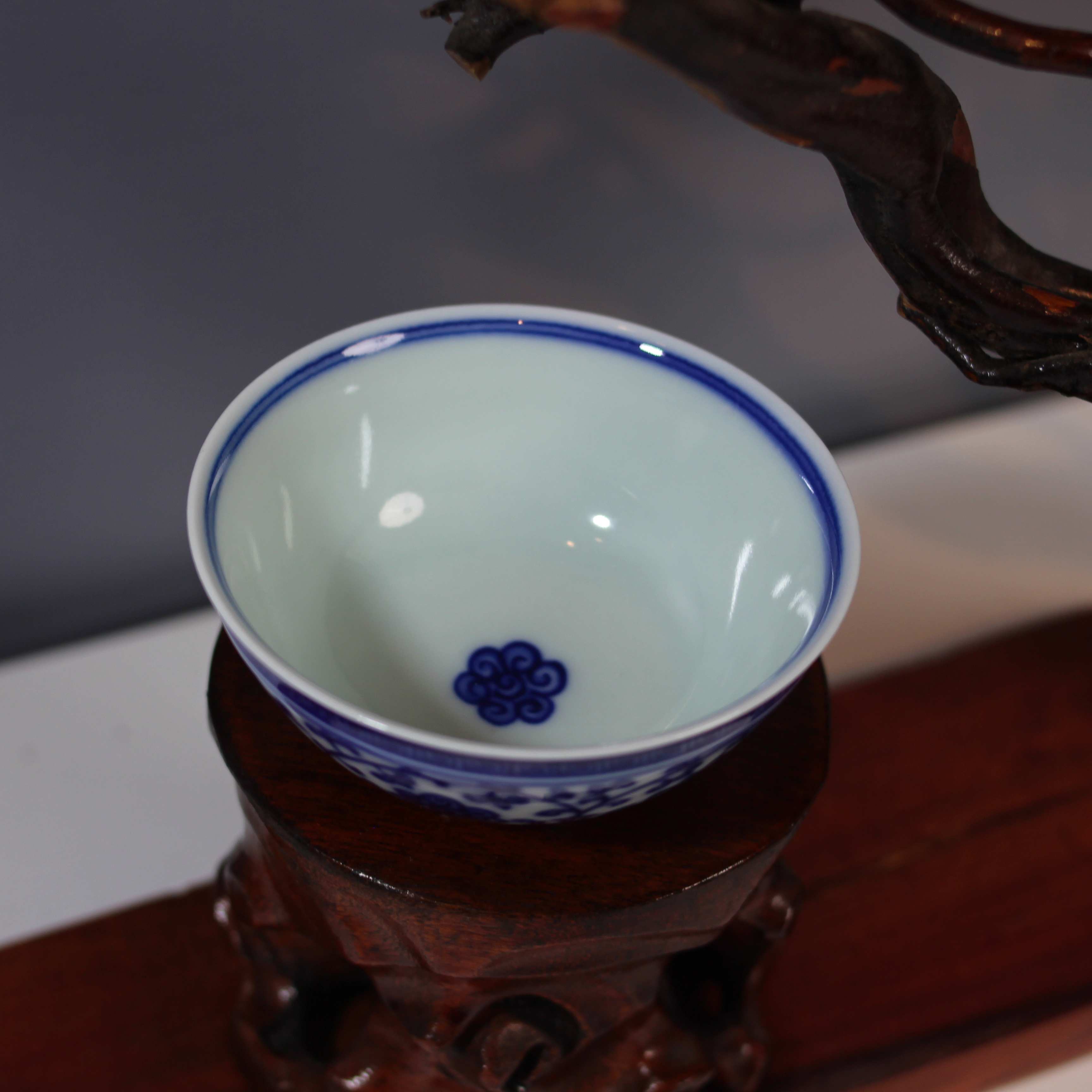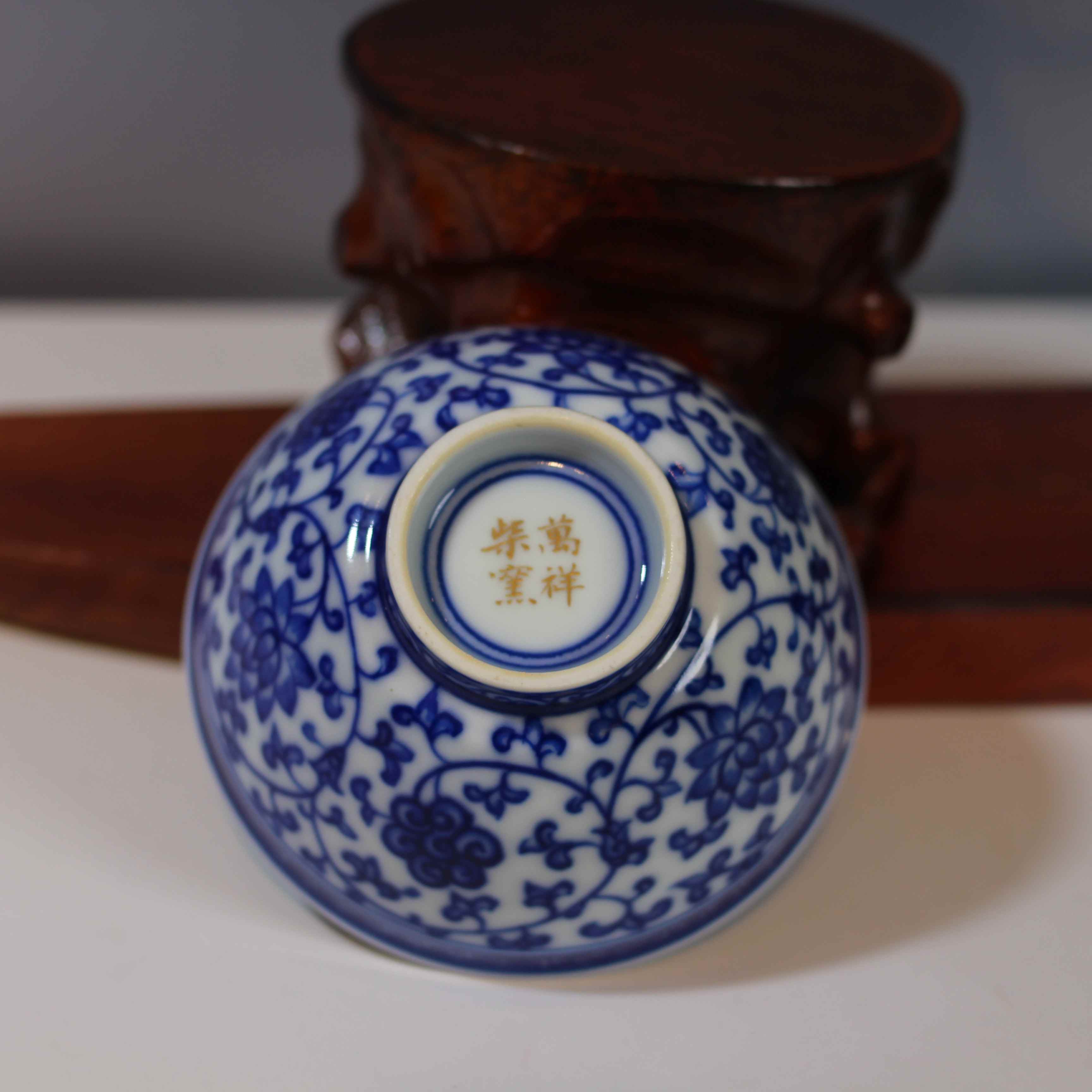 首页 / 茶器 / 主人杯系列 / 柴窑青花杯(口:8.7cm 高:4.7cm 容量:75ml)