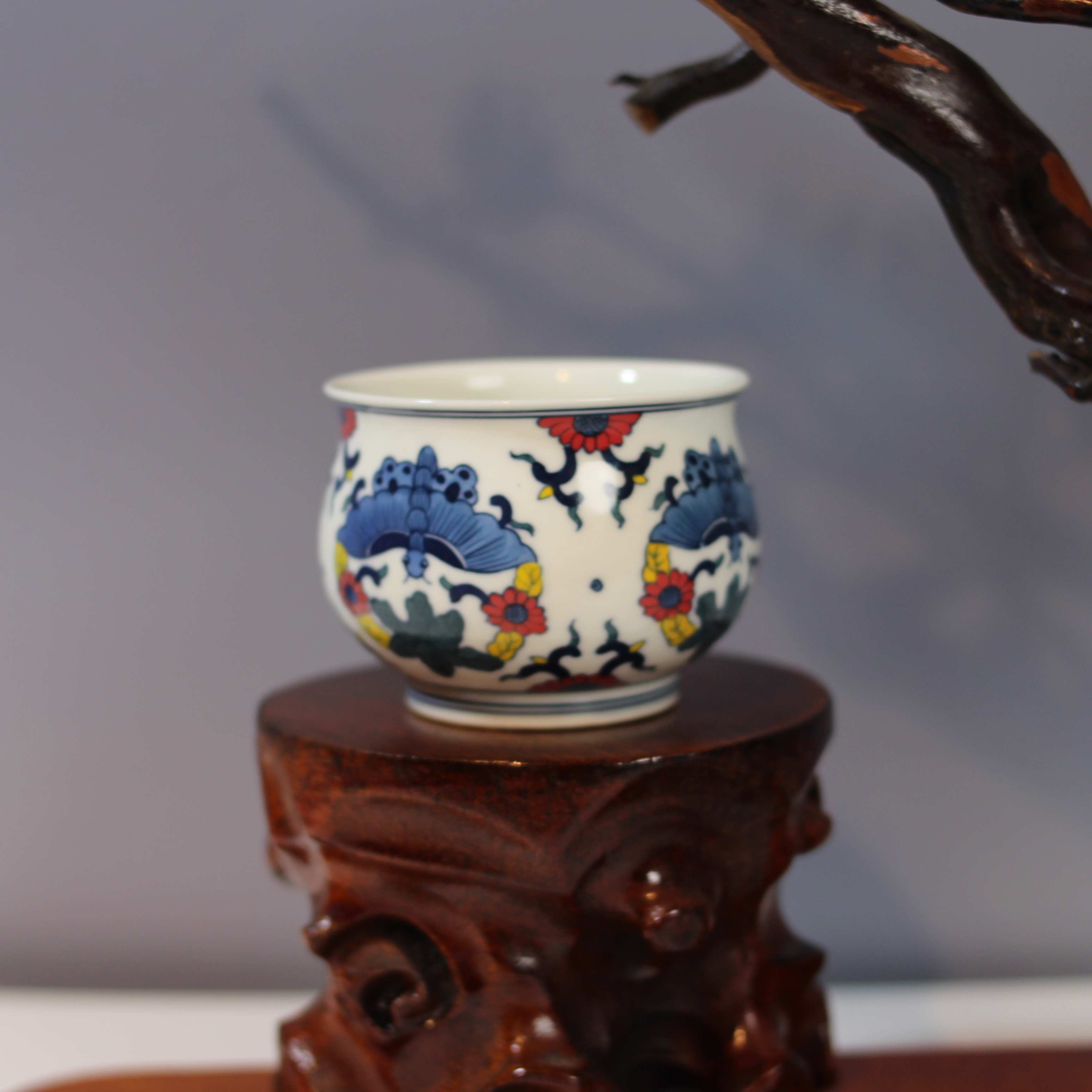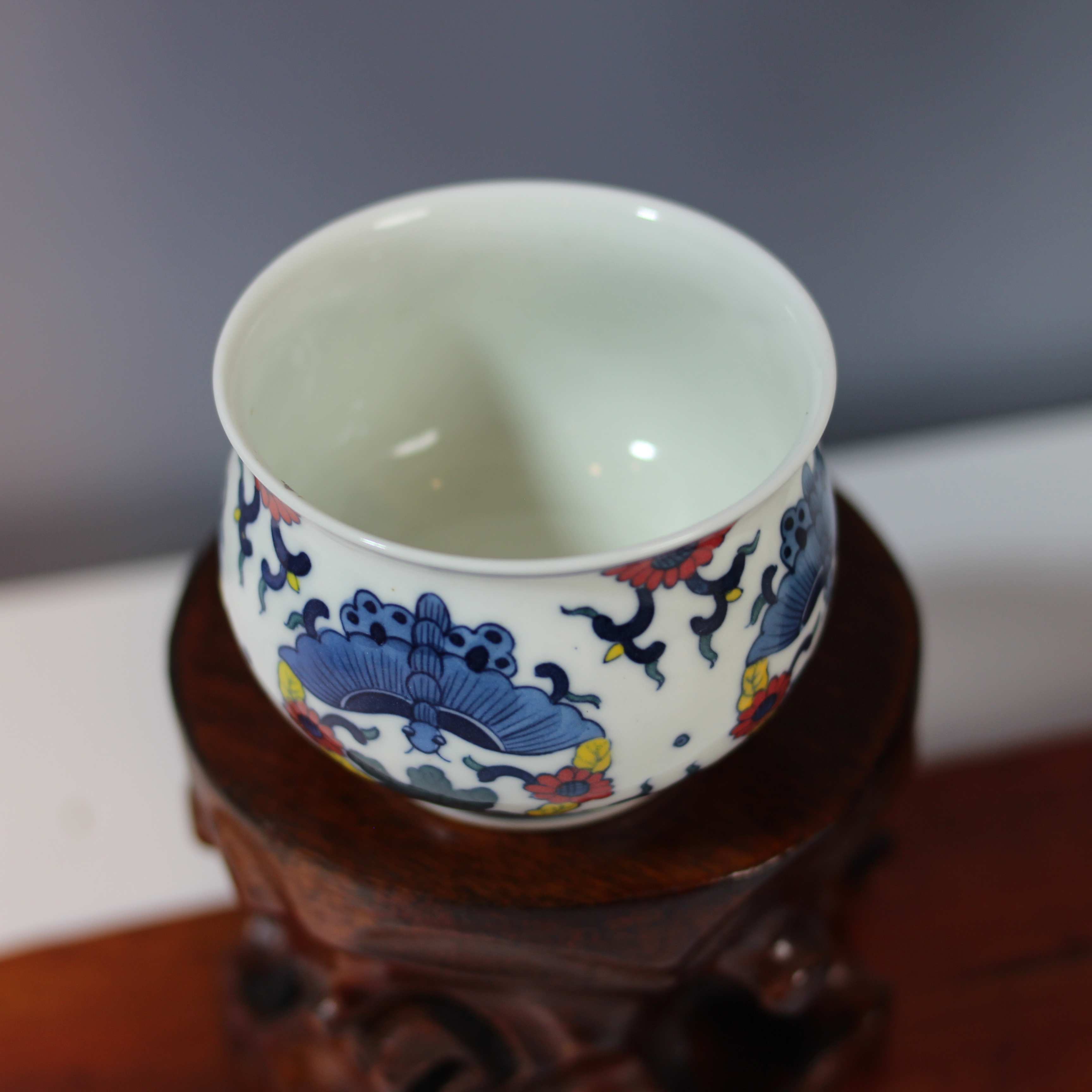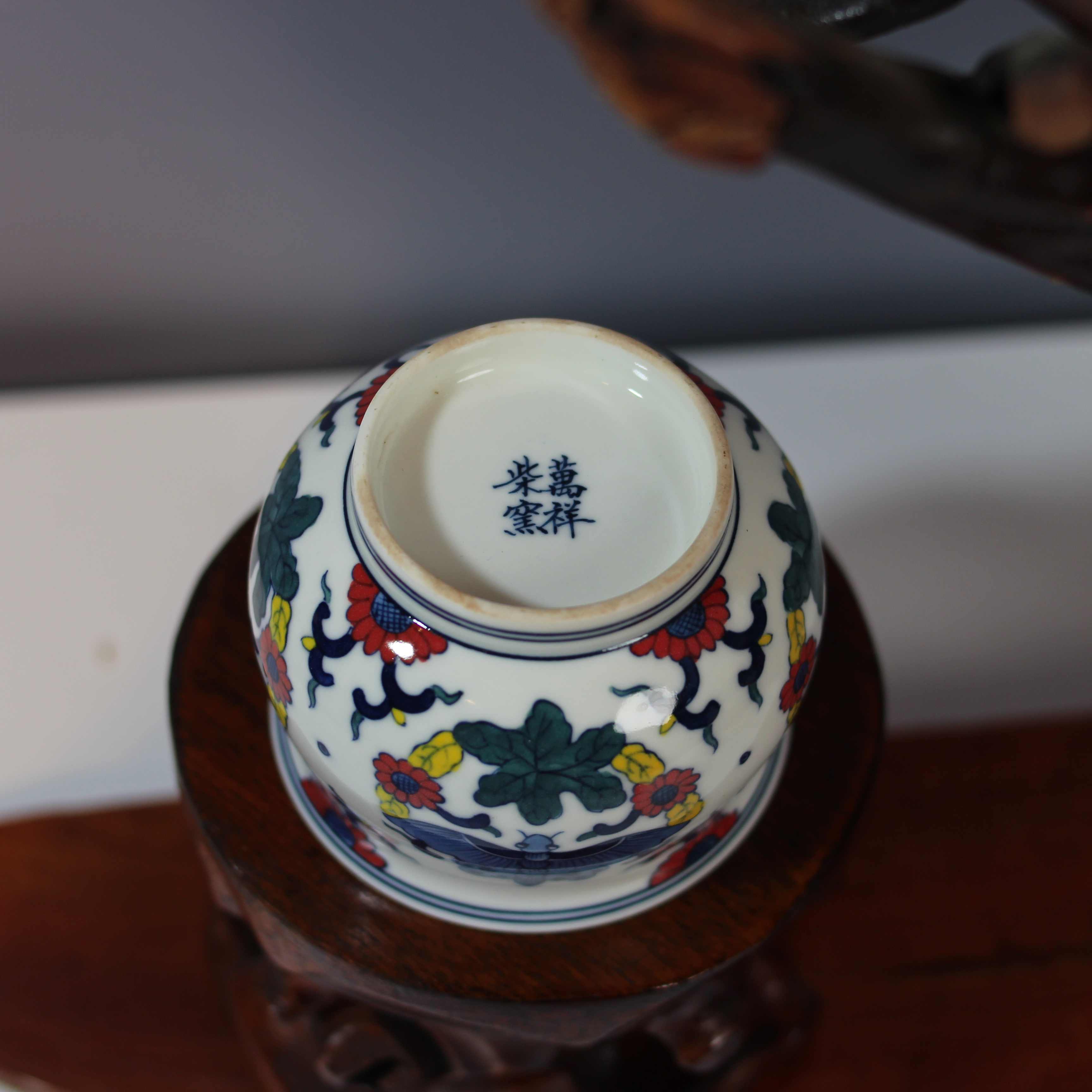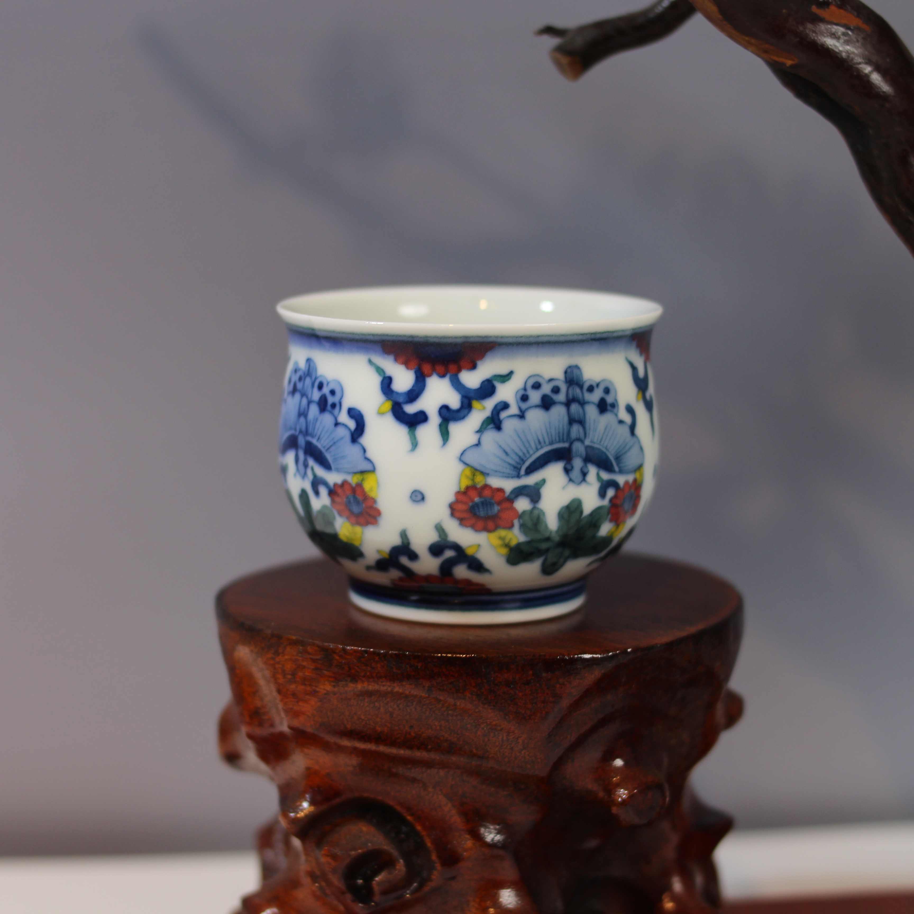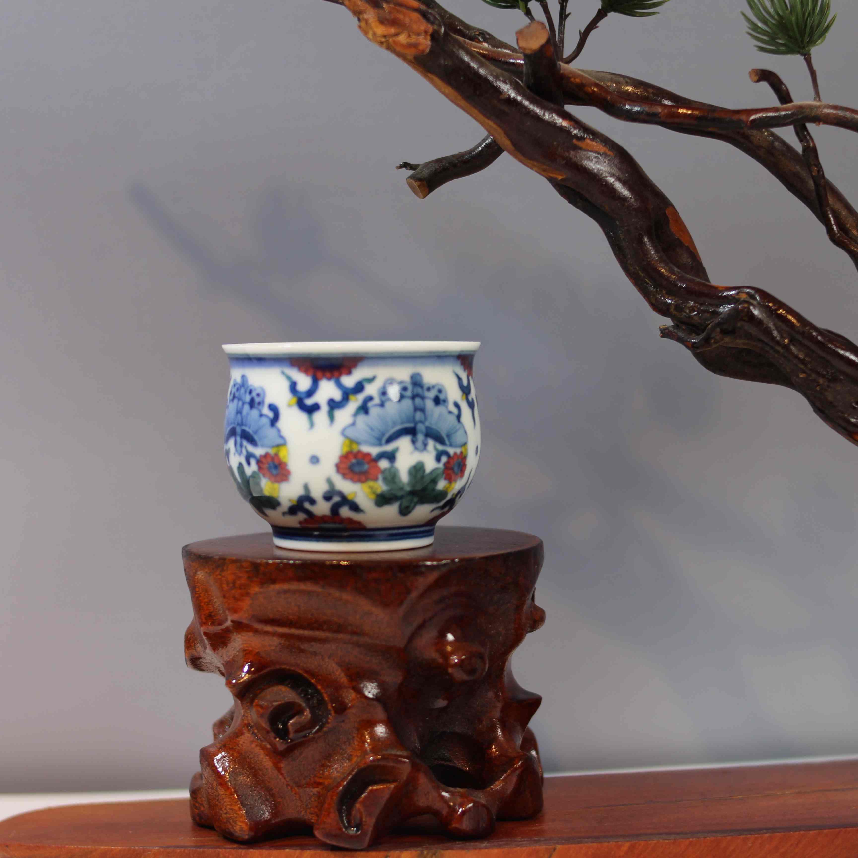 只斗彩杯,属于中国传统瓷器中的名贵品种。斗彩是一种结合了釉下青花和釉上彩色的装饰技法 。