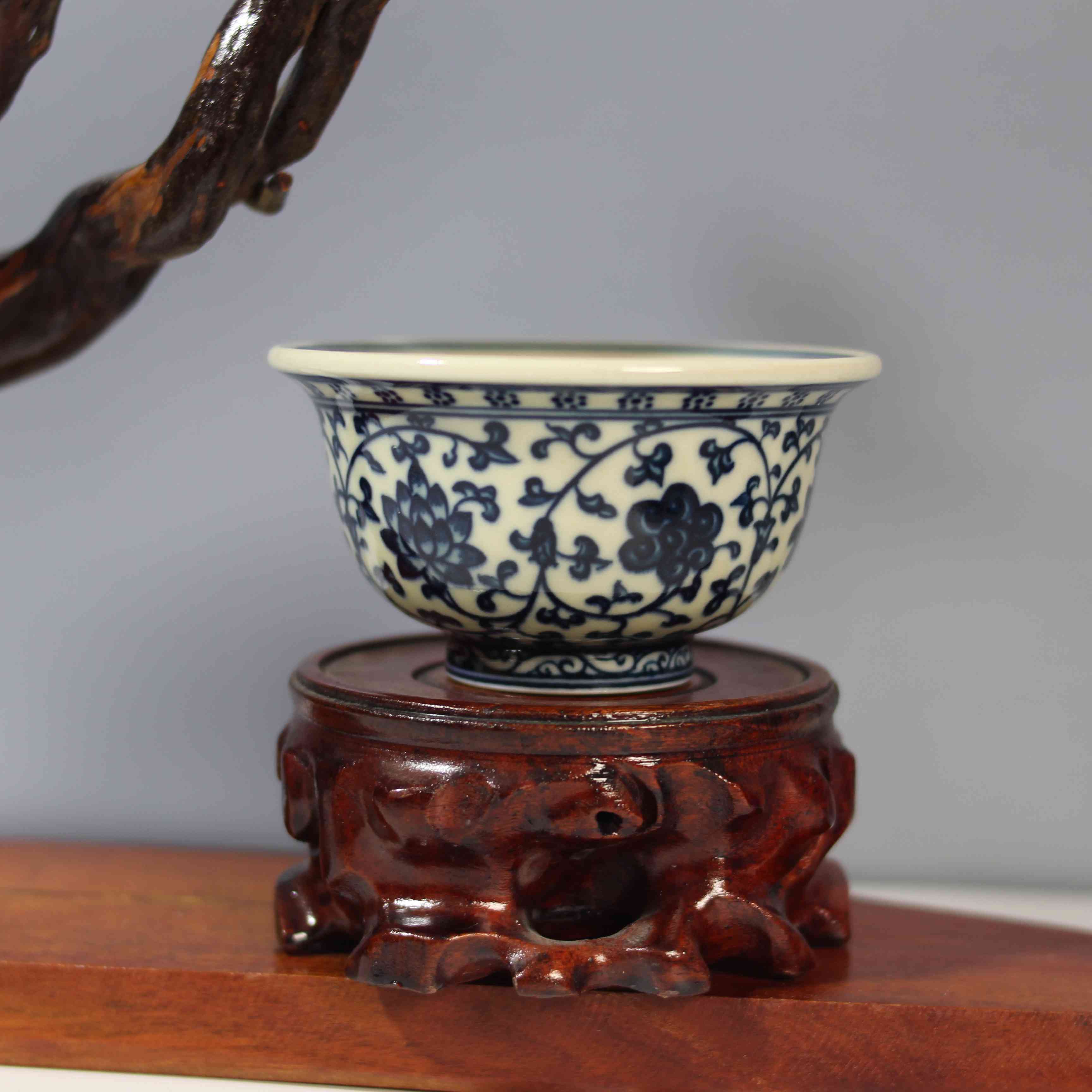 首页 / 茶器 / 主人杯系列 / 青花柴窑杯(口:9.7cm 高:5.4cm)