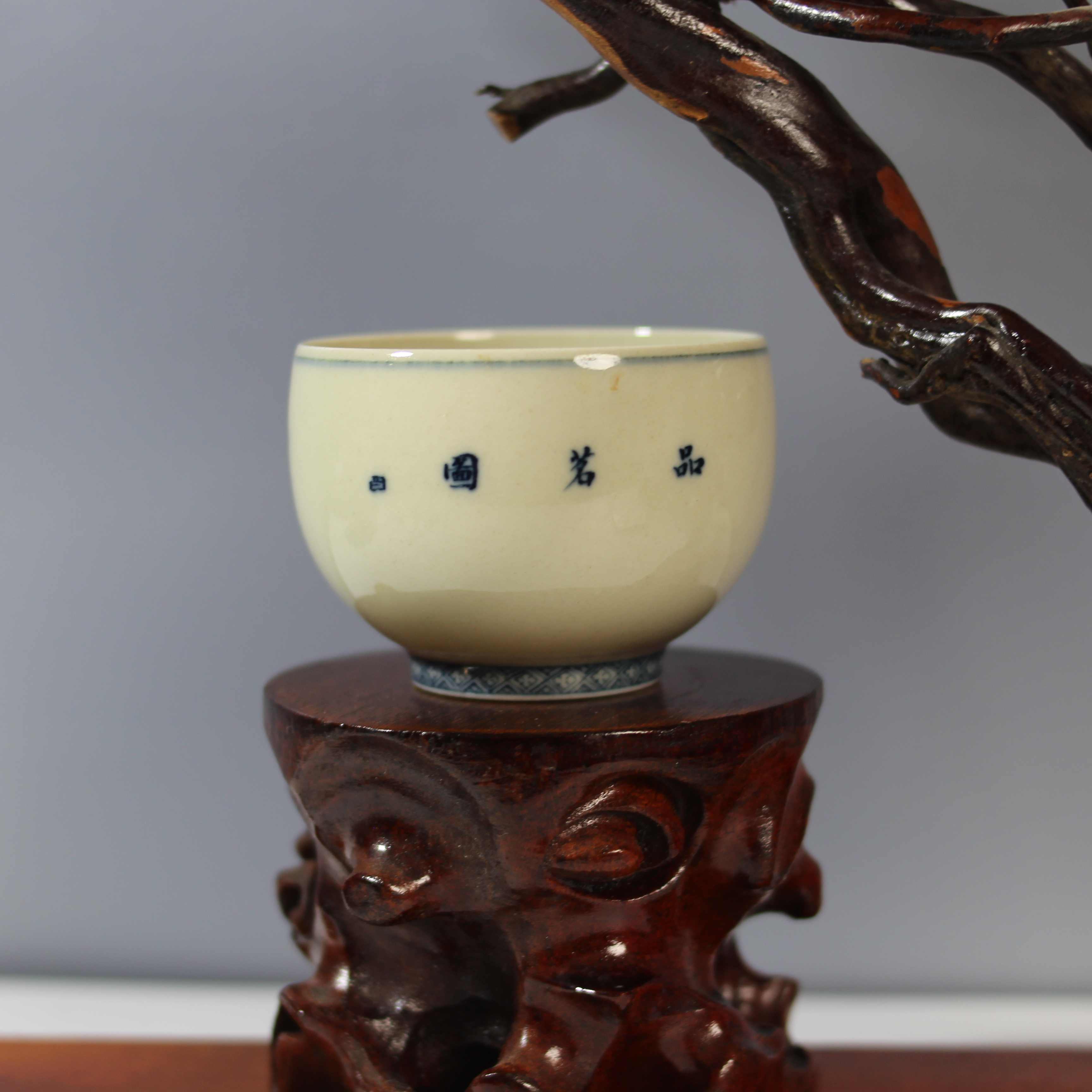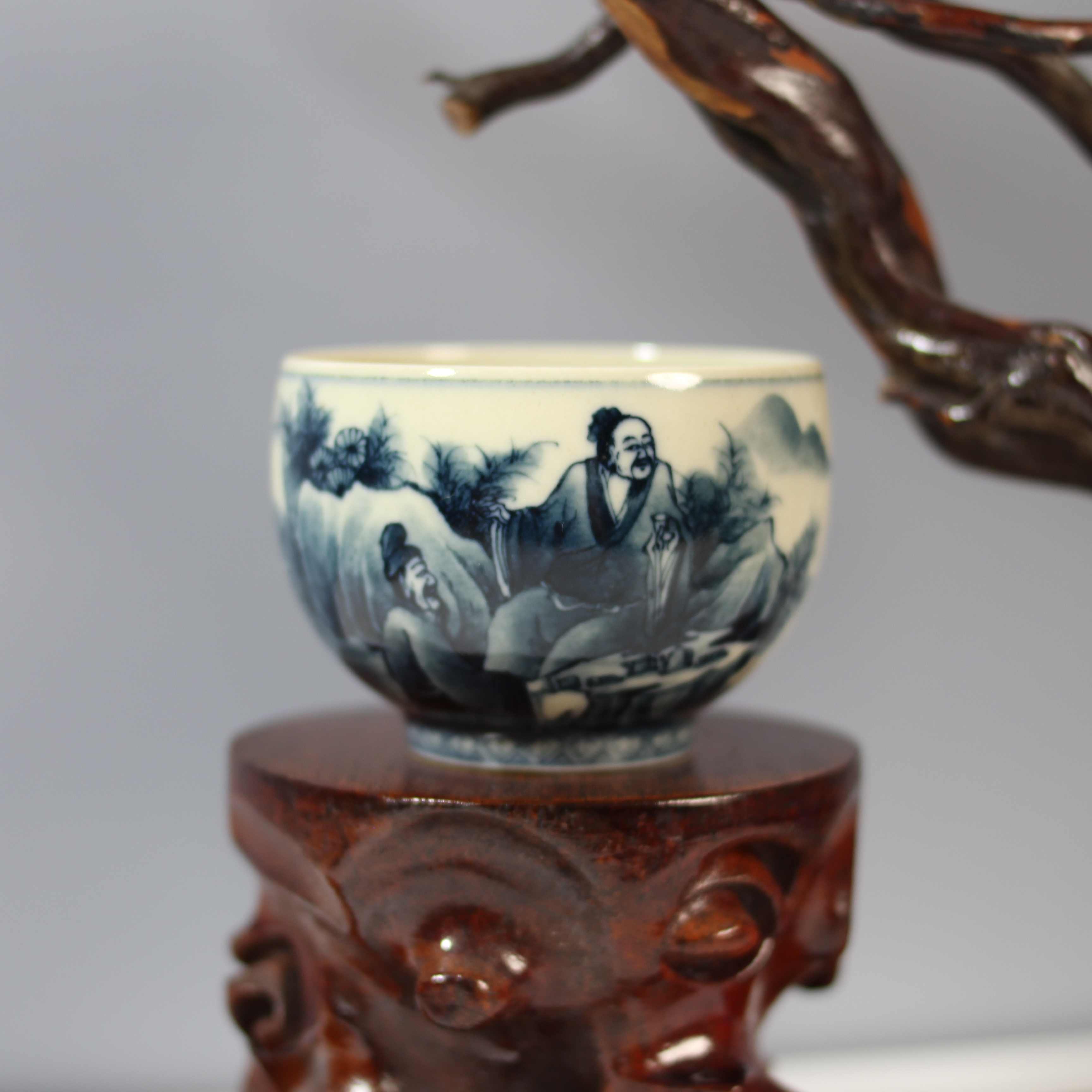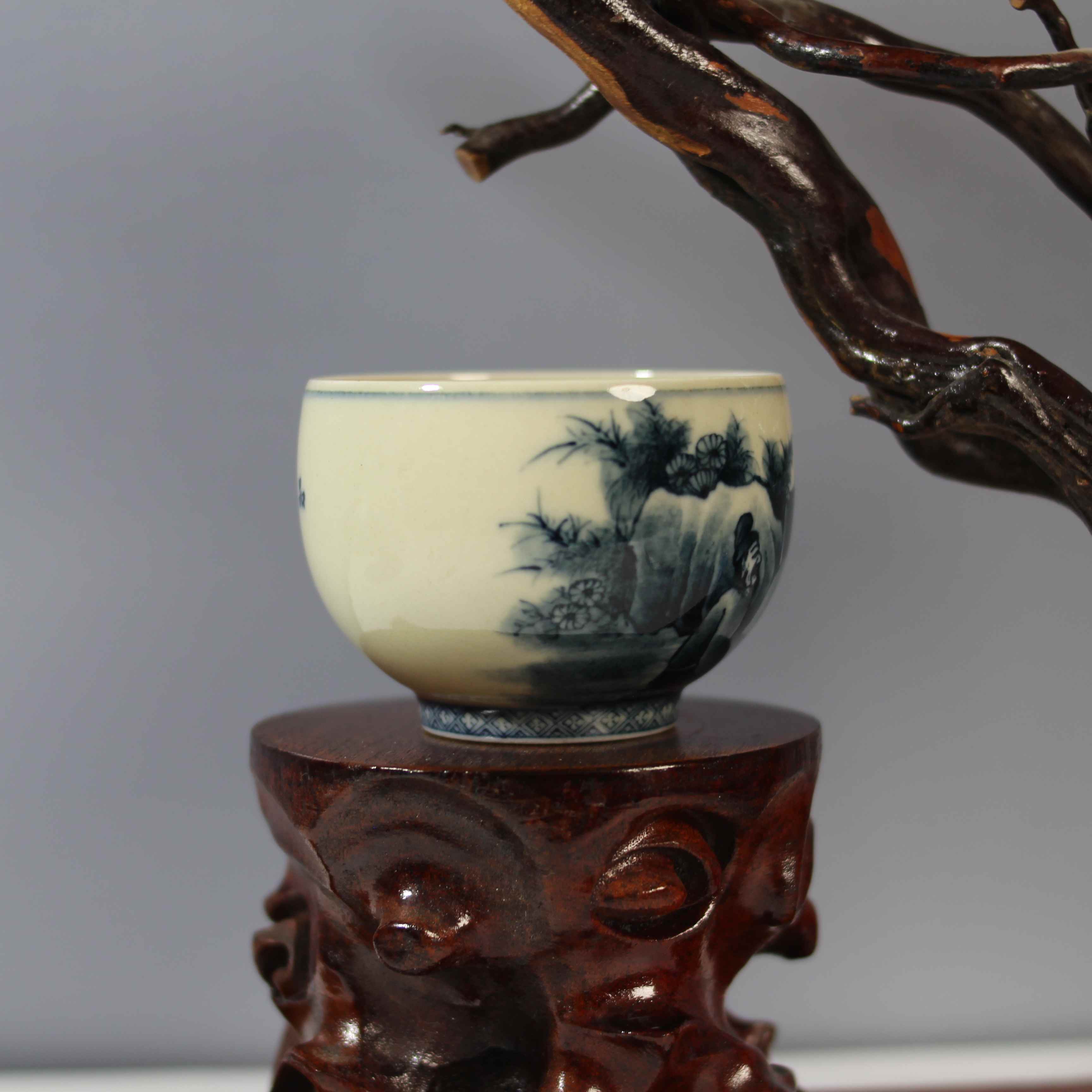 首页 / 茶器 / 主人杯系列 / 青花柴窑杯(口:7.5cm 高:5.6cm 容量:125ml)