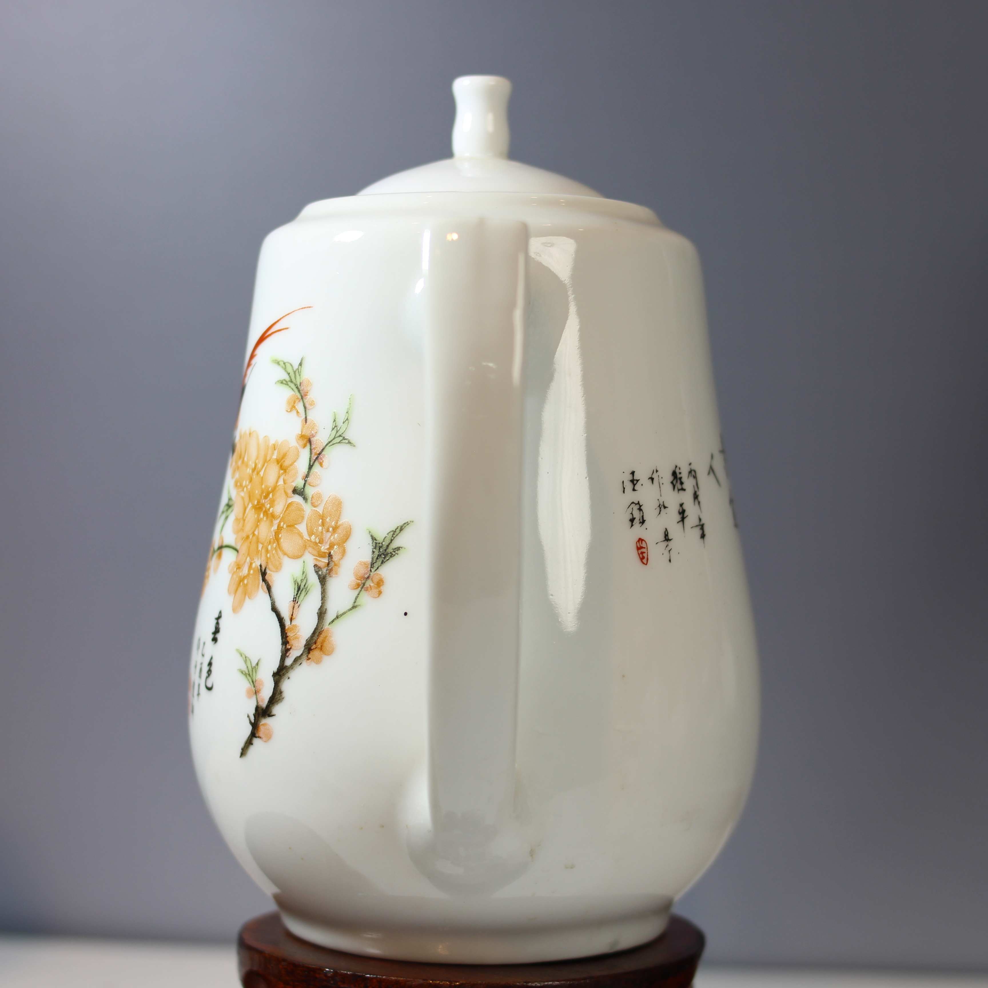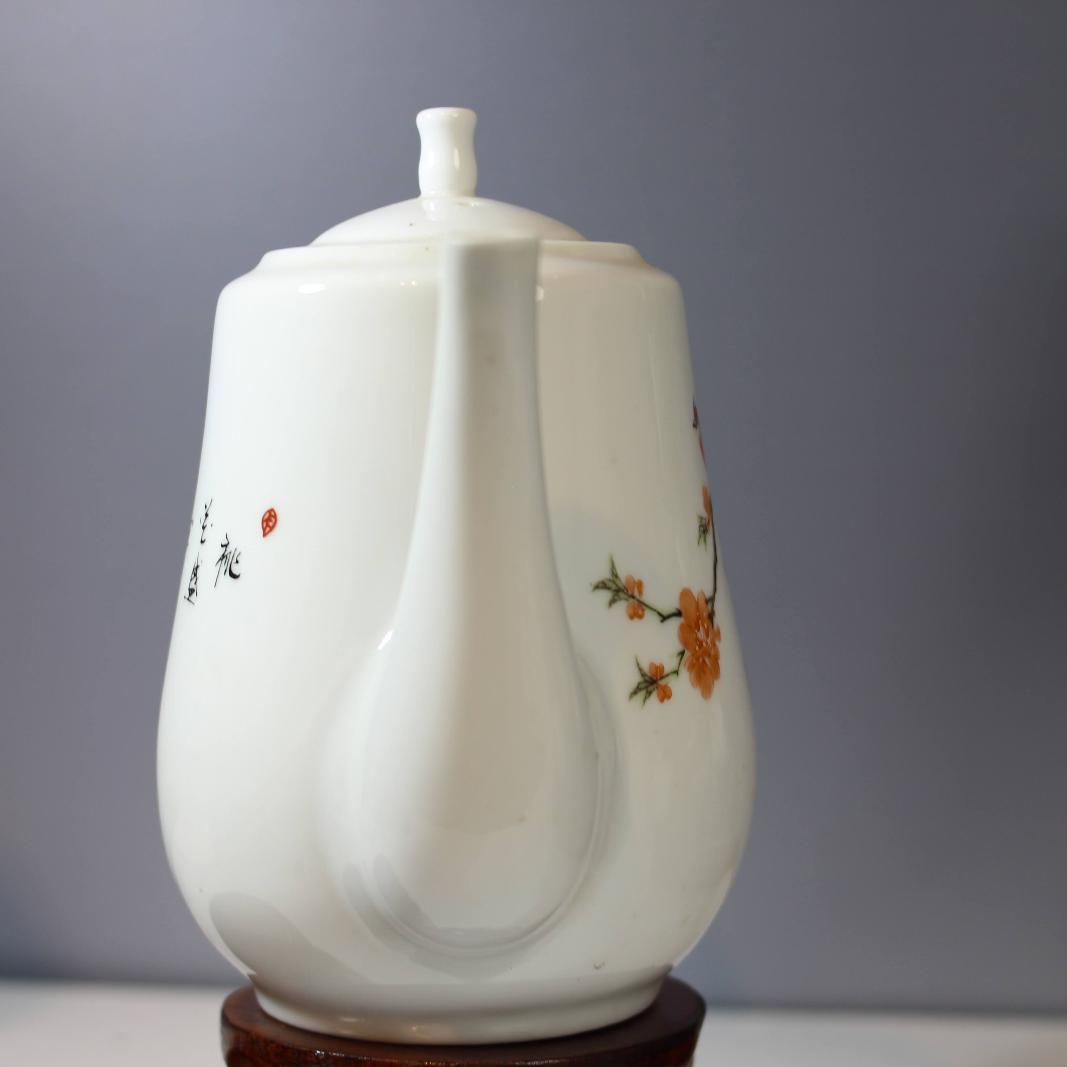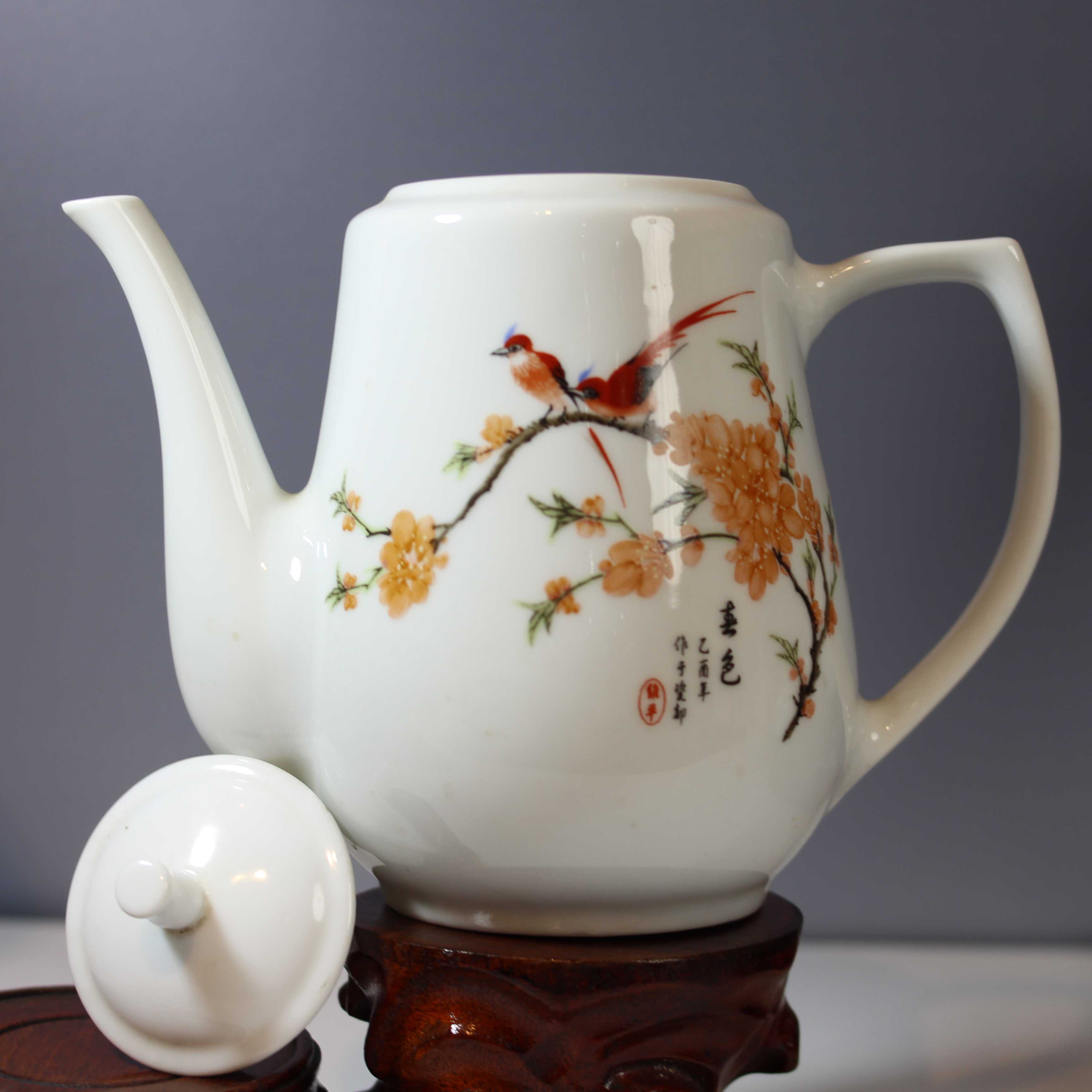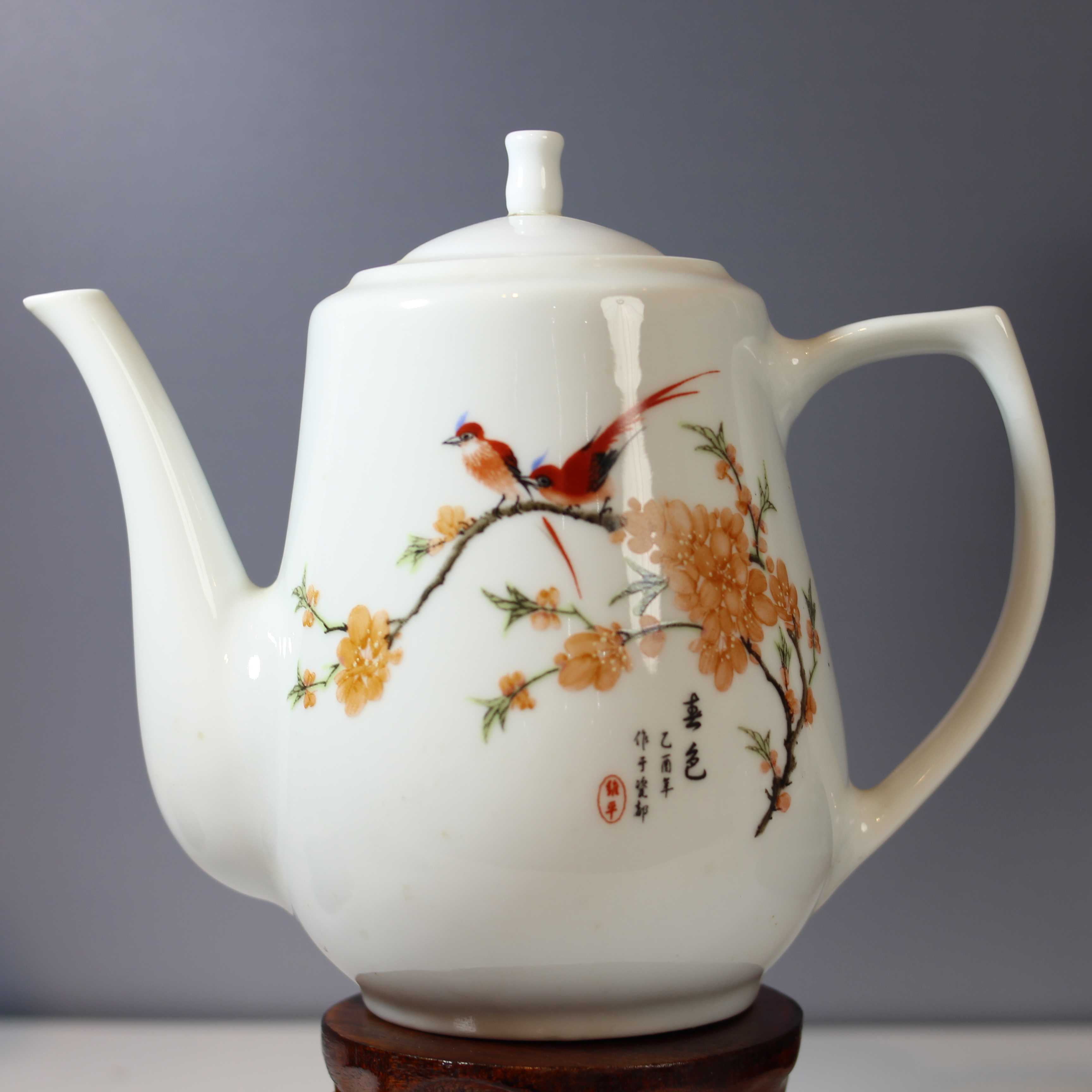 30元3串陶瓷吊坠这把桃花壶造型典雅,壶身呈白色,质感细腻光滑,有着温润如玉的光泽。 壶身一侧绘有精美的画面,橙黄色的桃花在枝头绽放,花朵描绘细腻,栩栩如生,展现出盎然的生机。两只色彩艳丽的鸟儿栖息在花枝上,羽毛色彩丰富,形态灵动可爱,仿佛下一秒就会展翅飞翔 。画面旁题写有“春色”字样,还有落款和红色印章,增添了艺术气息。 壶身另一侧则书写有书法文字,字迹工整,墨色浓淡相宜,与绘画相得益彰,是与桃花相关的诗句或吉祥话语,进一步丰富了文化内涵。 从工艺,它采用了釉上彩工艺,将绘画与书法完美融合于陶瓷之上。这把桃花壶兼具实用价值与艺术价值,作为泡茶器具,它能满足日常品茗需求;作为工艺品,其精美的装饰无论是摆放在茶室还是客厅,都能提升空间的雅致格调,也适合作为礼品馈赠亲友,传递美好祝福。