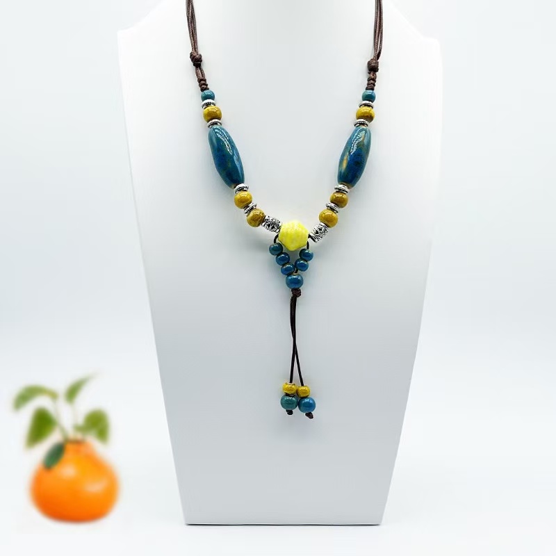 首页 / 文创集市 / 陶瓷首饰 / 景德镇陶瓷项链长款编织毛衣链复古民族风波西米亚项链可调节新款