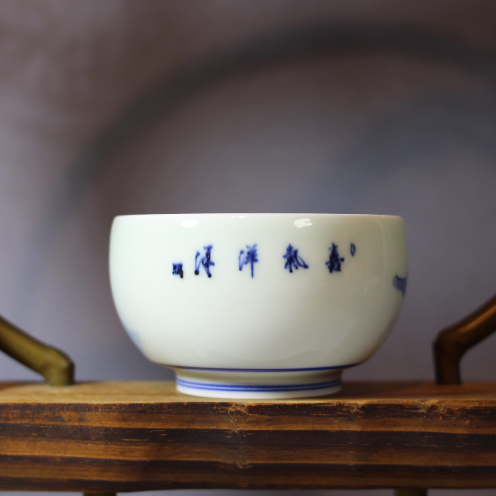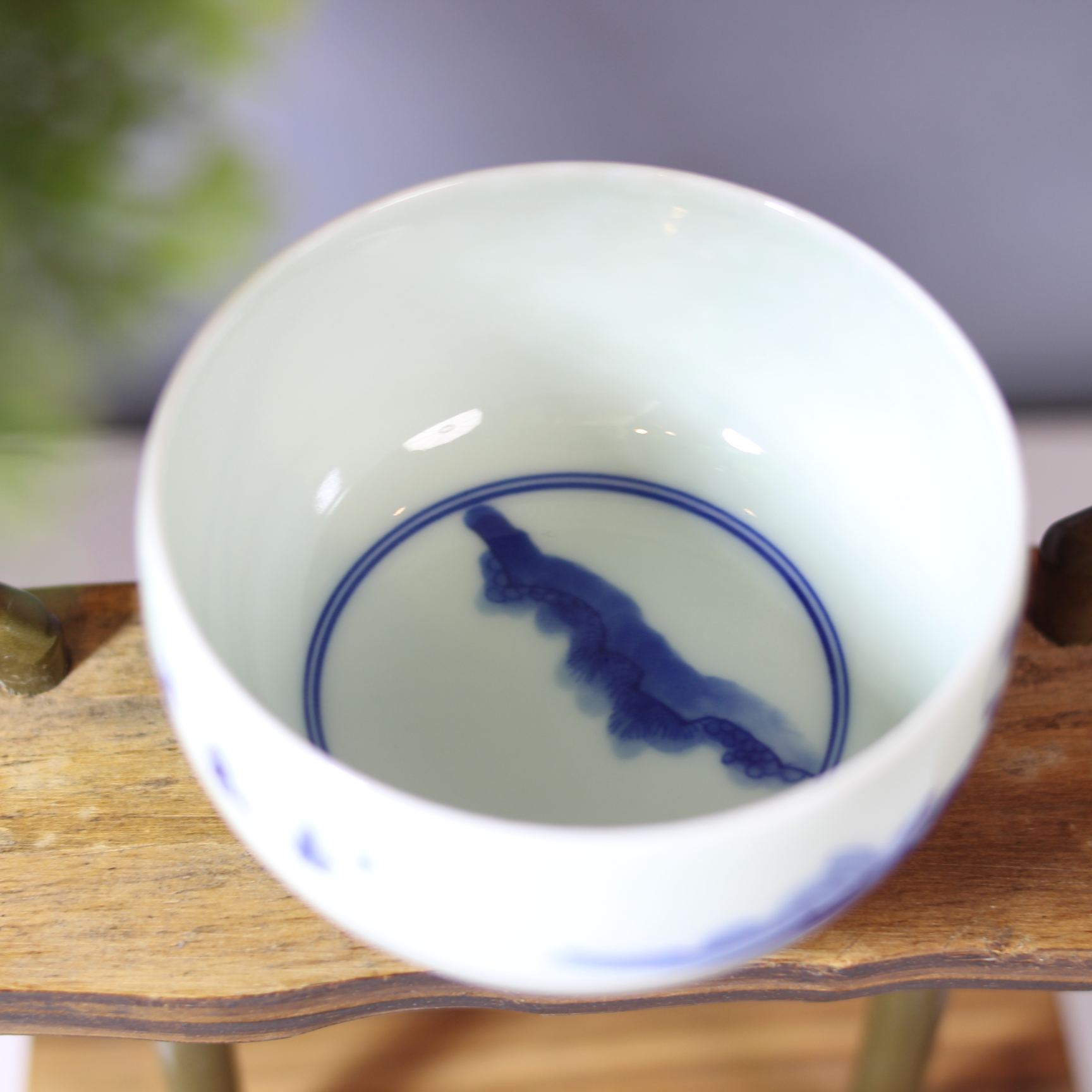 首页 / 茶器 / 主人杯系列 / 青花柴窑杯(口:8.7cm 高:5.3cm 容量:175ml)