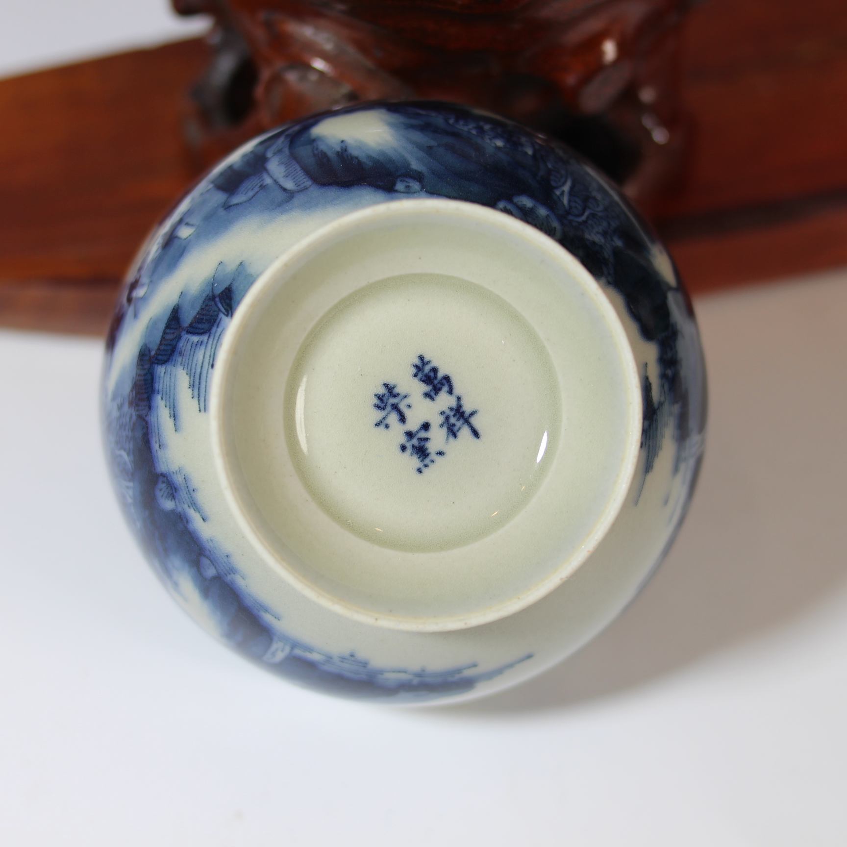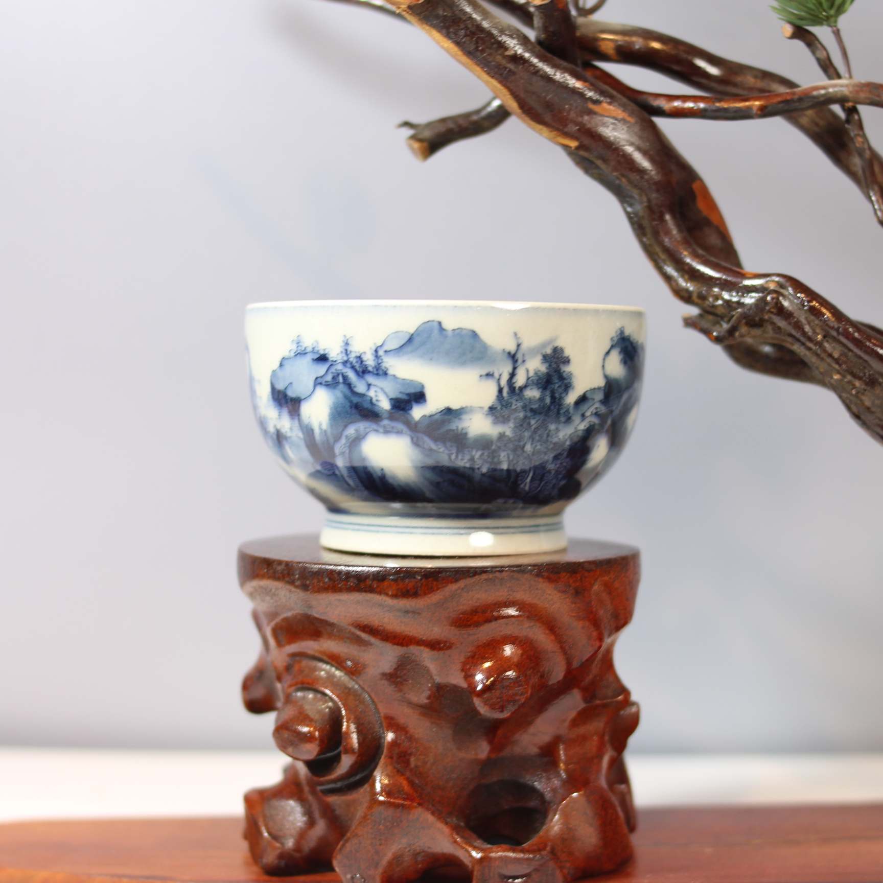首页 / 茶器 / 主人杯系列 / 青花柴窑杯(口:8.9cm 高:5.4cm 容量:150ml)