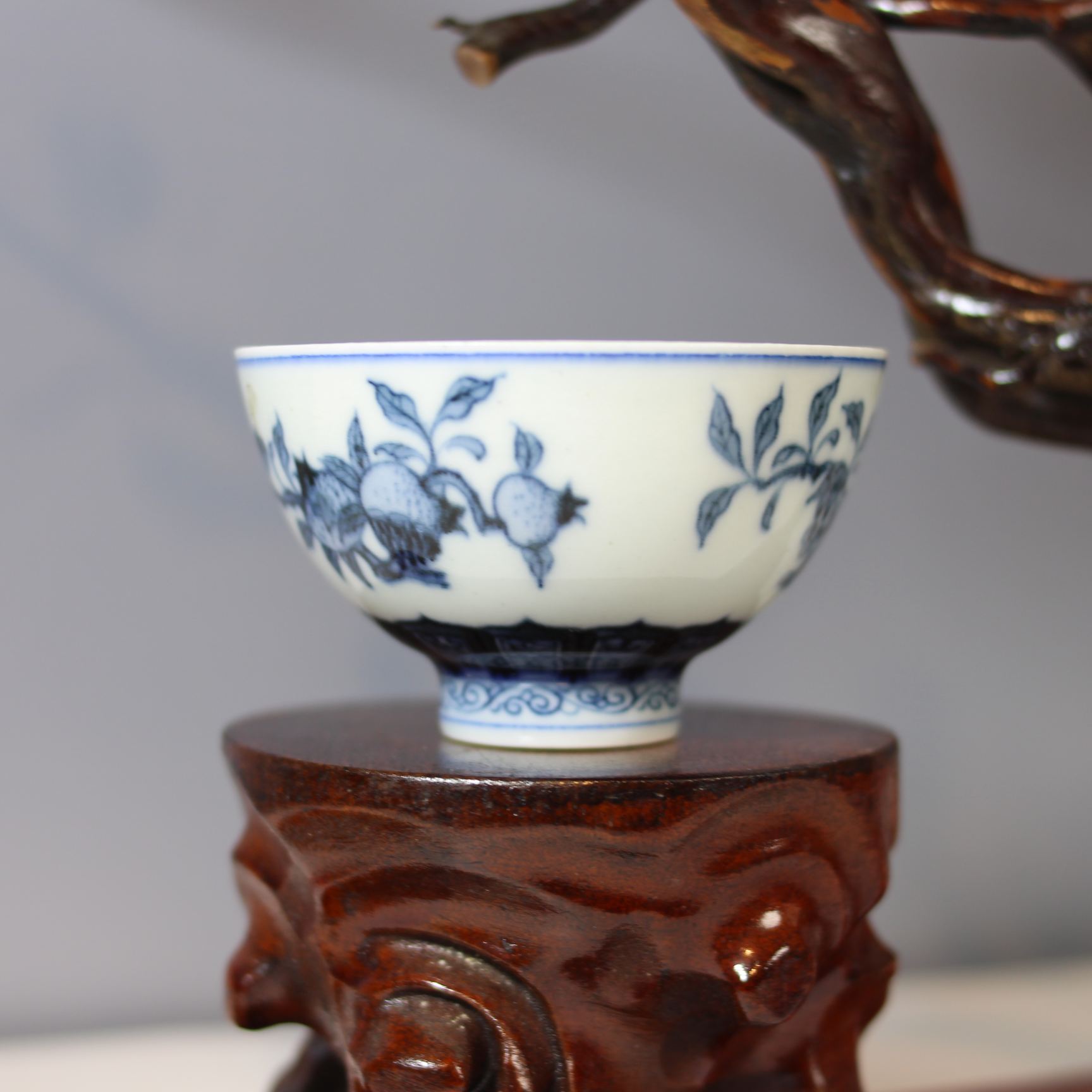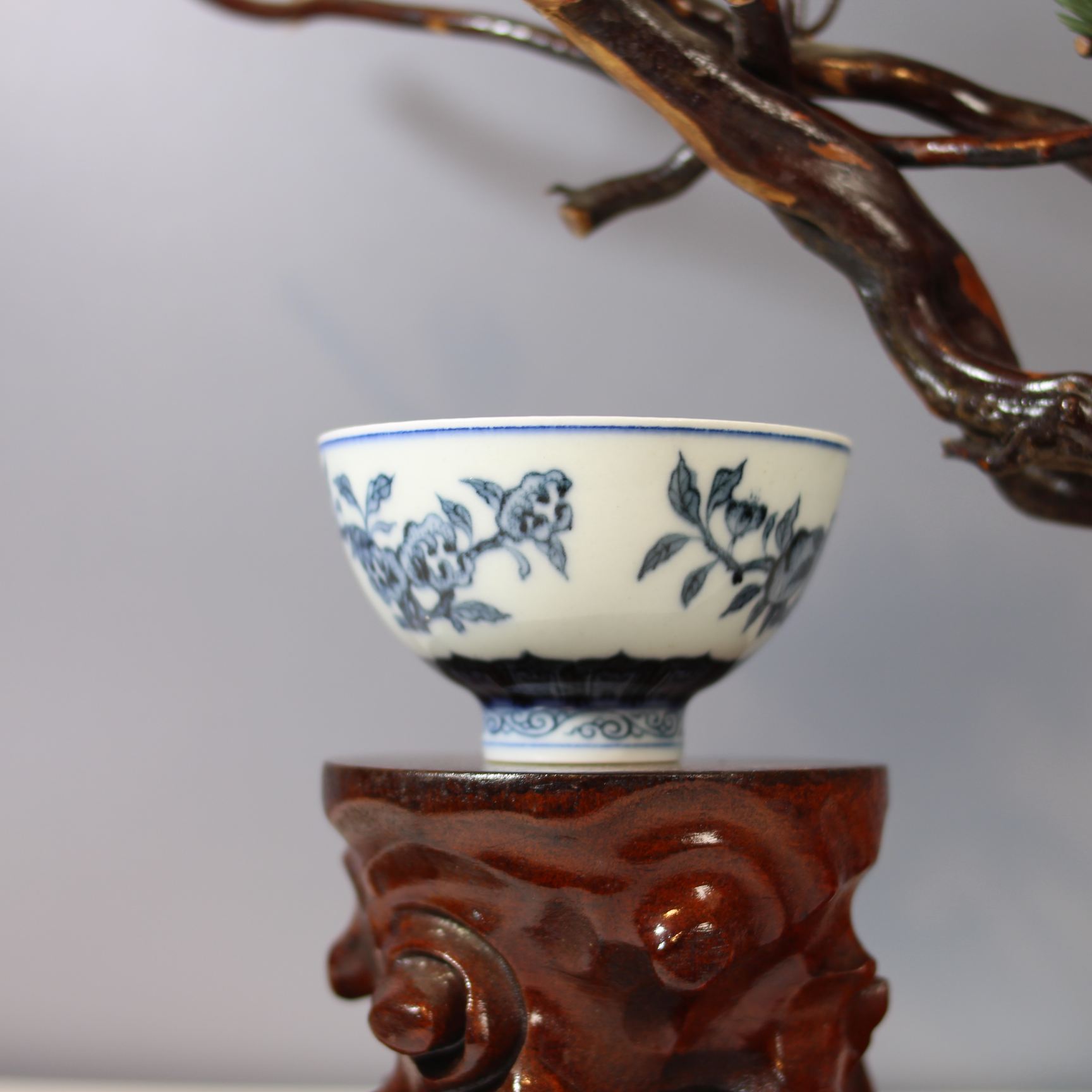 首页 / 茶器 / 主人杯系列 / 青花柴窑杯(口:8.5cm 高:5.3cm 容量:125ml)