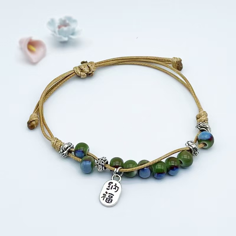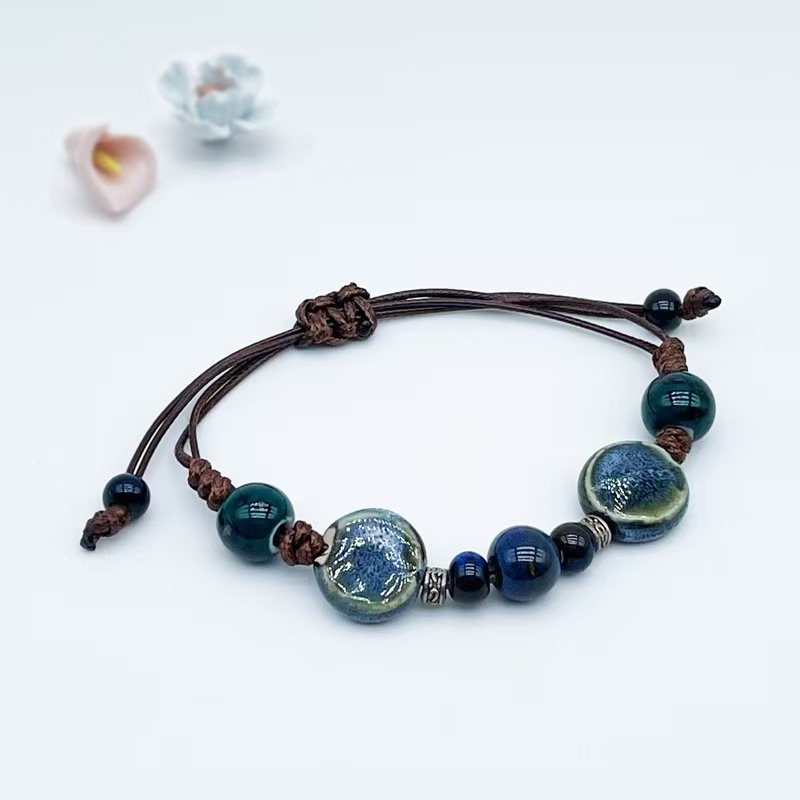 首页 / 文创集市 / 陶瓷首饰 / 景德镇陶瓷手链出入平安手串文艺小清新男女节日祝福学生礼物手绳(十元5串)