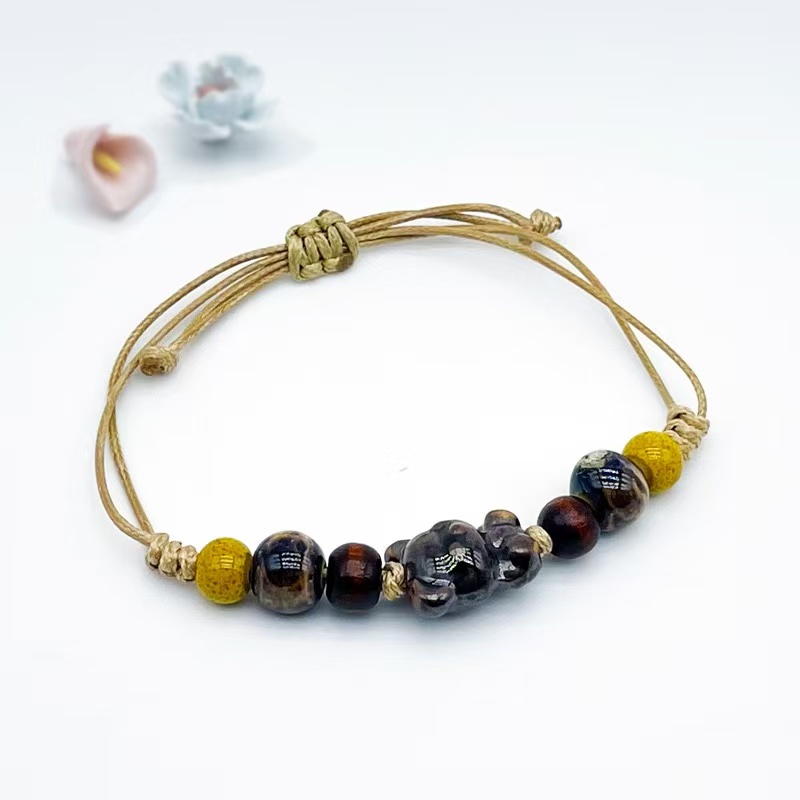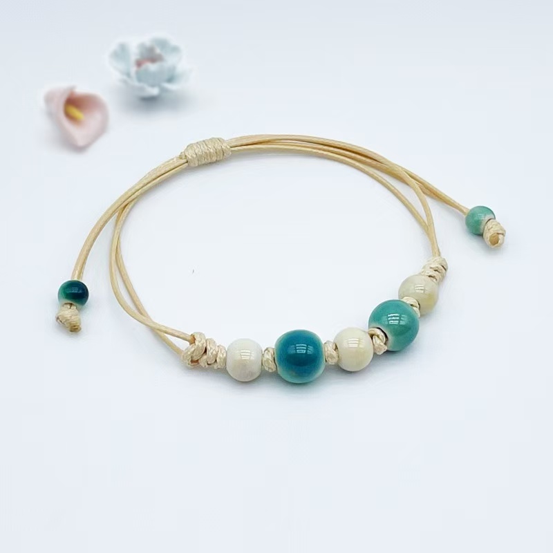 首页 / 文创集市 / 陶瓷首饰 / 景德镇陶瓷手链出入平安手串文艺小清新男女节日祝福学生礼物手绳(十元5串)
