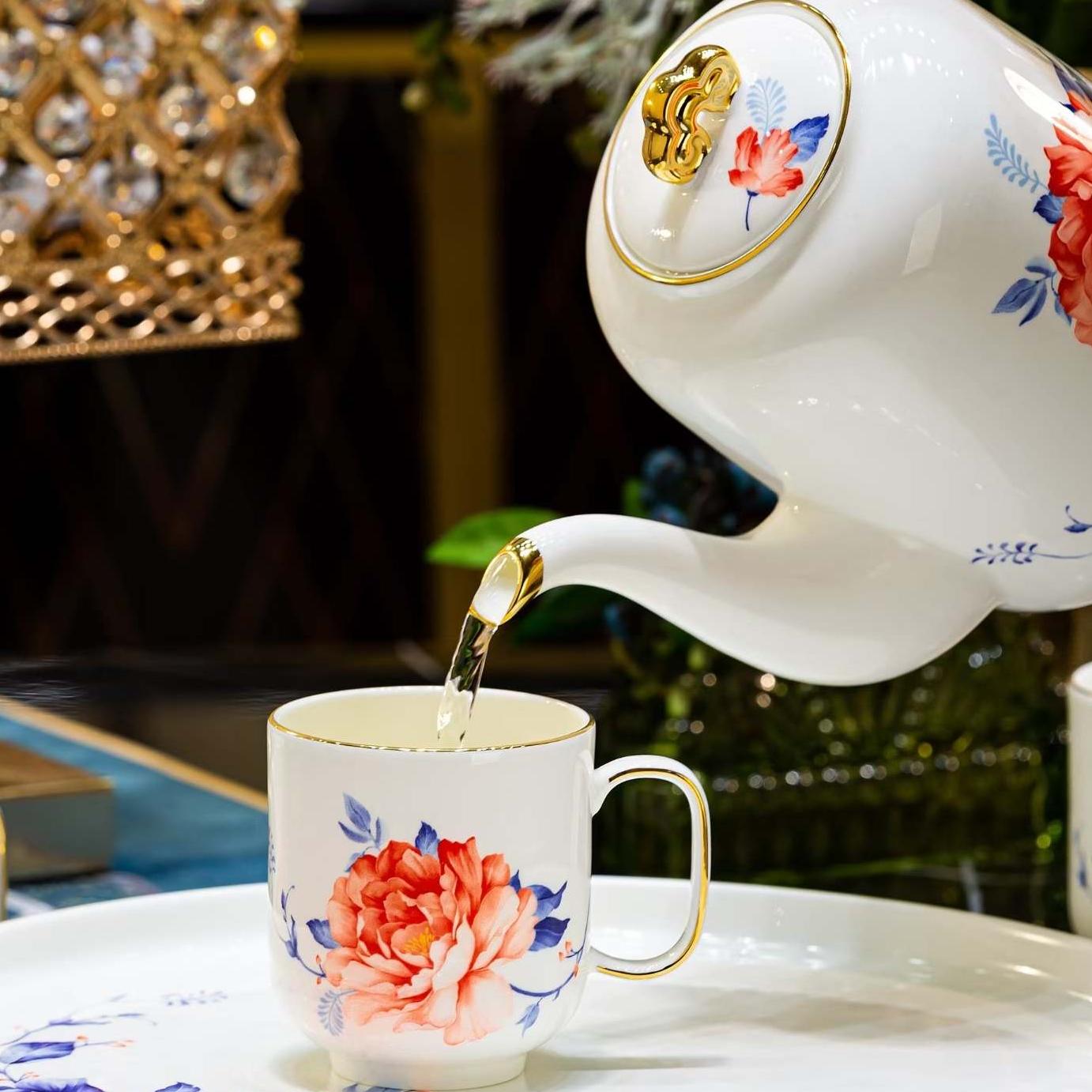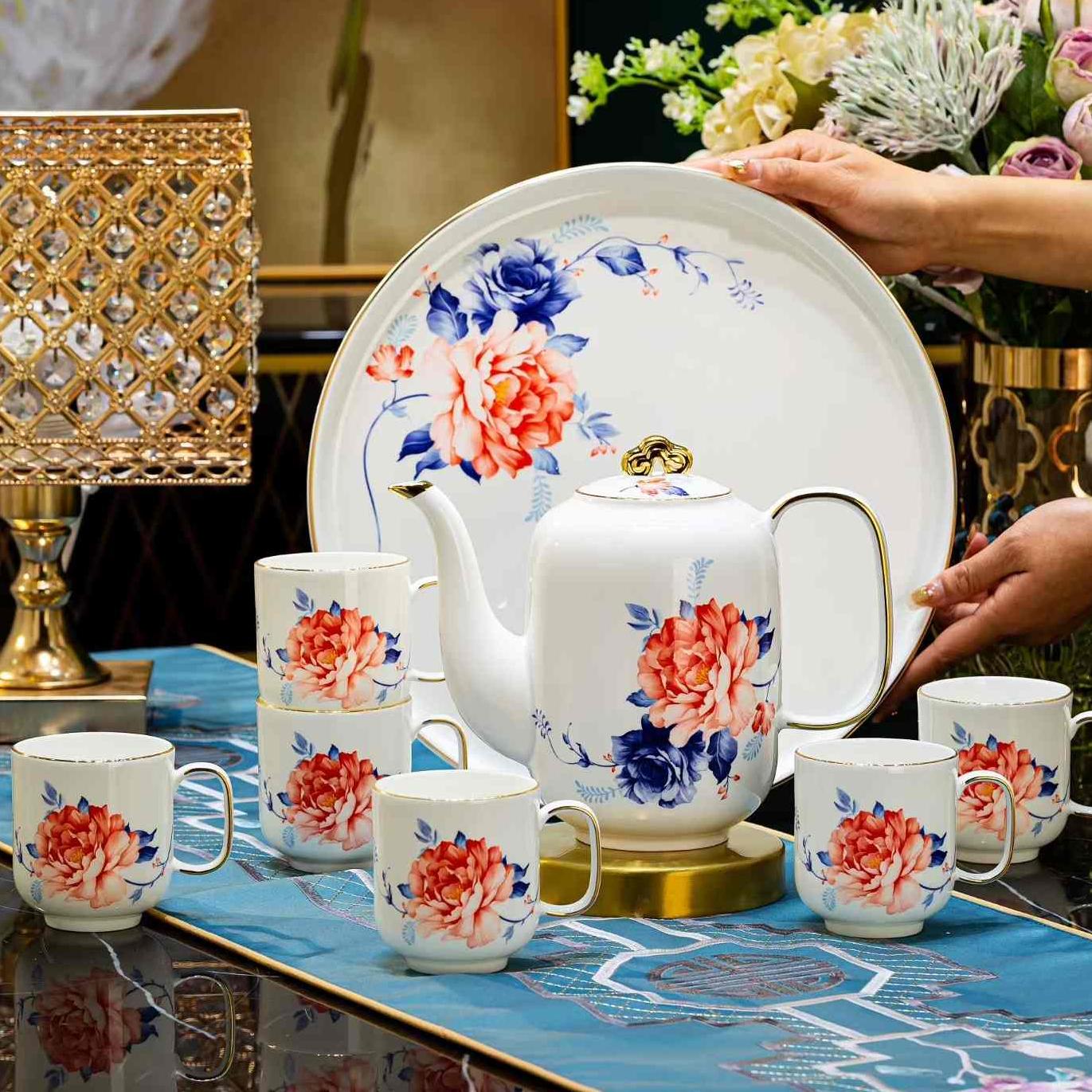 红蓝牡丹茶具套组