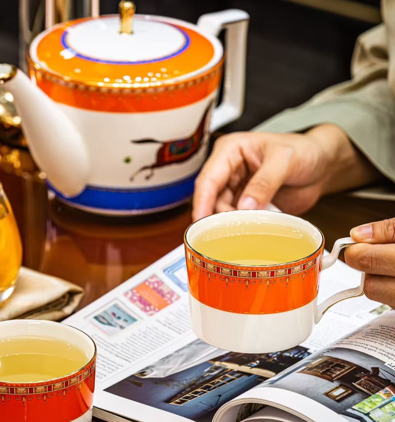 ​这套茶具展现了典型的爱马仕视觉美学,融合法式奢华与东方茶道元素。