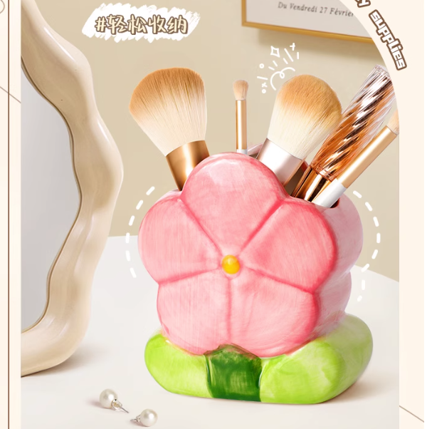 首页 / 办公用瓷 / 办公文具 / 花朵陶瓷笔筒