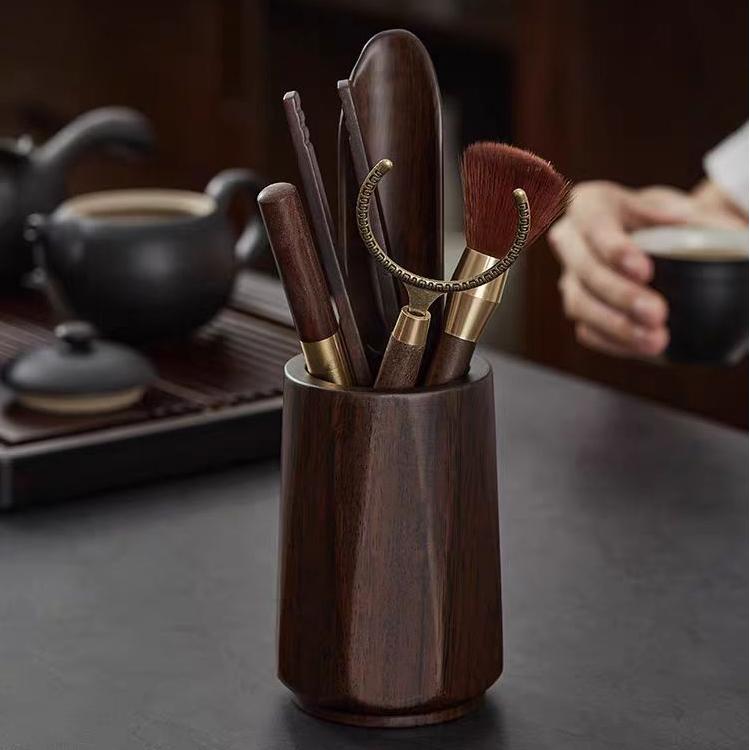 黑檀木菱筒:约直径7.3cm,高11.3cm