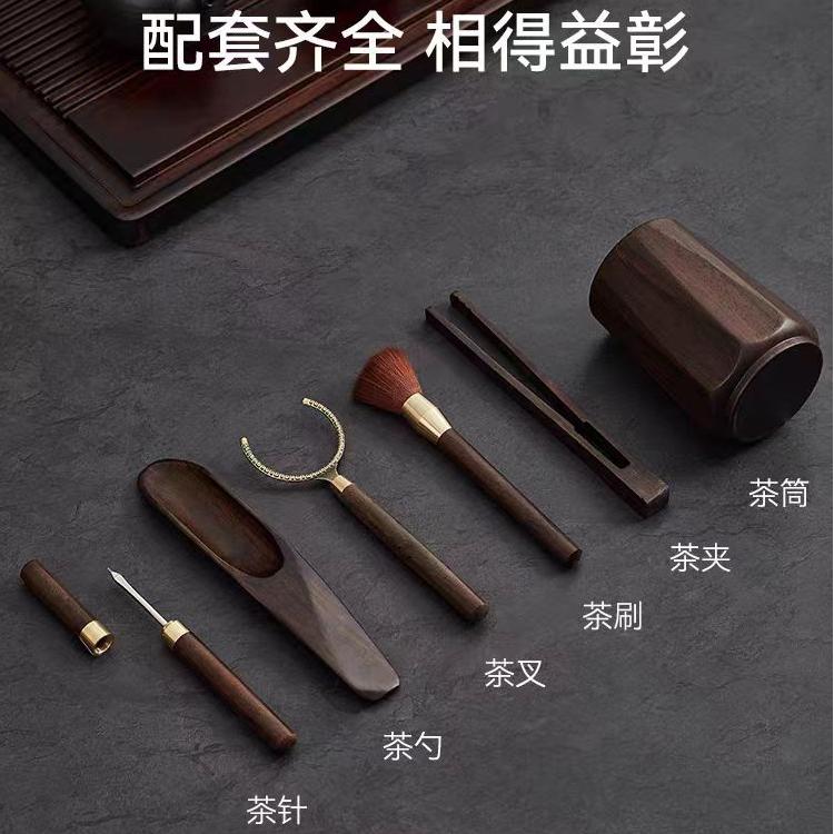 黑檀木茶道六君子套装茶具配件茶台用品大全茶桌功夫泡茶工具摆件