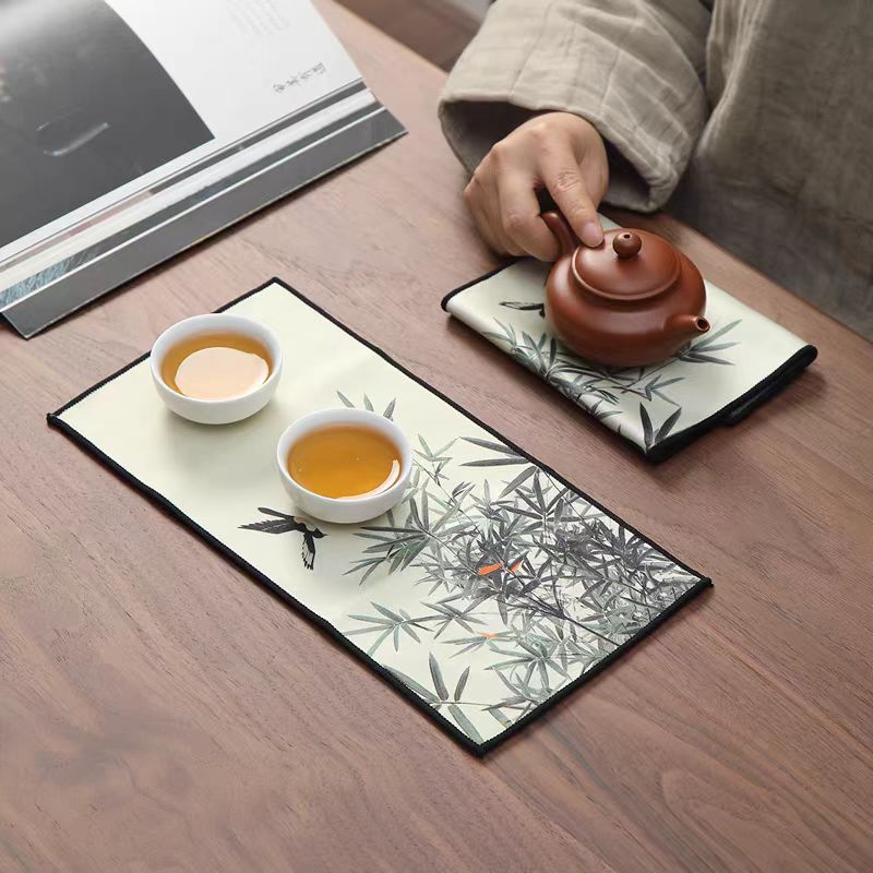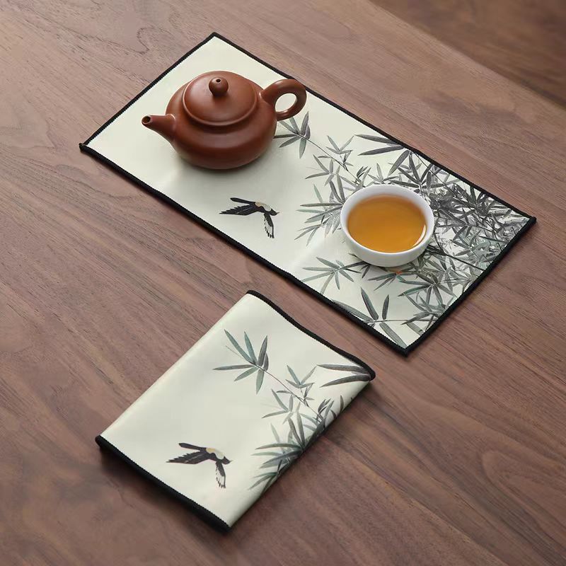 首页 / 茶器周边 / 茶洁用品 / 竹林翠鸟茶巾 厚实吸水性好 29*16cm