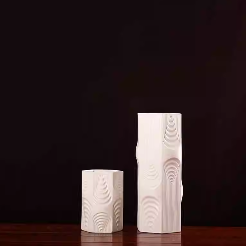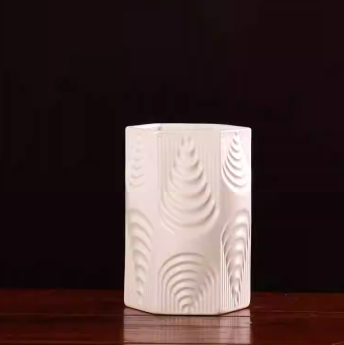 首页 / 艺术陈设瓷 / 陶瓷镶器 / 简约风六方树纹镶器花插摆件现代轻奢陶瓷花瓶(小号)