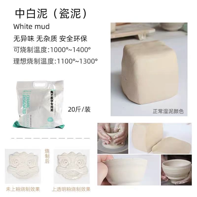 陶泥瓷泥景德镇高白泥特白泥粘土陶艺教学捏泥塑专用泥巴(中白泥)