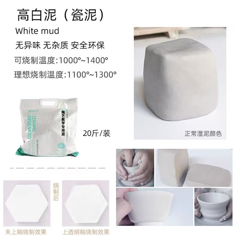 陶泥瓷泥景德镇高白泥特白泥粘土陶艺教学捏泥塑专用泥巴(高白泥)