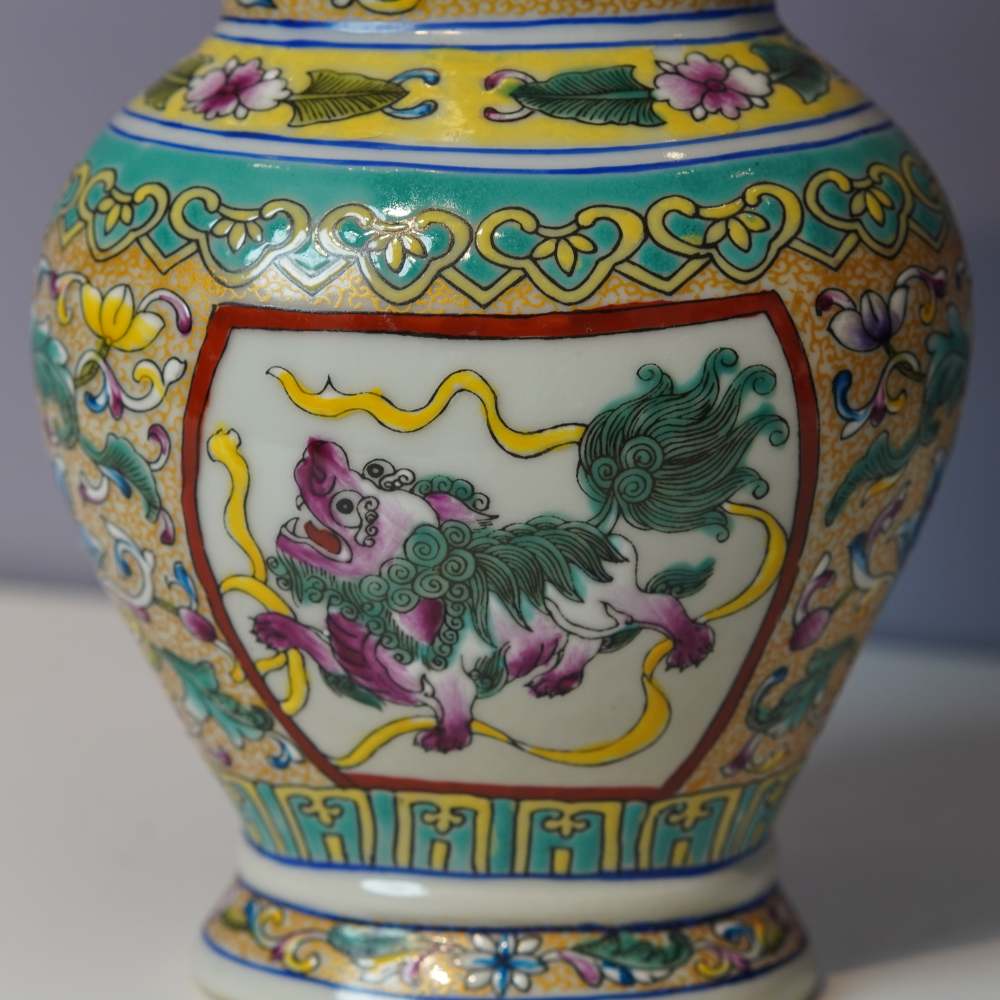 首页 / 仿古瓷 / 仿古瓷 / 珐琅彩瑞狮献果花口尊