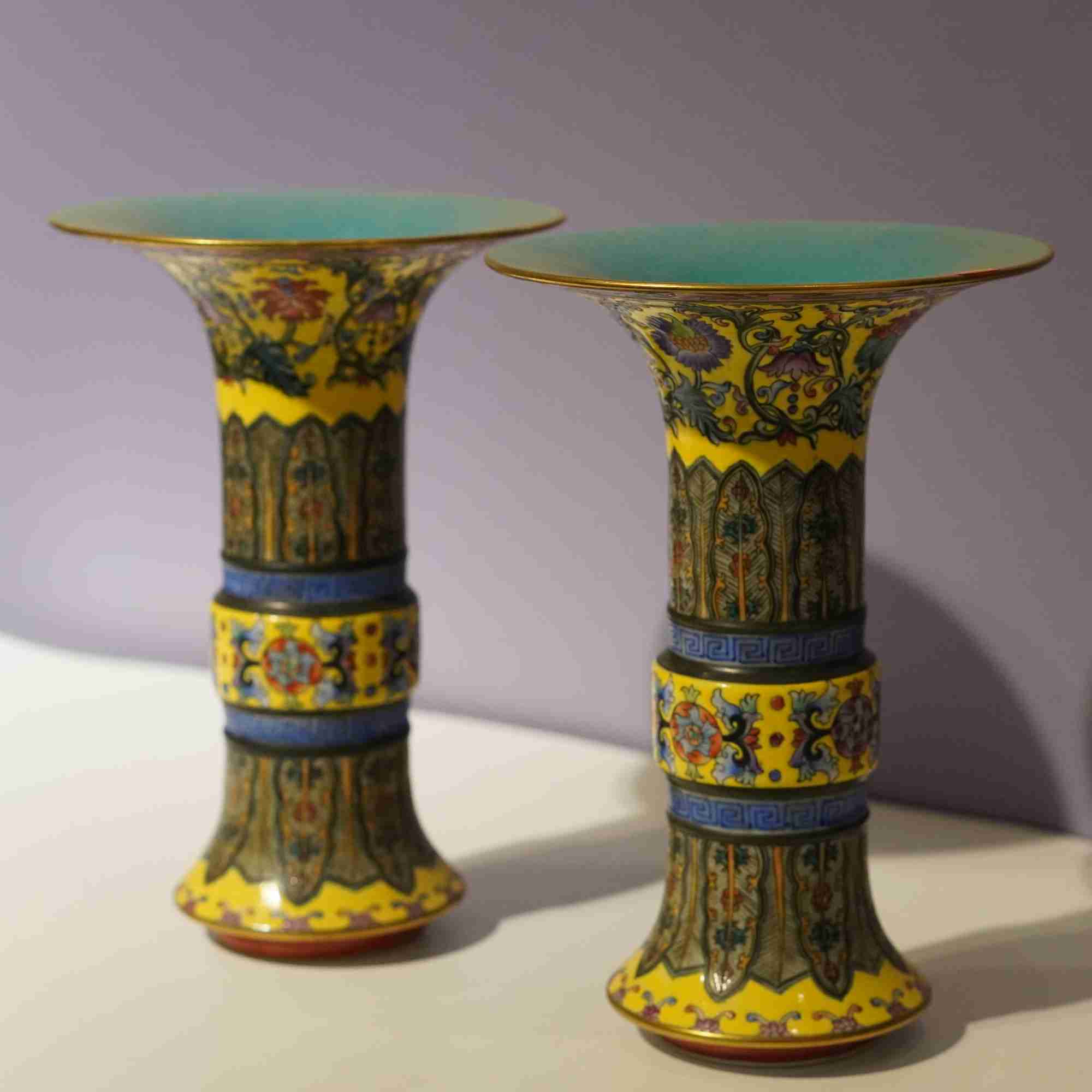 黄地珐琅彩缠枝瑞花纹花觚(一对)
