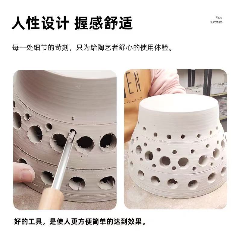 首页 / 陶艺工具 / 陶艺工具 / 半圆打孔器陶艺工具坯体打孔器 捏雕泥塑陶艺造型工具四件套