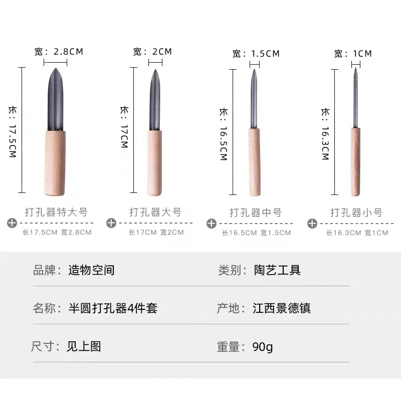 造物空间半圆打孔器陶艺工具坯体打孔器 捏雕泥塑陶艺造型工具四件套