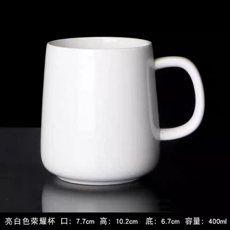 酒店用品 马克杯酒店宾馆陶瓷简约水杯 亮白色荣耀杯