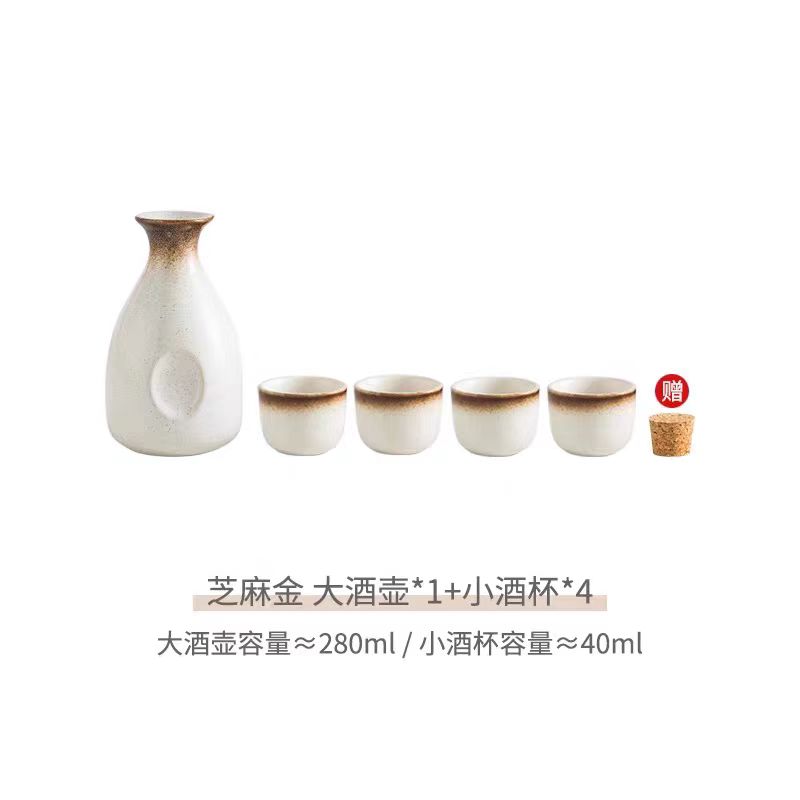 首页 / 餐具 / 酒具 / 酒具套装高端清酒杯陶瓷冬季家用烈酒杯子小酒盅分酒器烧酒温酒器(大号芝麻金酒壶五件套)